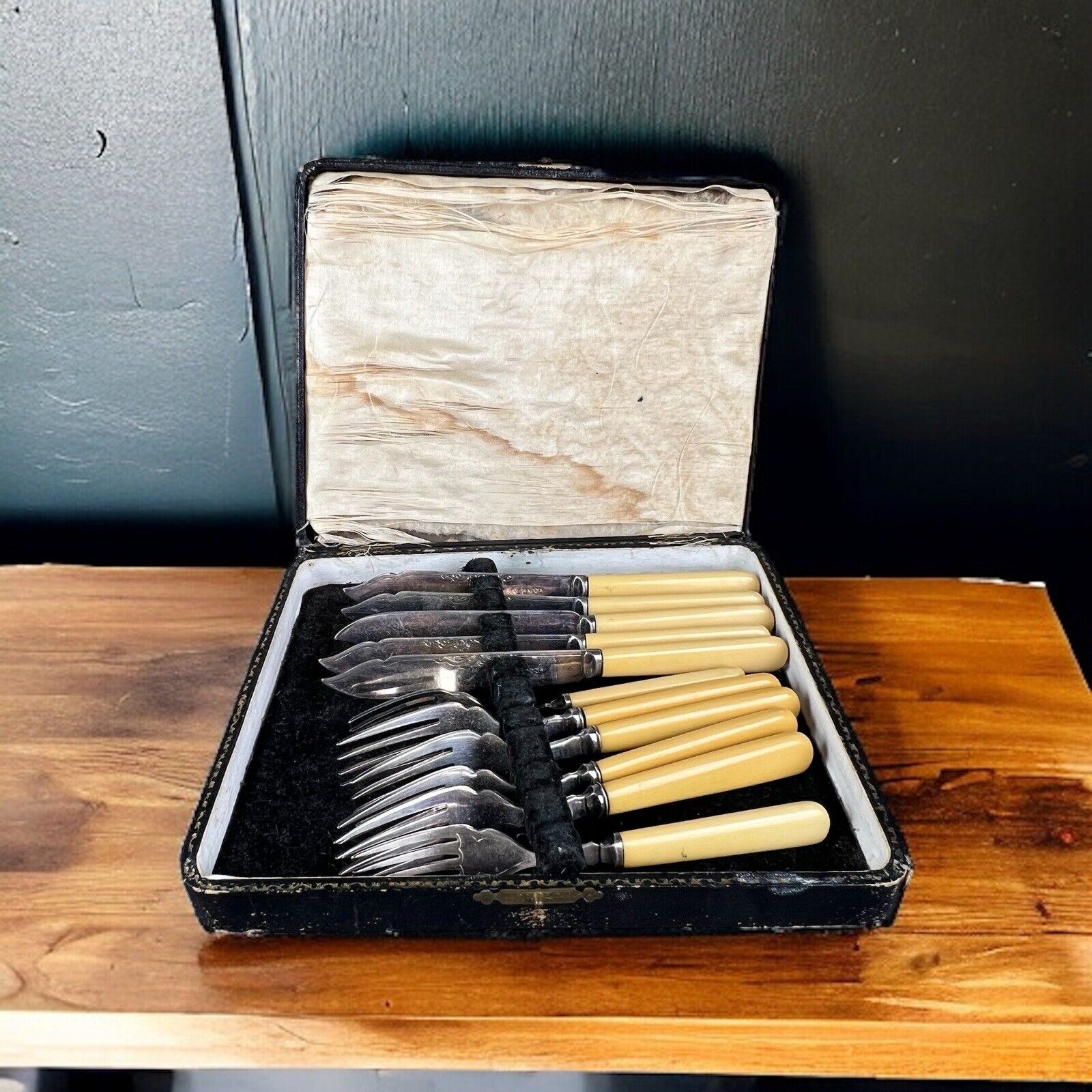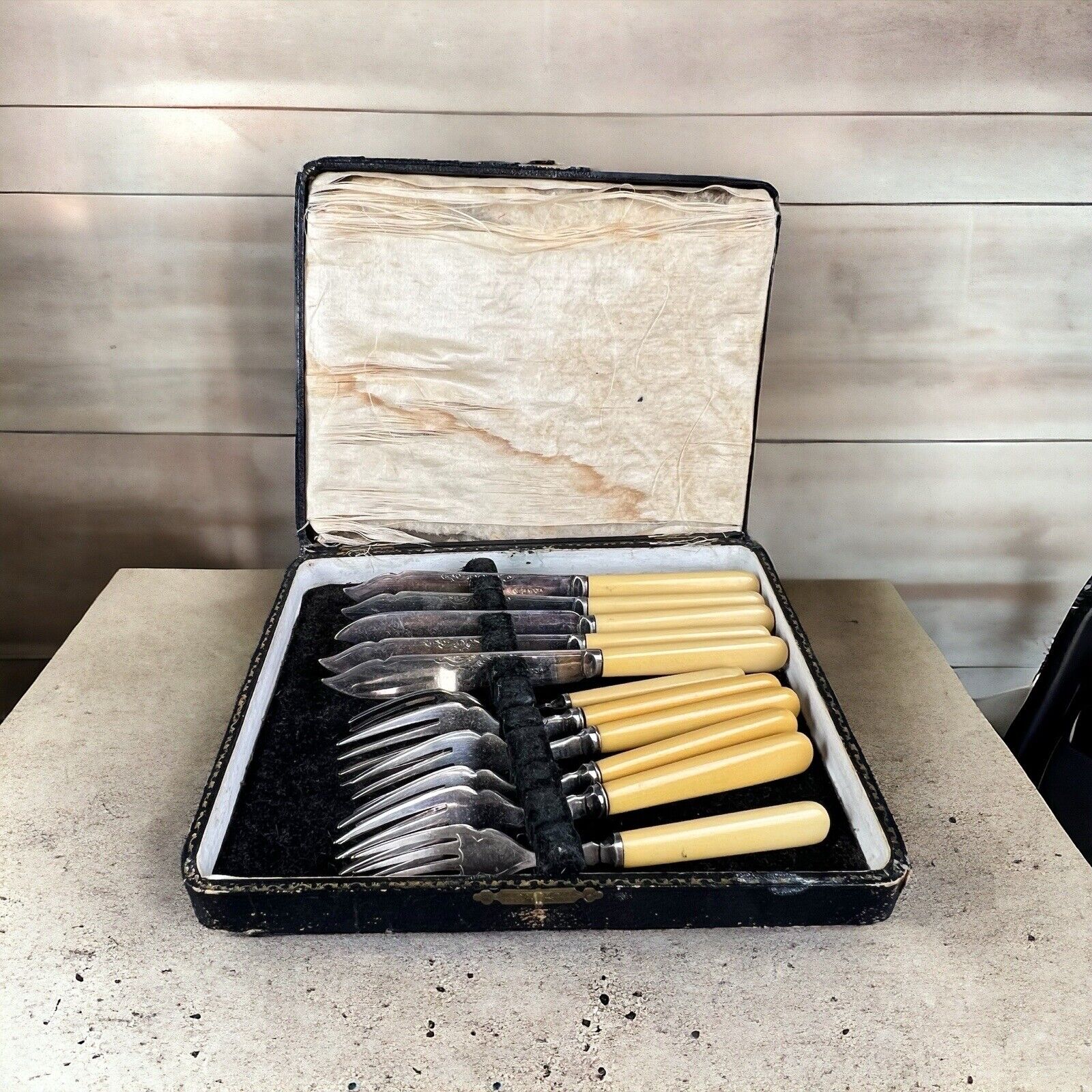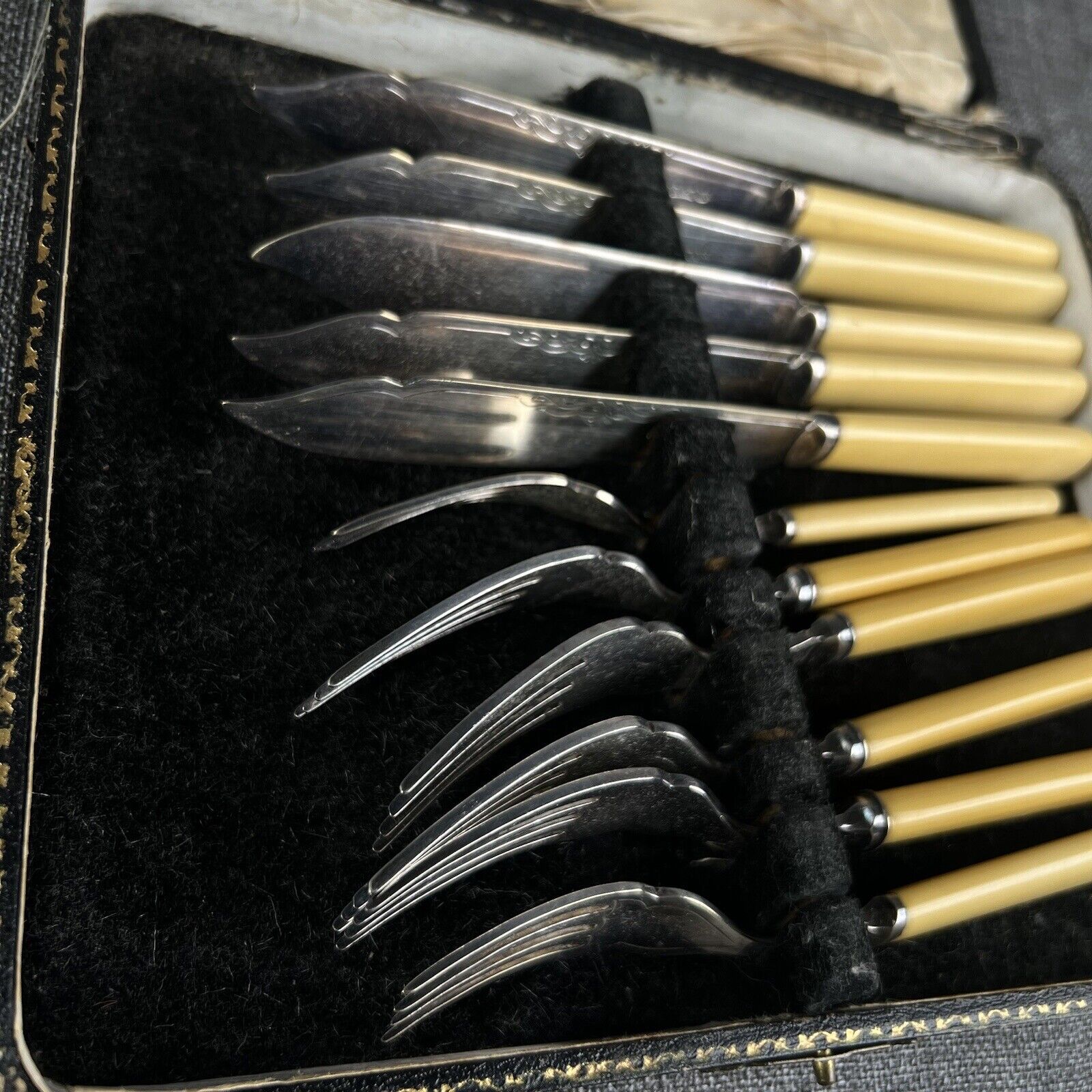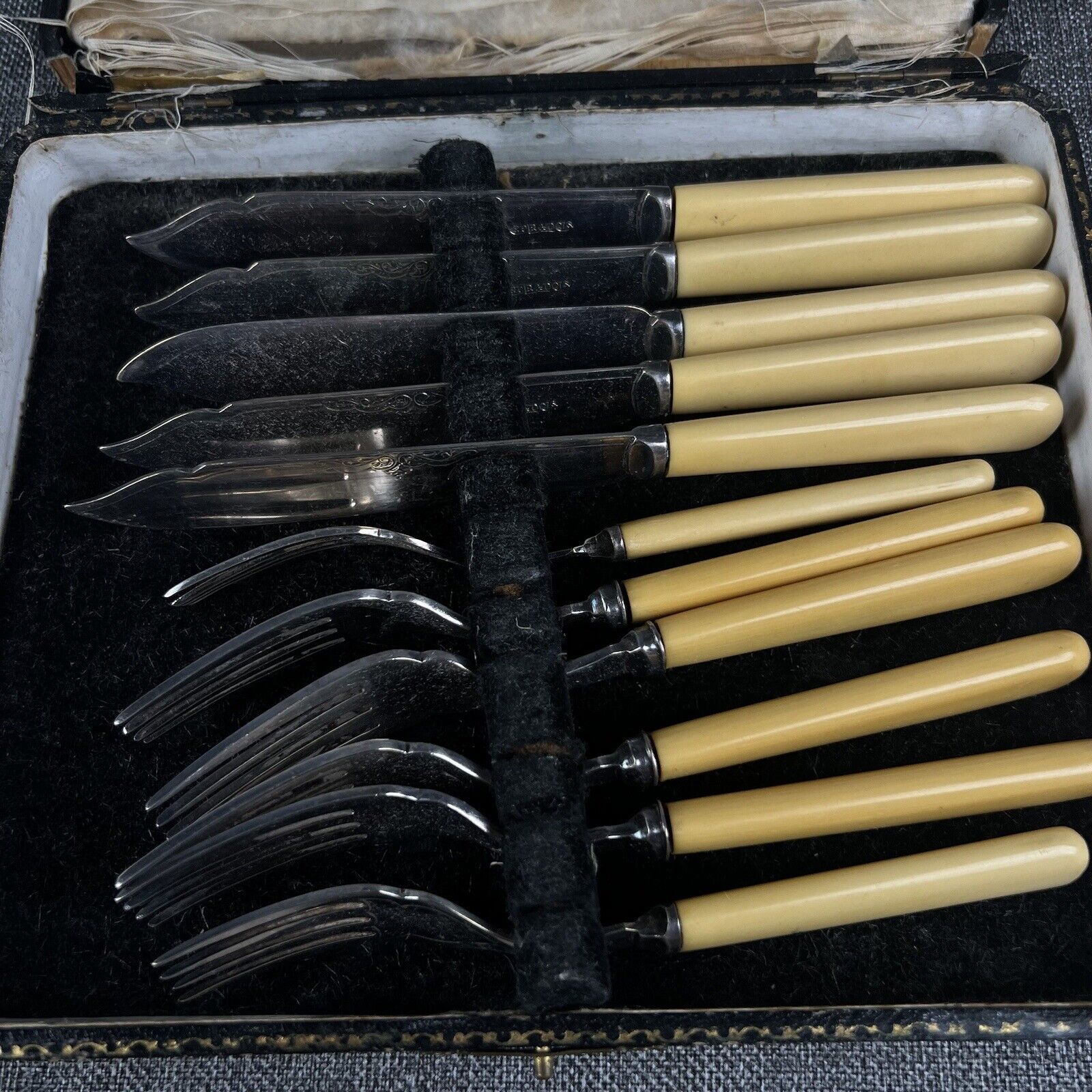 Vintage EP R&D NS Cream Bakelite Handles 5 Knives and M&W 6 knives