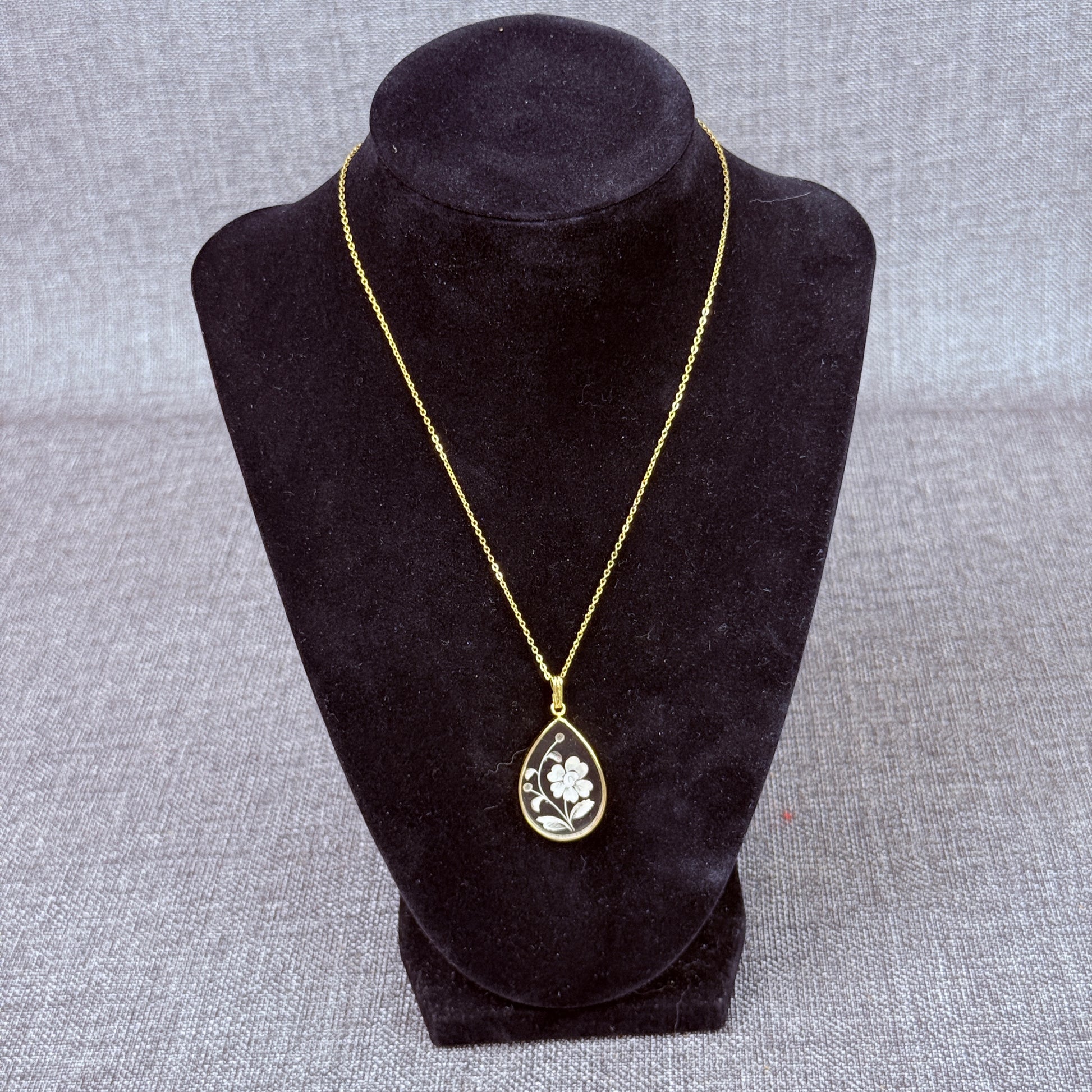 Elegance with this 16" vintage necklace featuring a beautifully etched flower encased in glass.