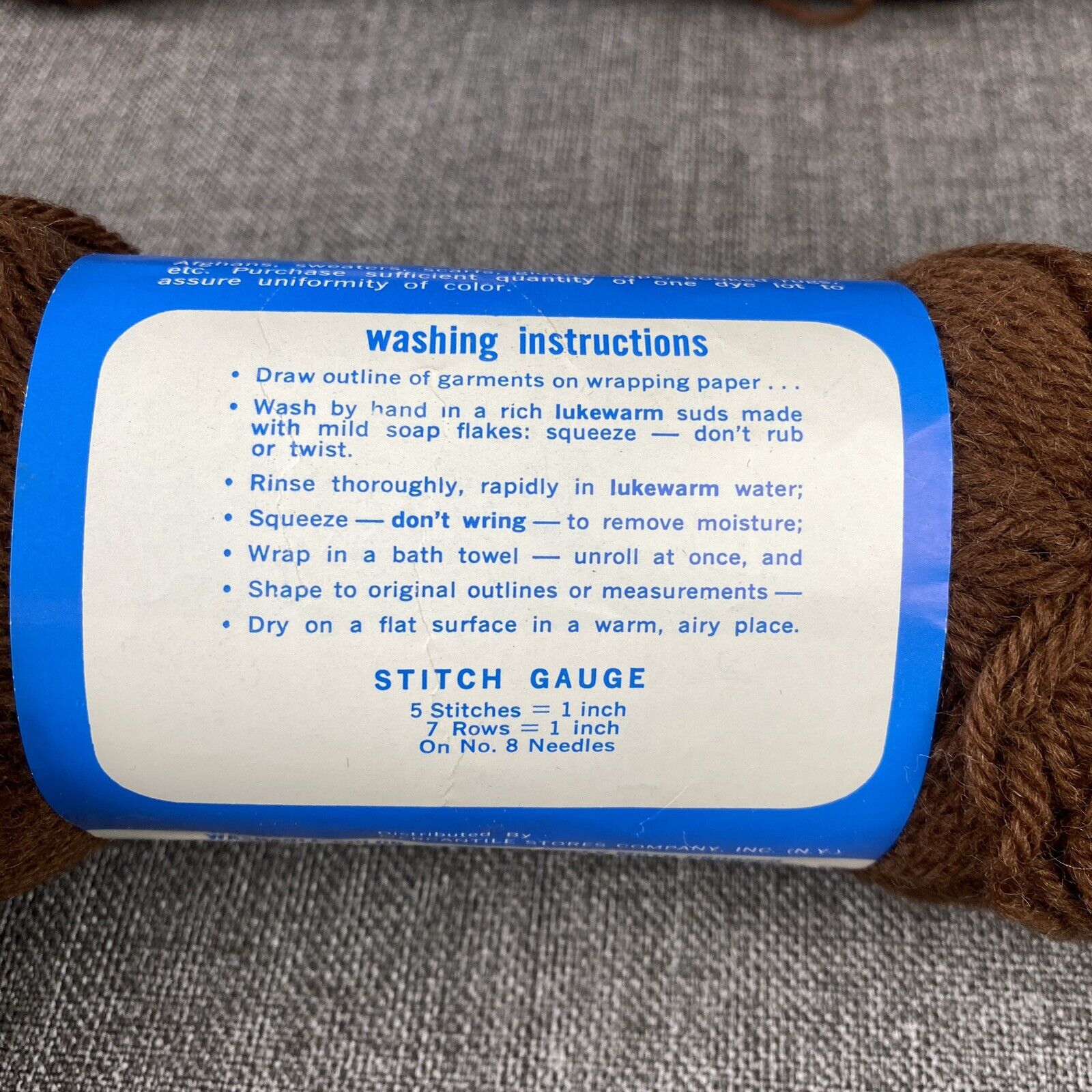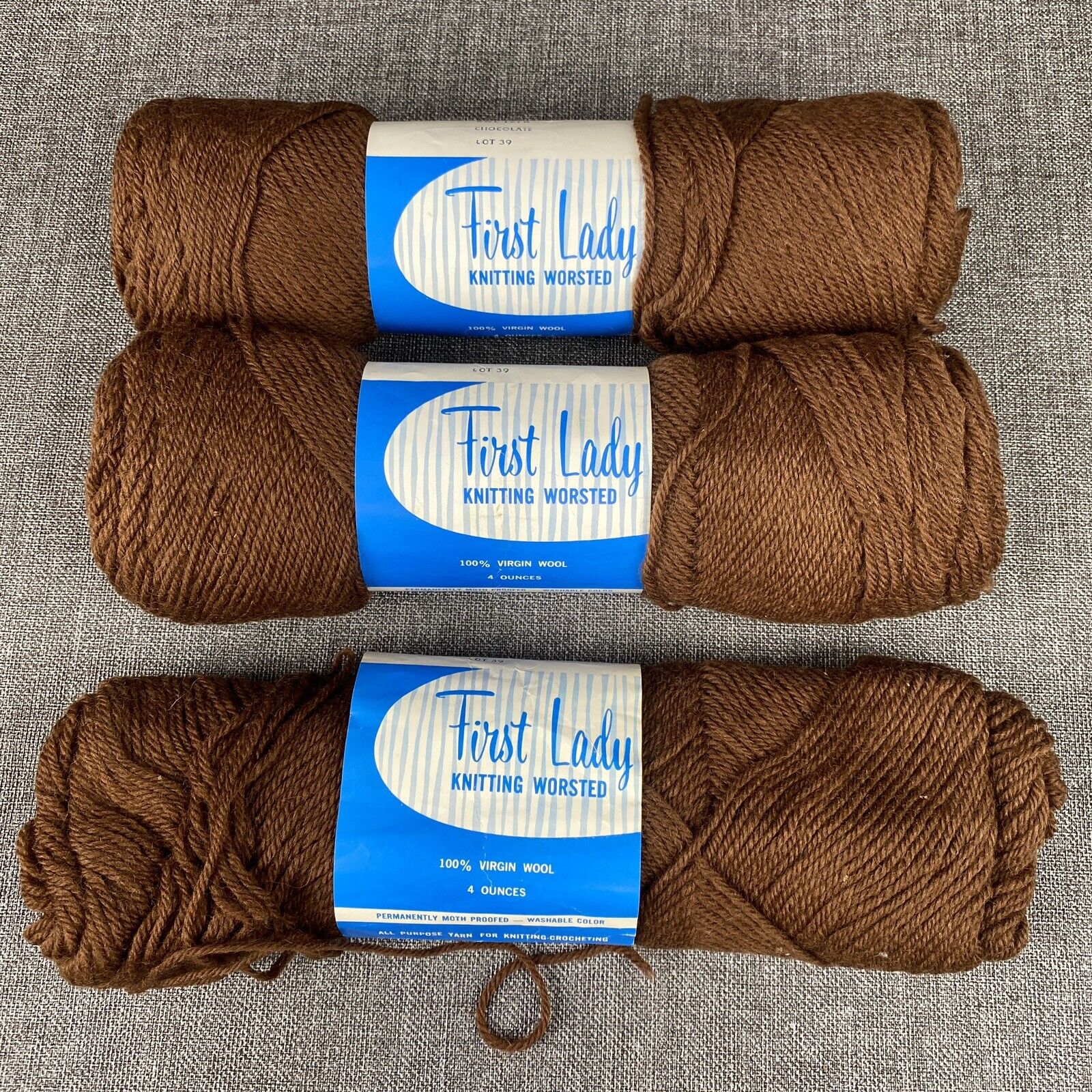 Vintage First Lady Knitting Worsted Chocolate 3 Skeins 100% Virgin Wool