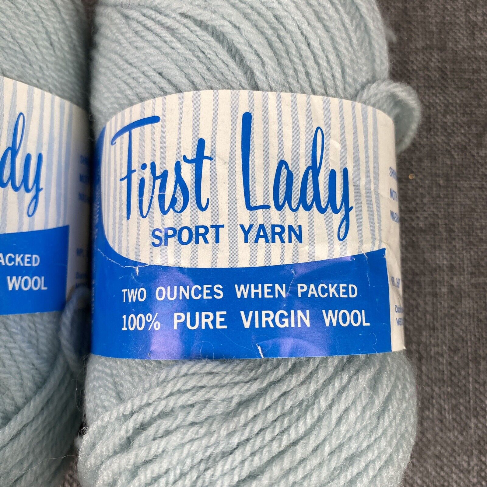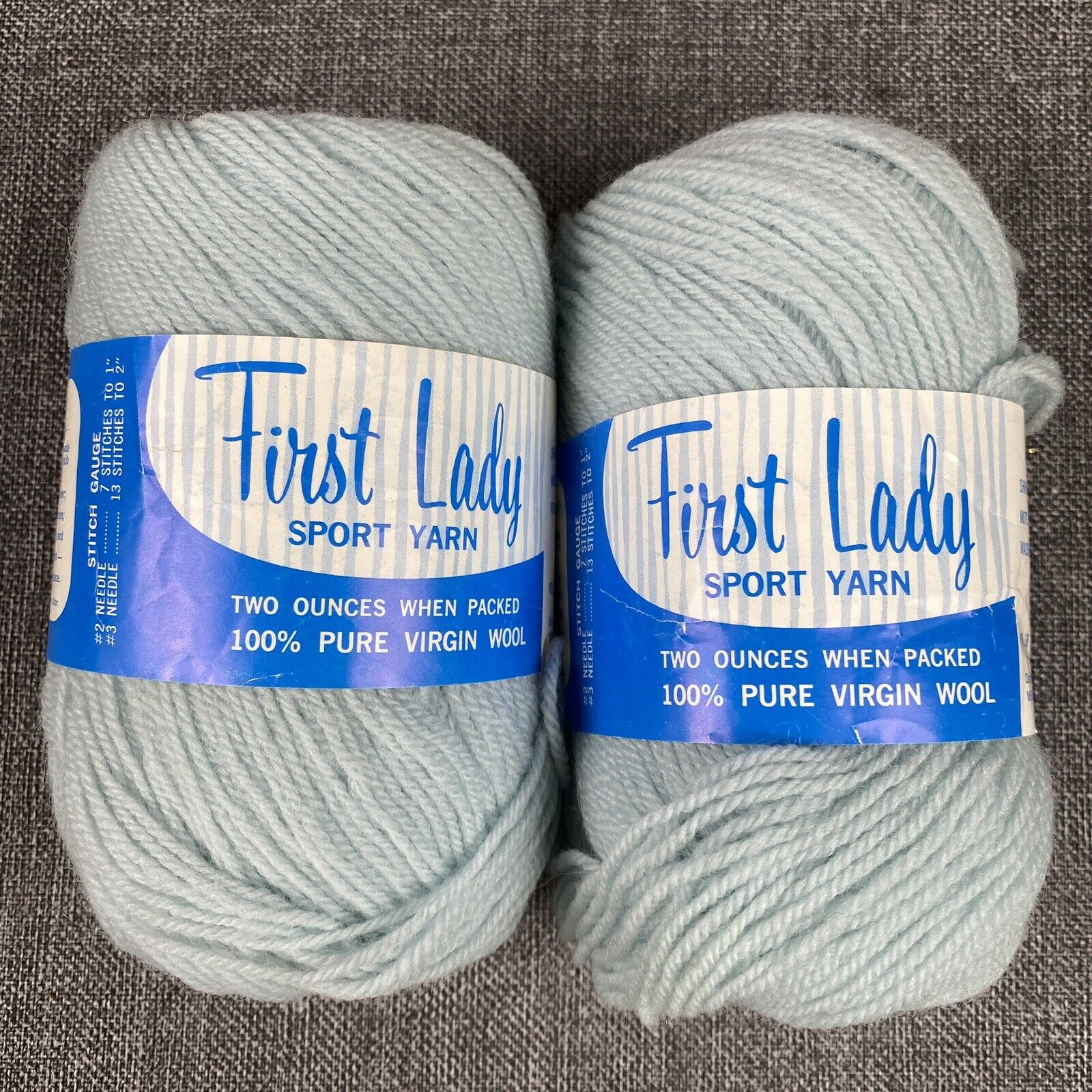 Vintage First Lady Sport Virgin Wool Yarn Set 2 skeins #6343 Baby Blue