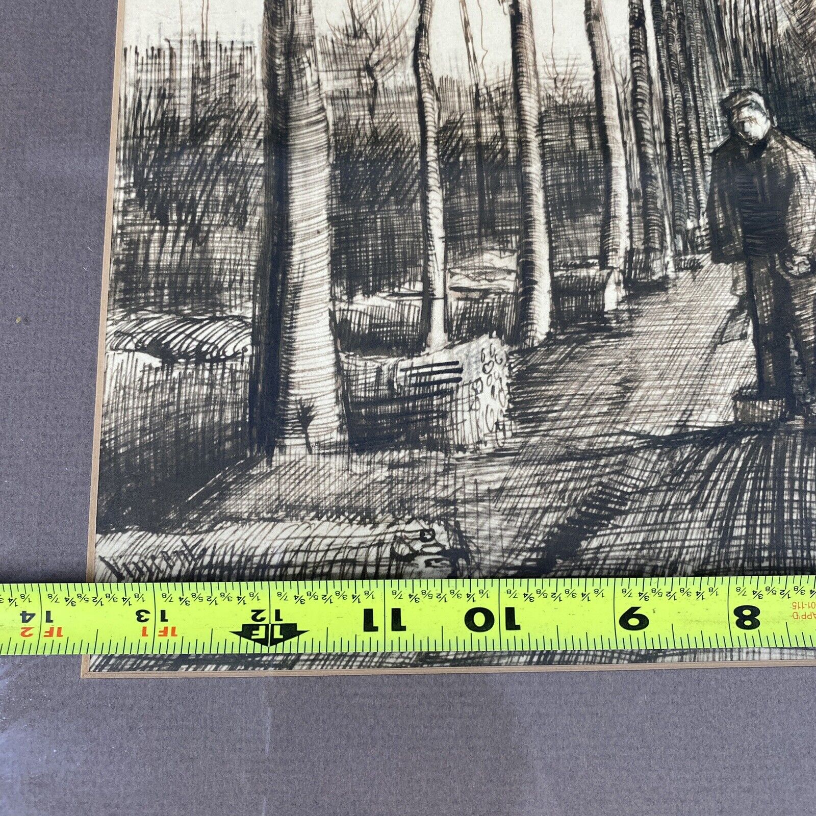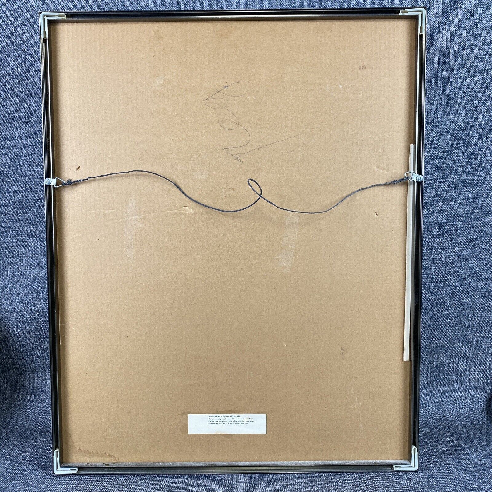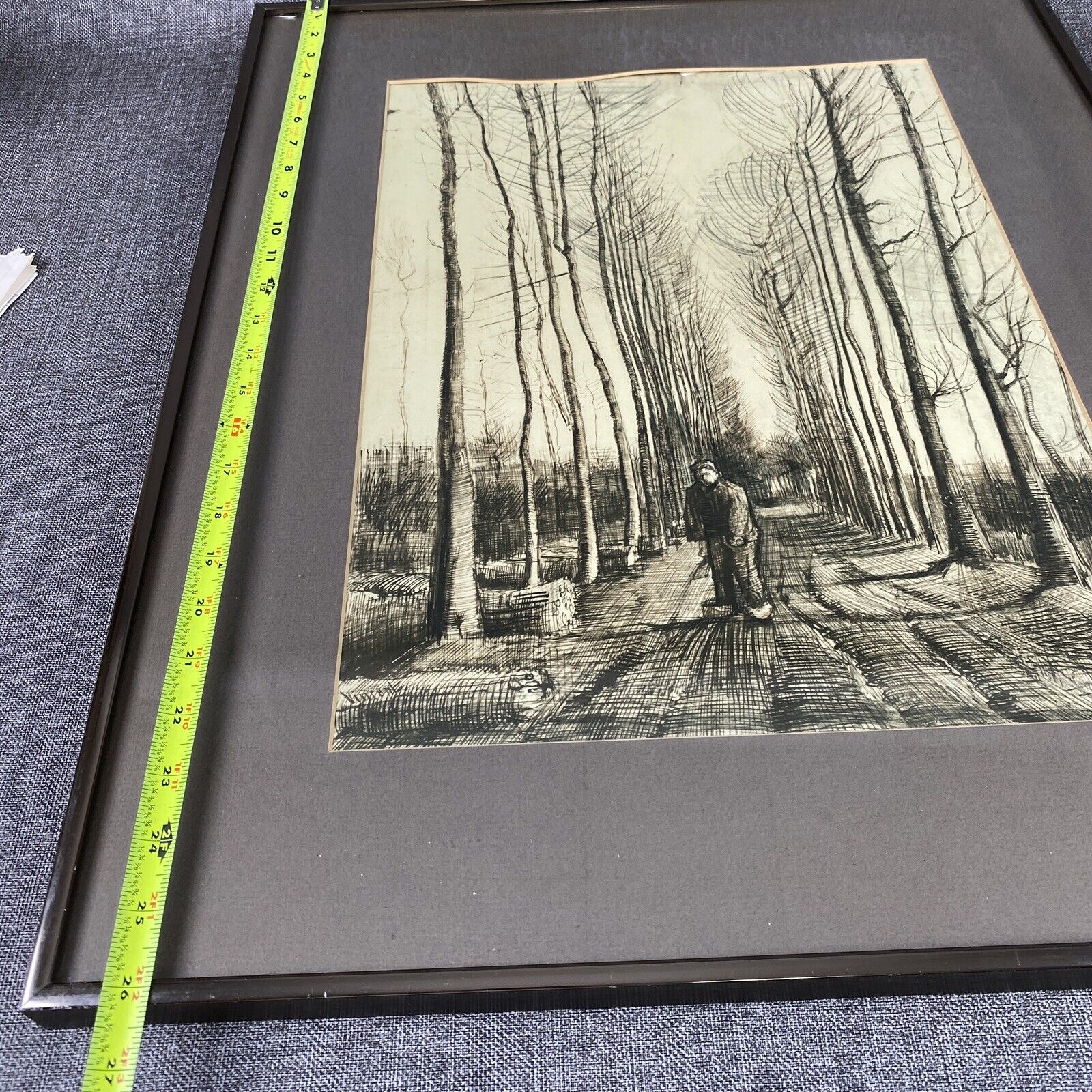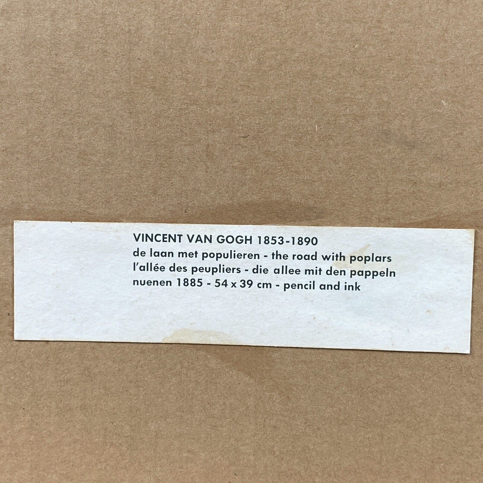 Vintage Framed Lithograph of Van Gogh The Road with Poplars Pencil Studies