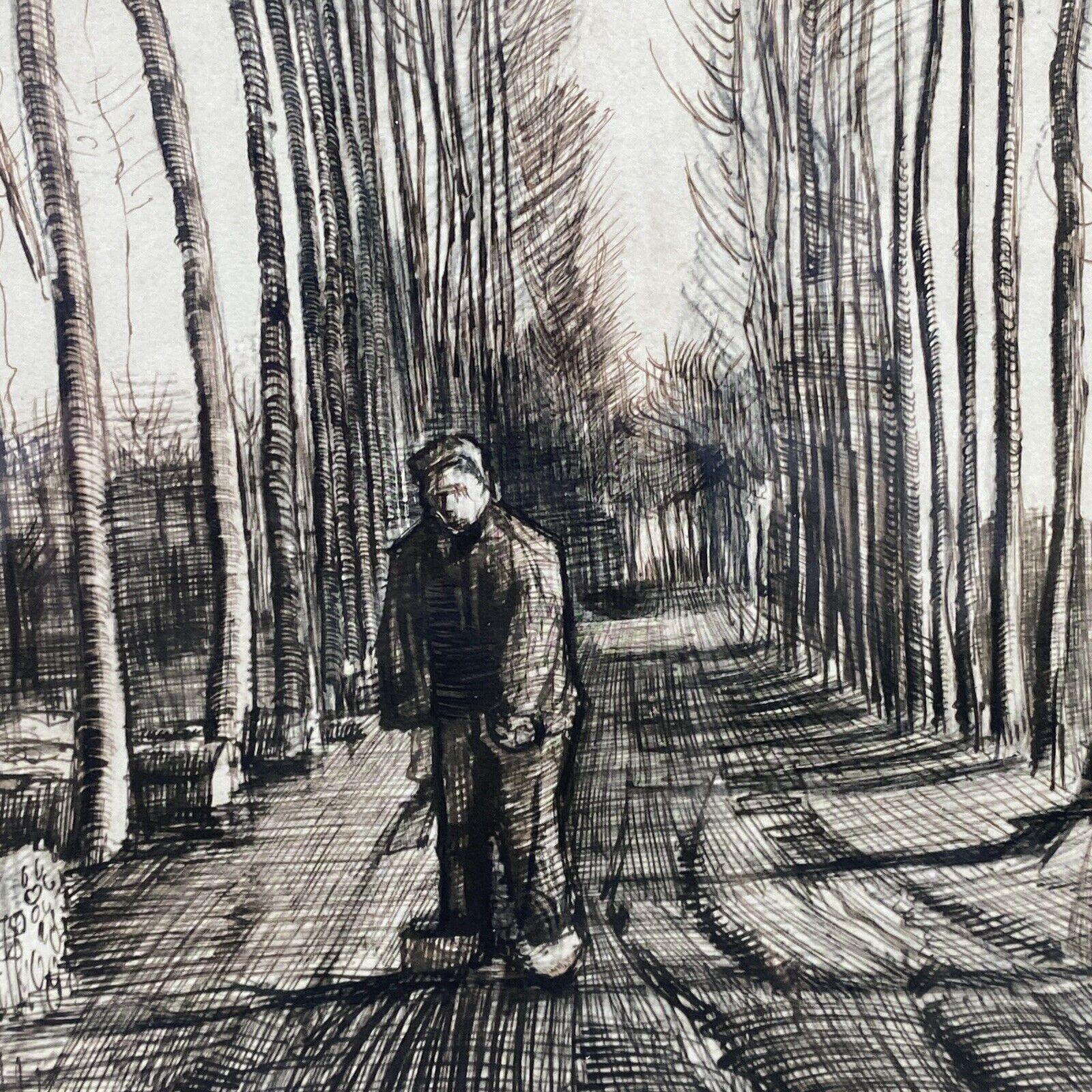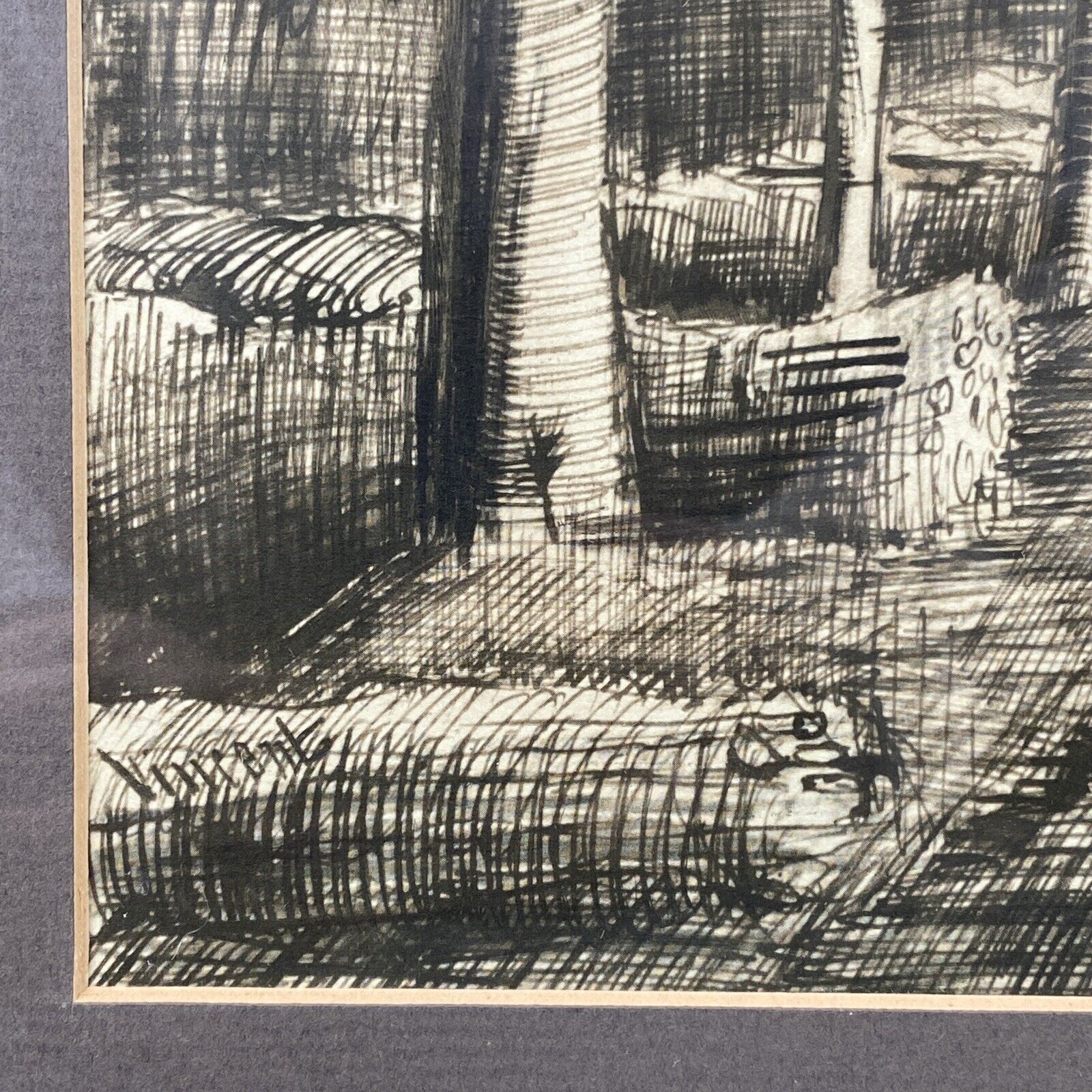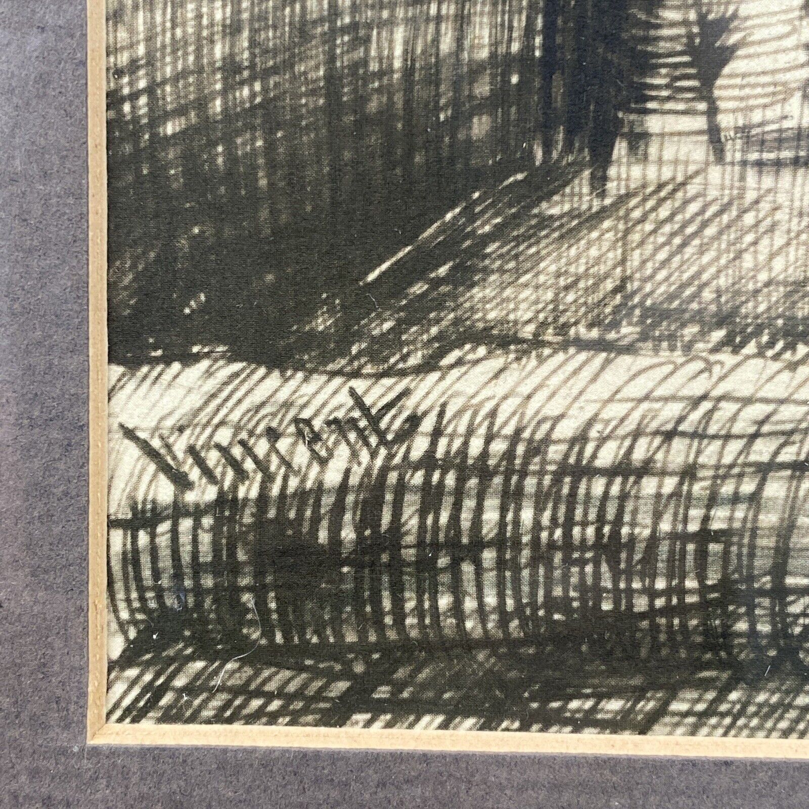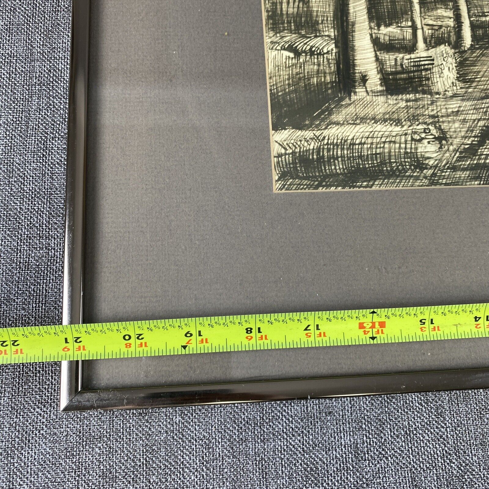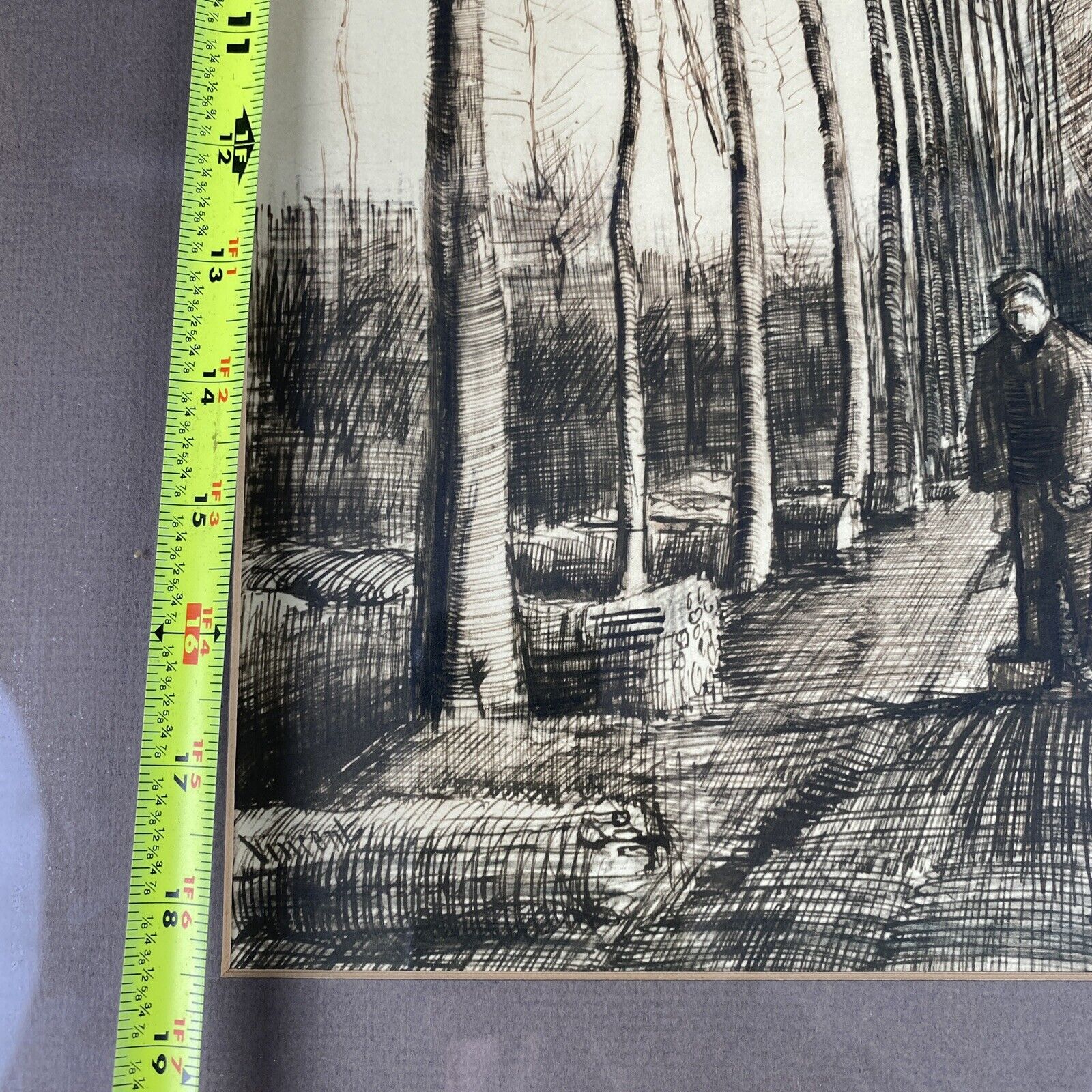 Vintage Framed Lithograph of Van Gogh The Road with Poplars Pencil Studies