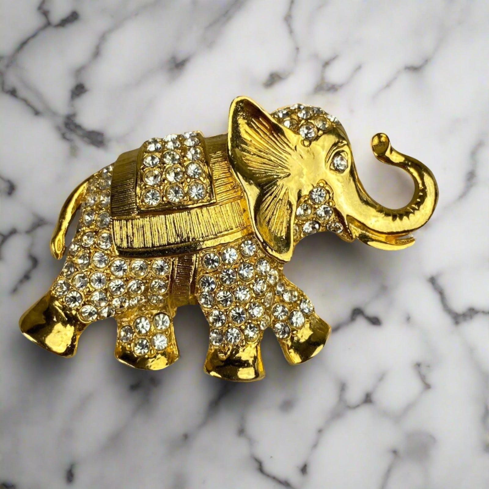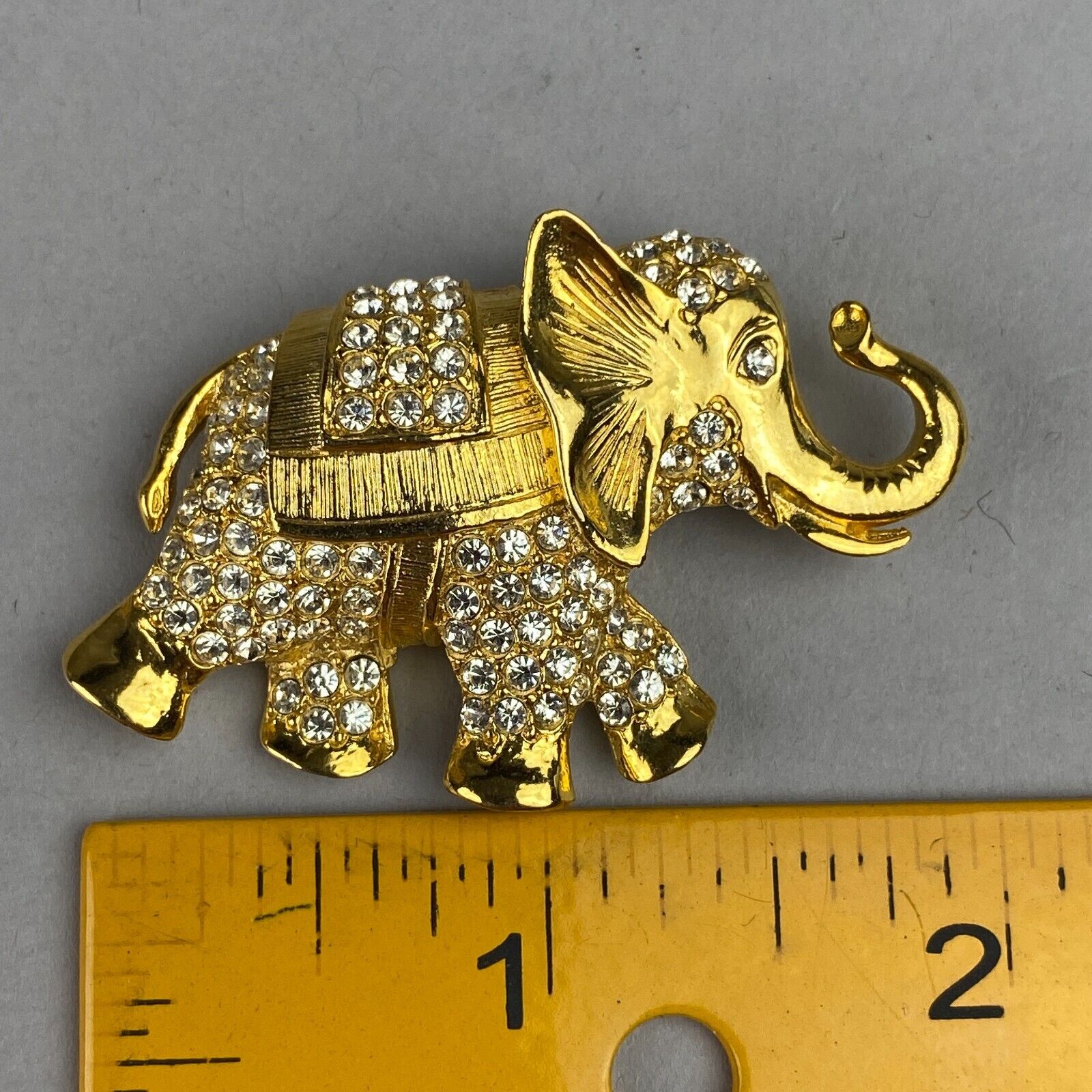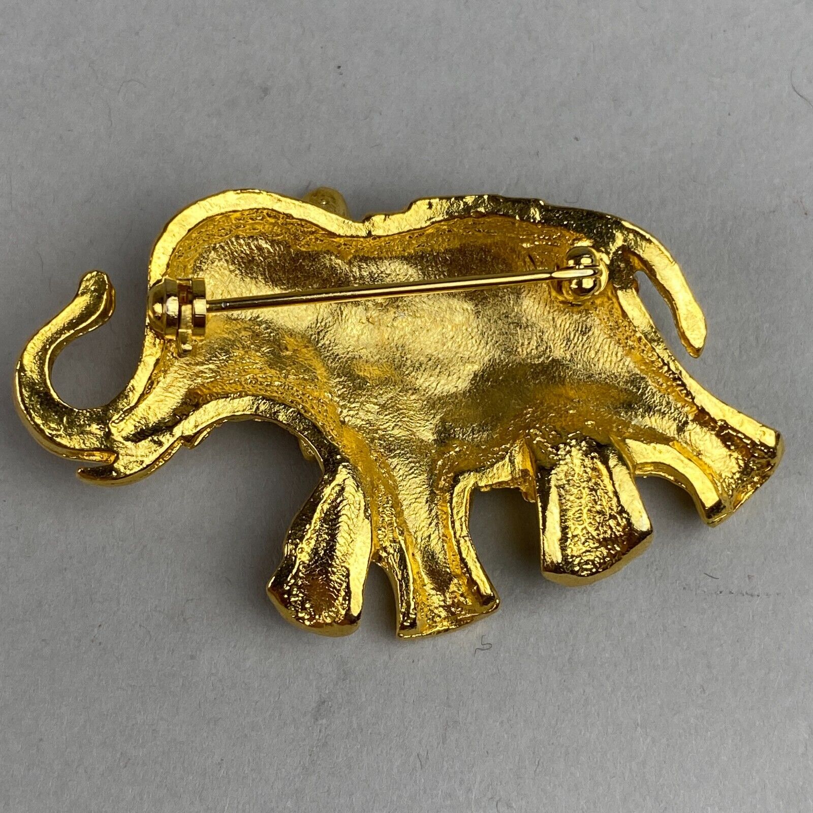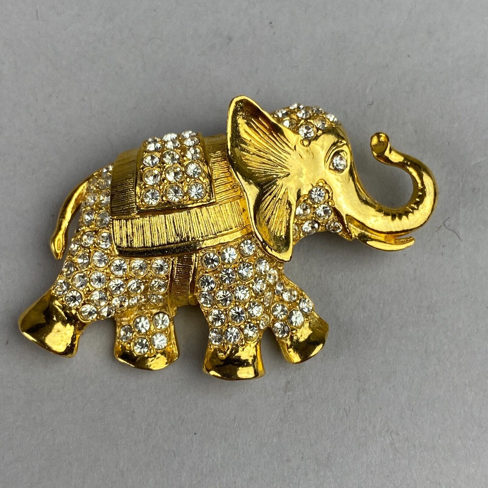 Vintage Gold-Tone Faux-Diamond Elephant Pin Brooch