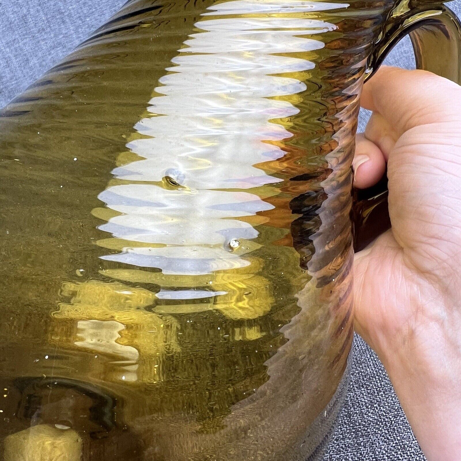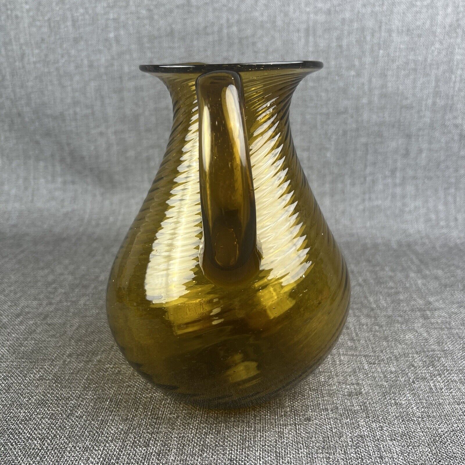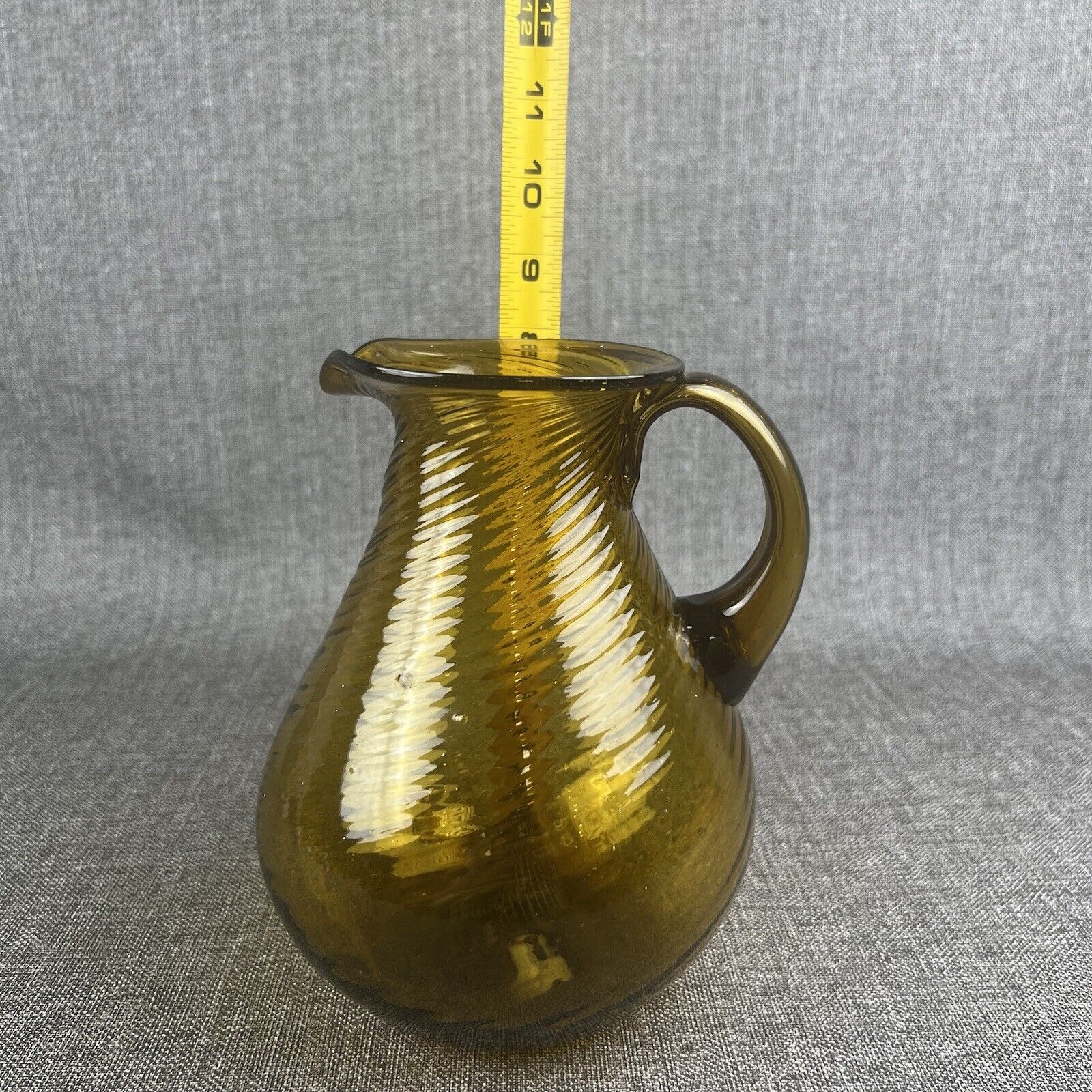 Vintage Hand-Blown Amber Glass Pitcher with Pontil