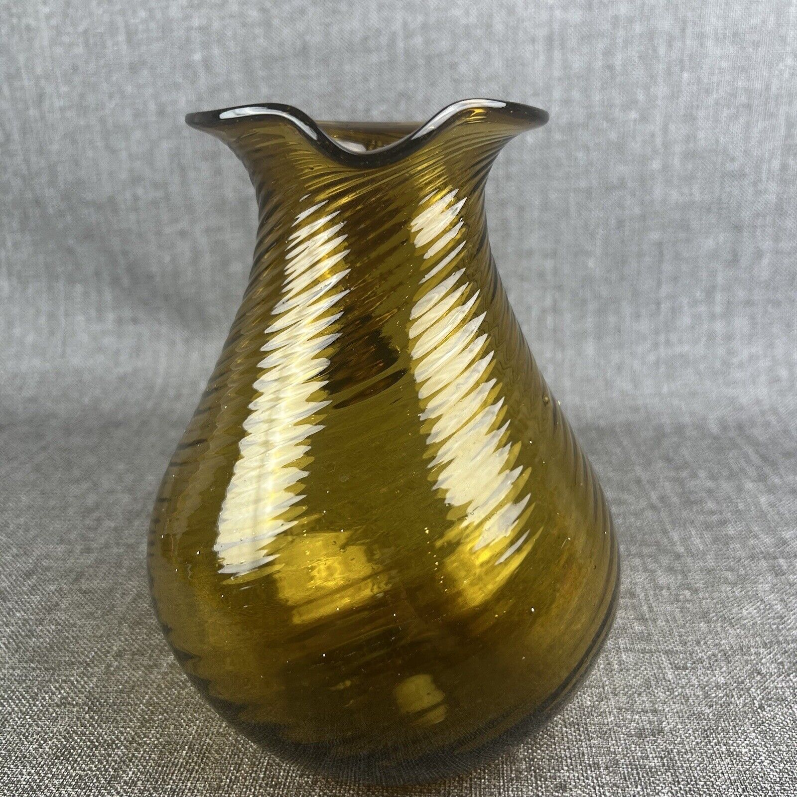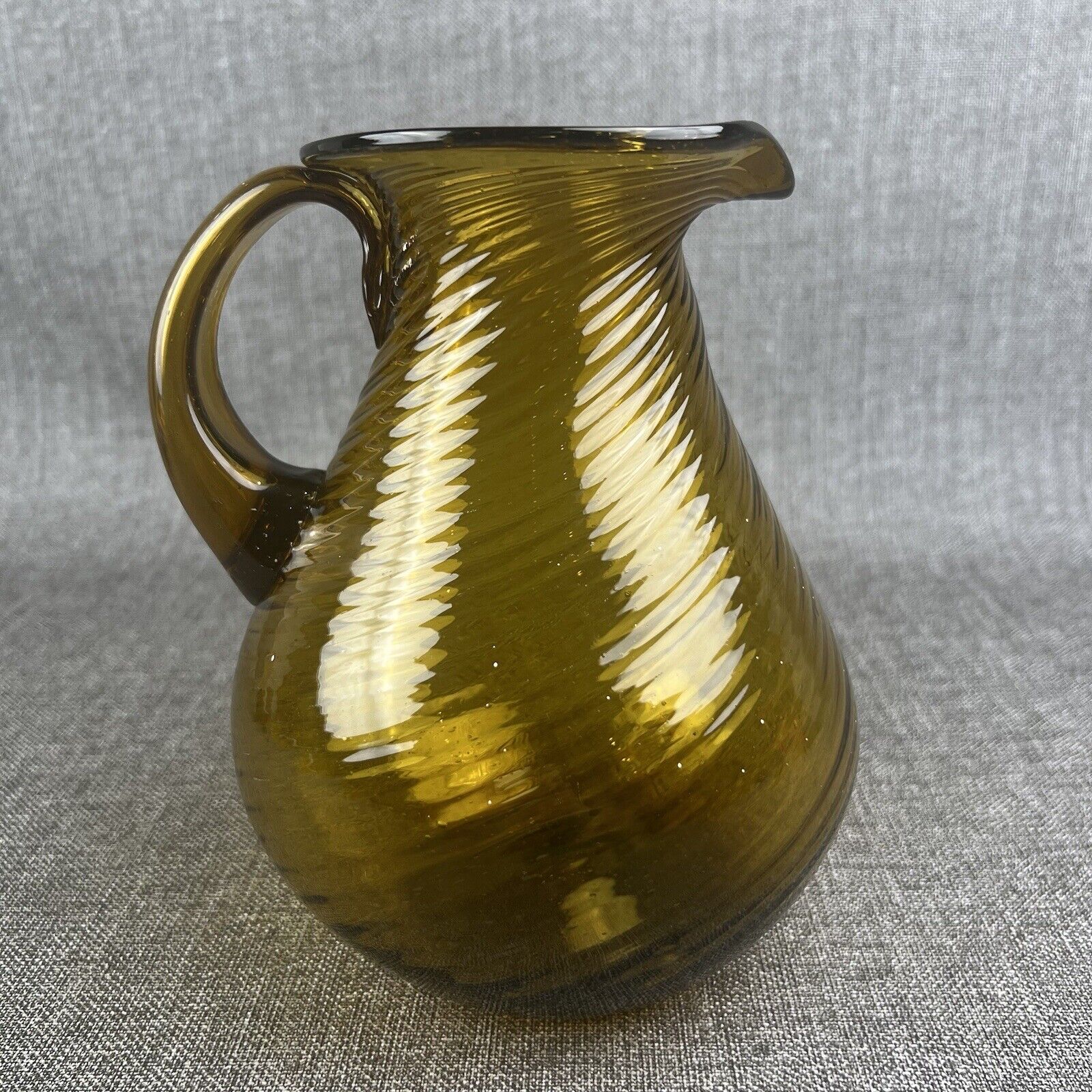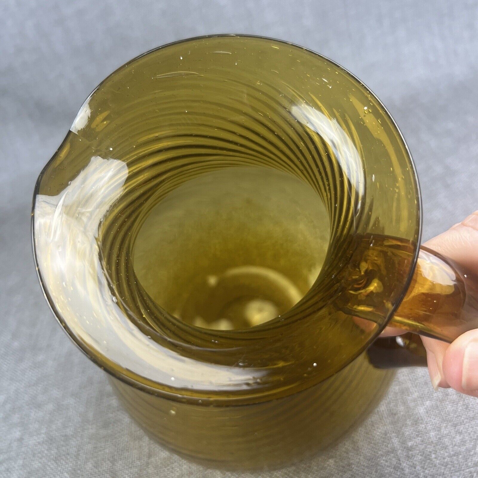 Vintage Hand-Blown Amber Glass Pitcher with Pontil