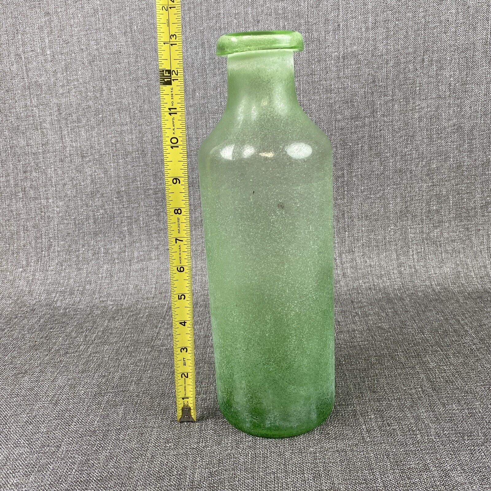 Vintage Hand Blown Green Glass Bottle with pontil on the bottom 13" tall