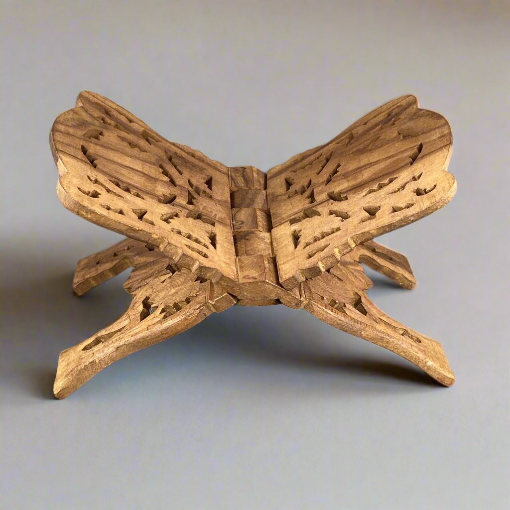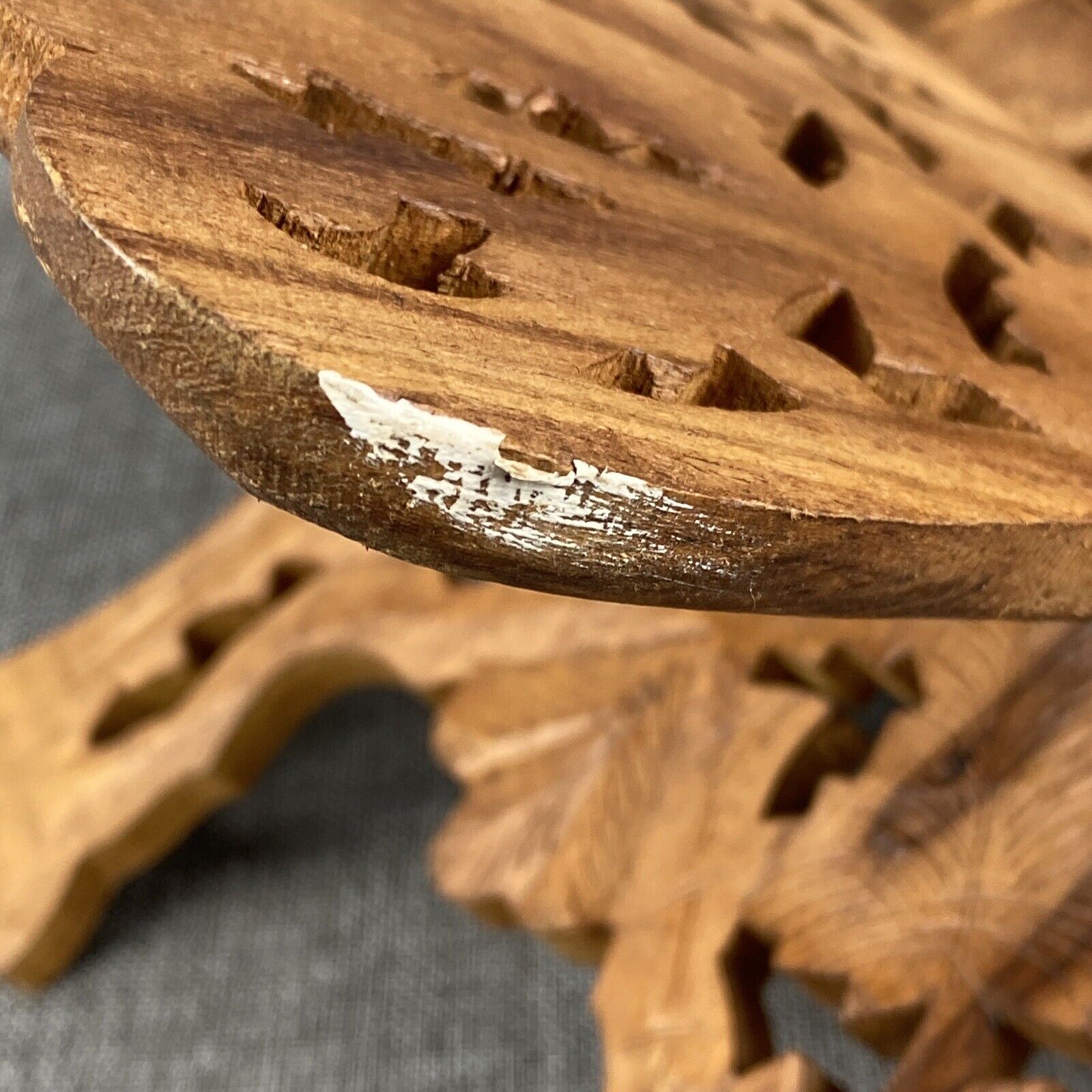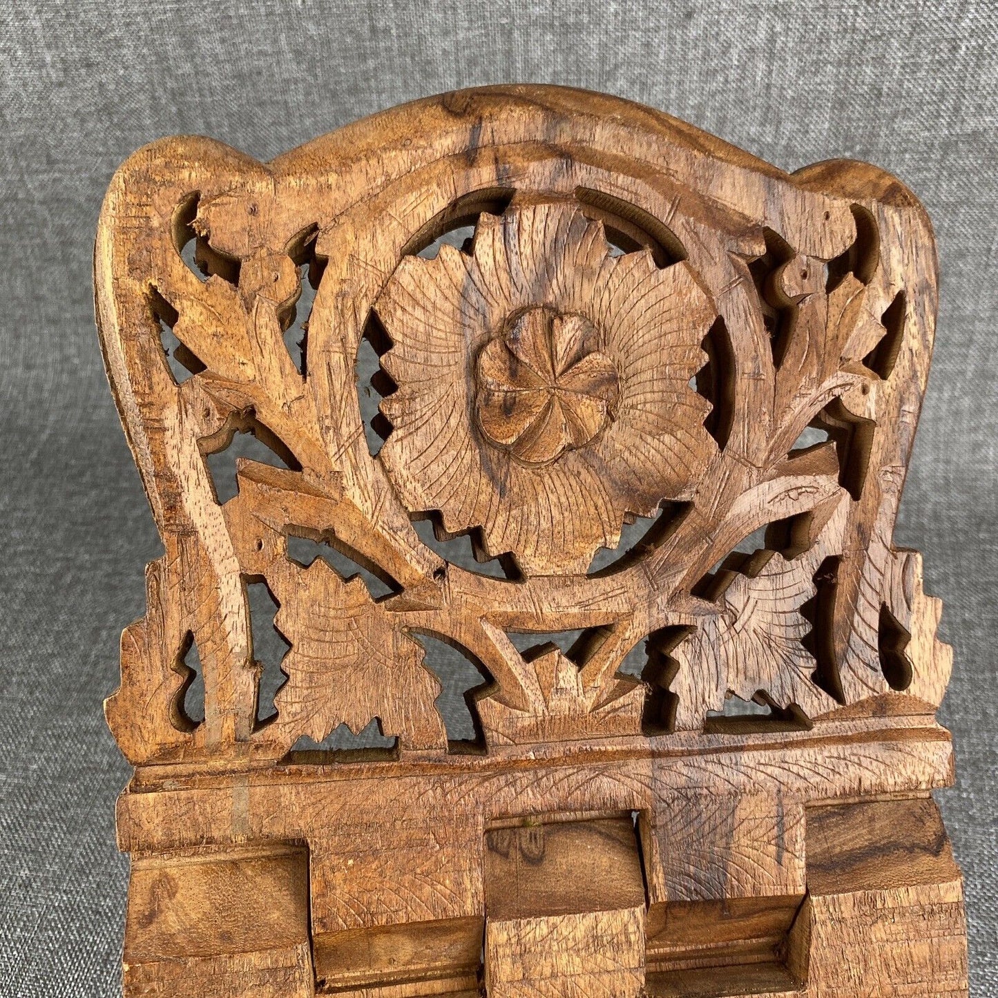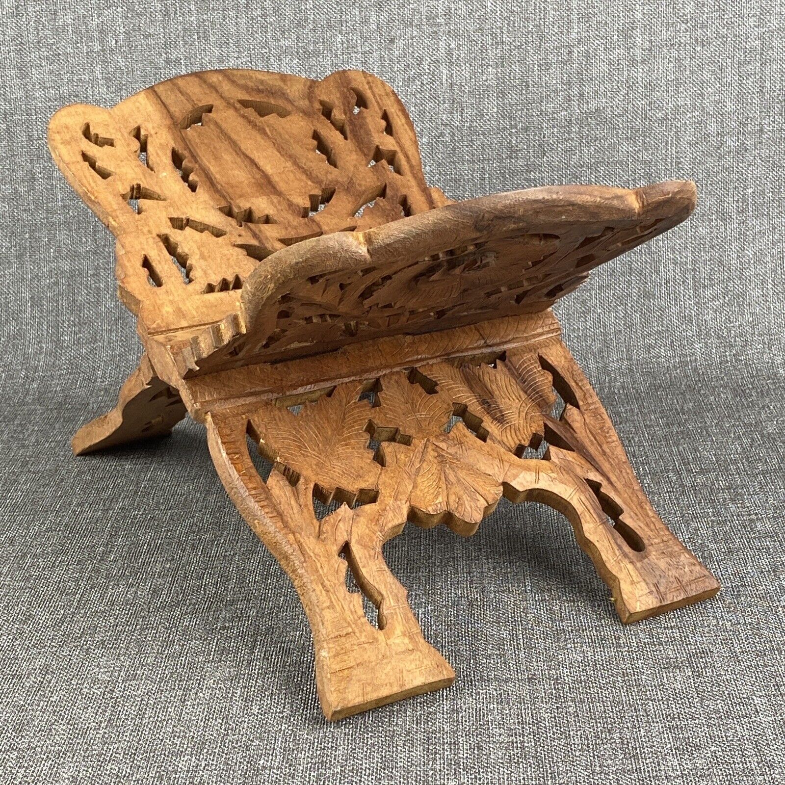 Vintage Hand Carved Wood Folding Book Rack Magazine Holder