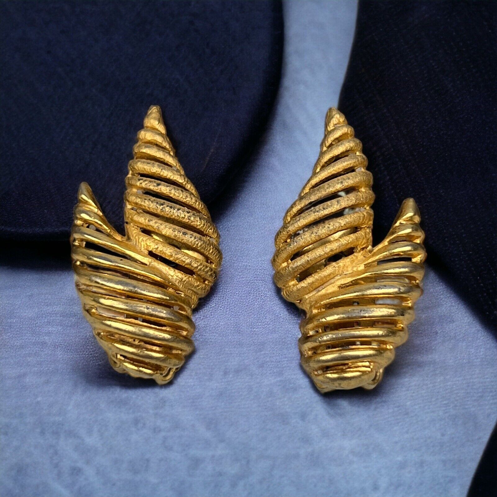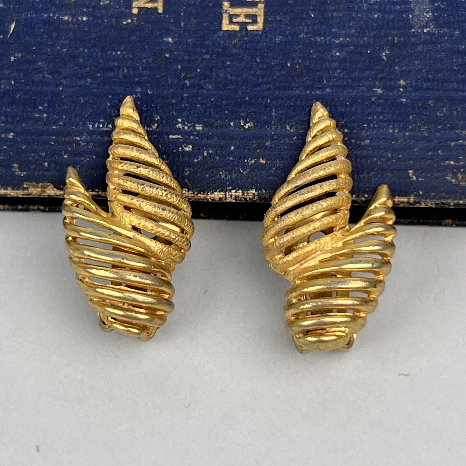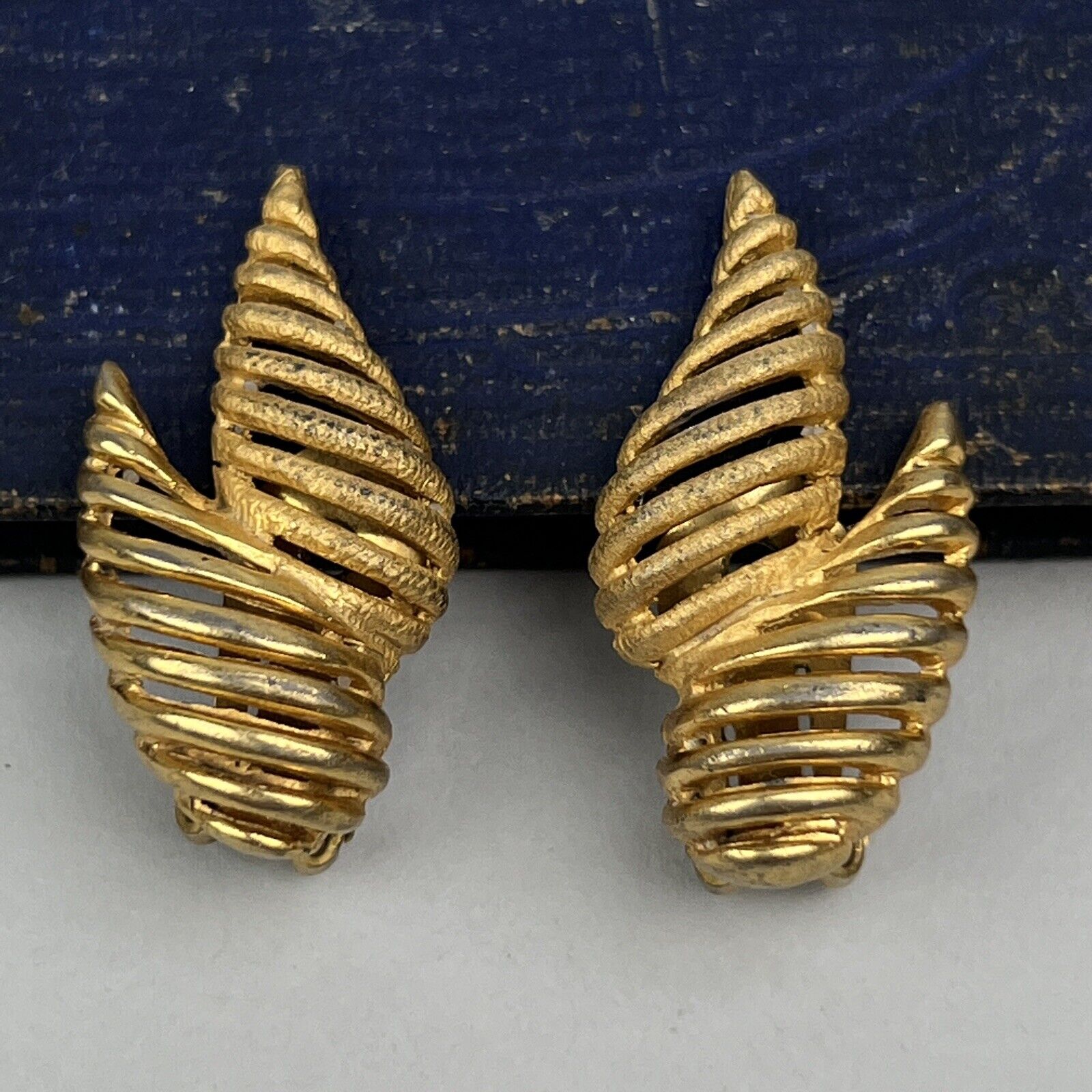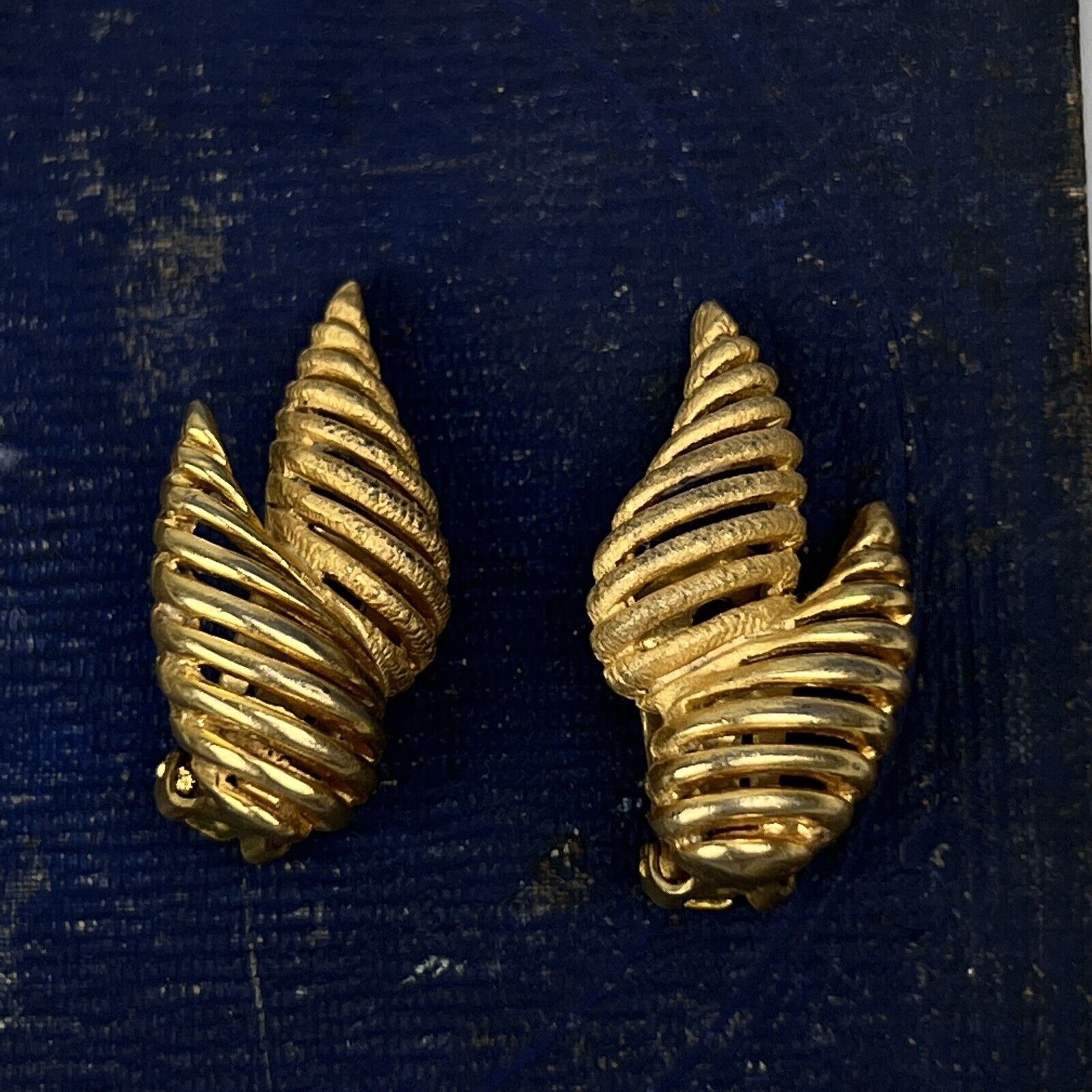 Vintage Hattie Carnegie Art Shape Gold Tone Clip Earrings 1.25"