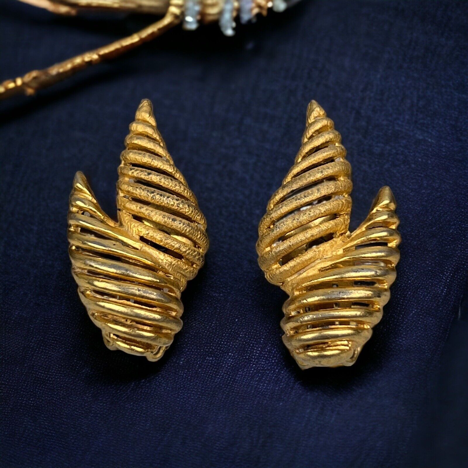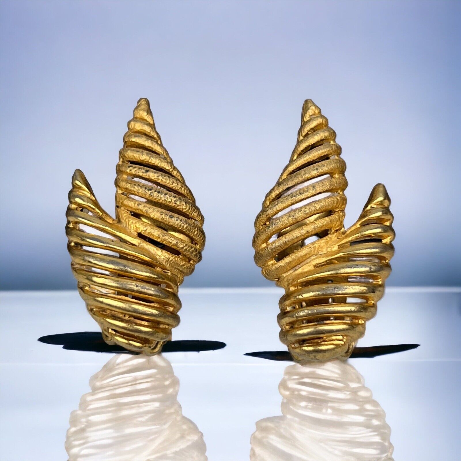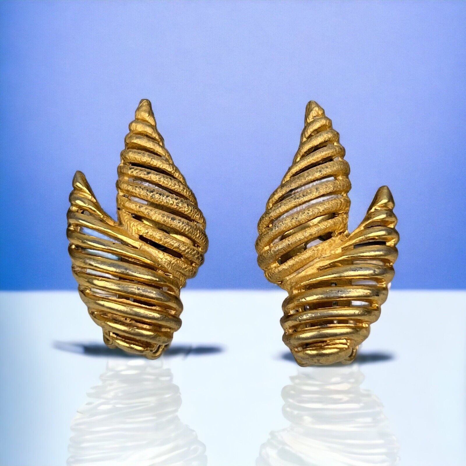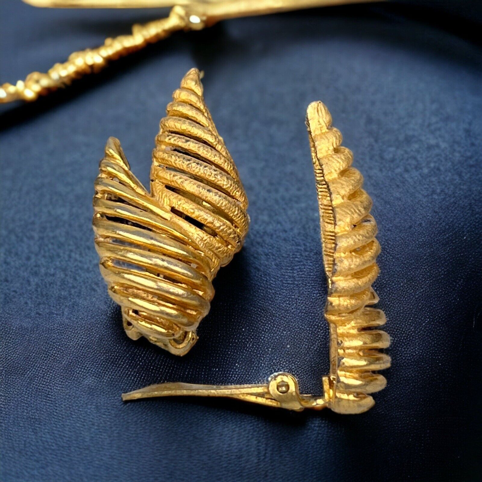 Vintage Hattie Carnegie Art Shape Gold Tone Clip Earrings 1.25"