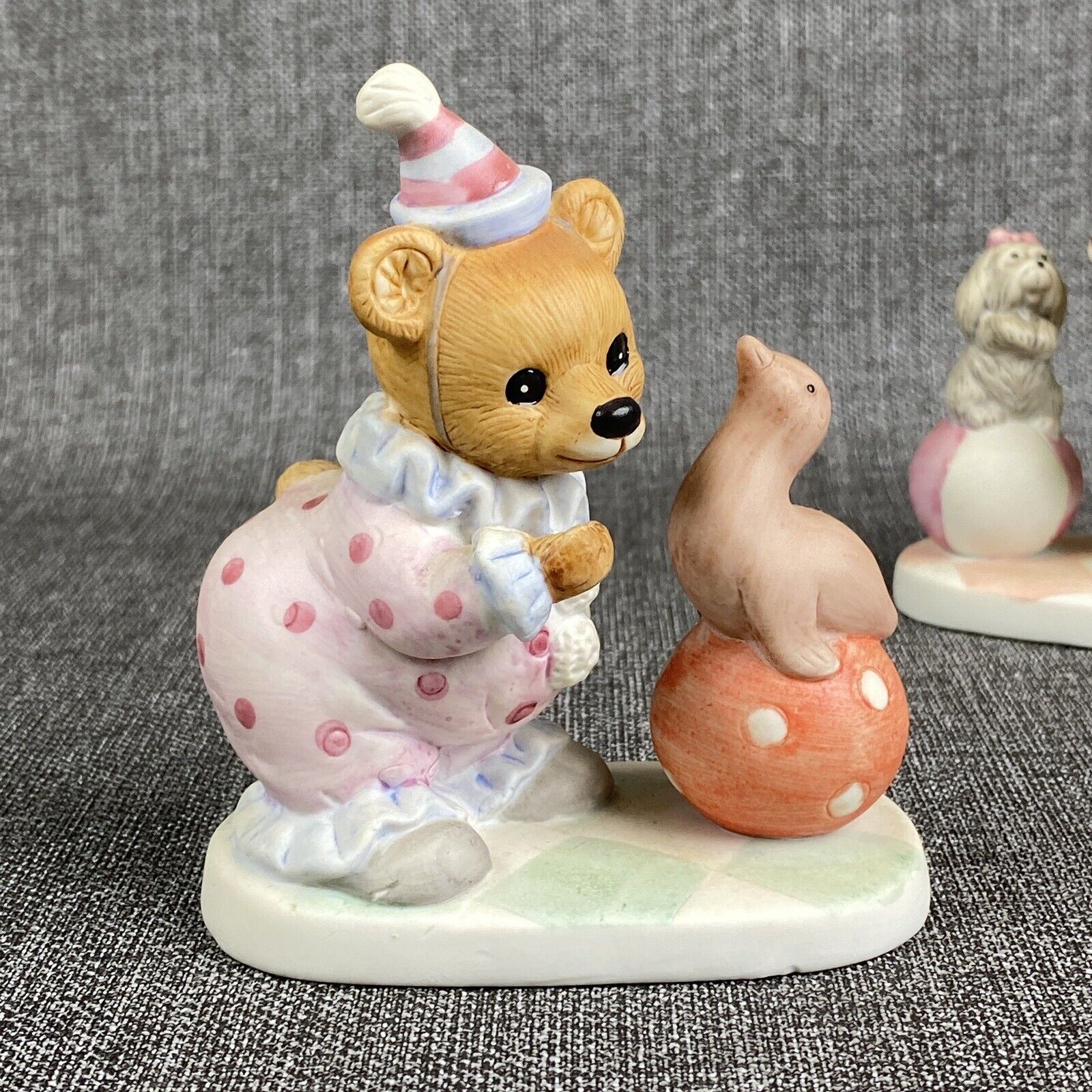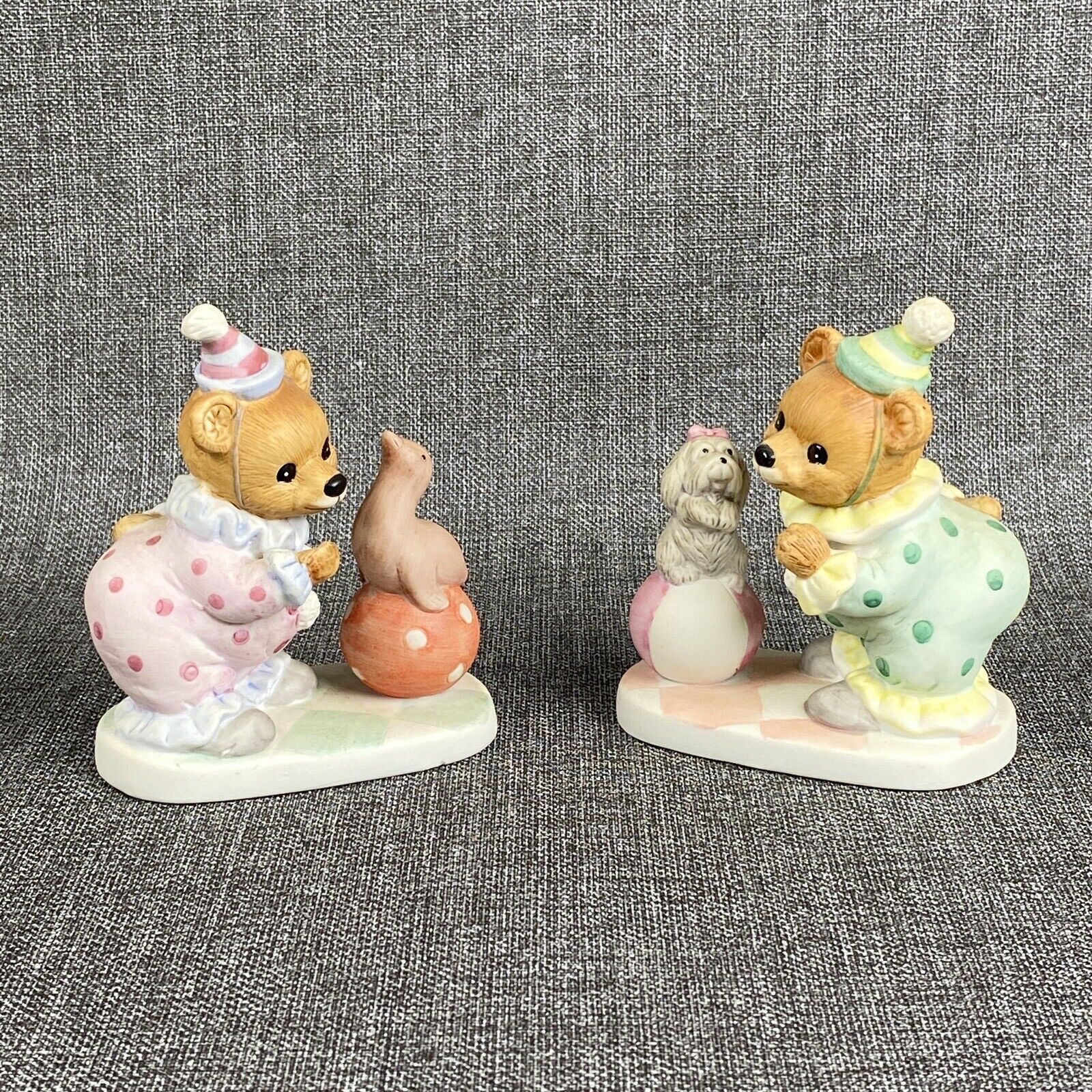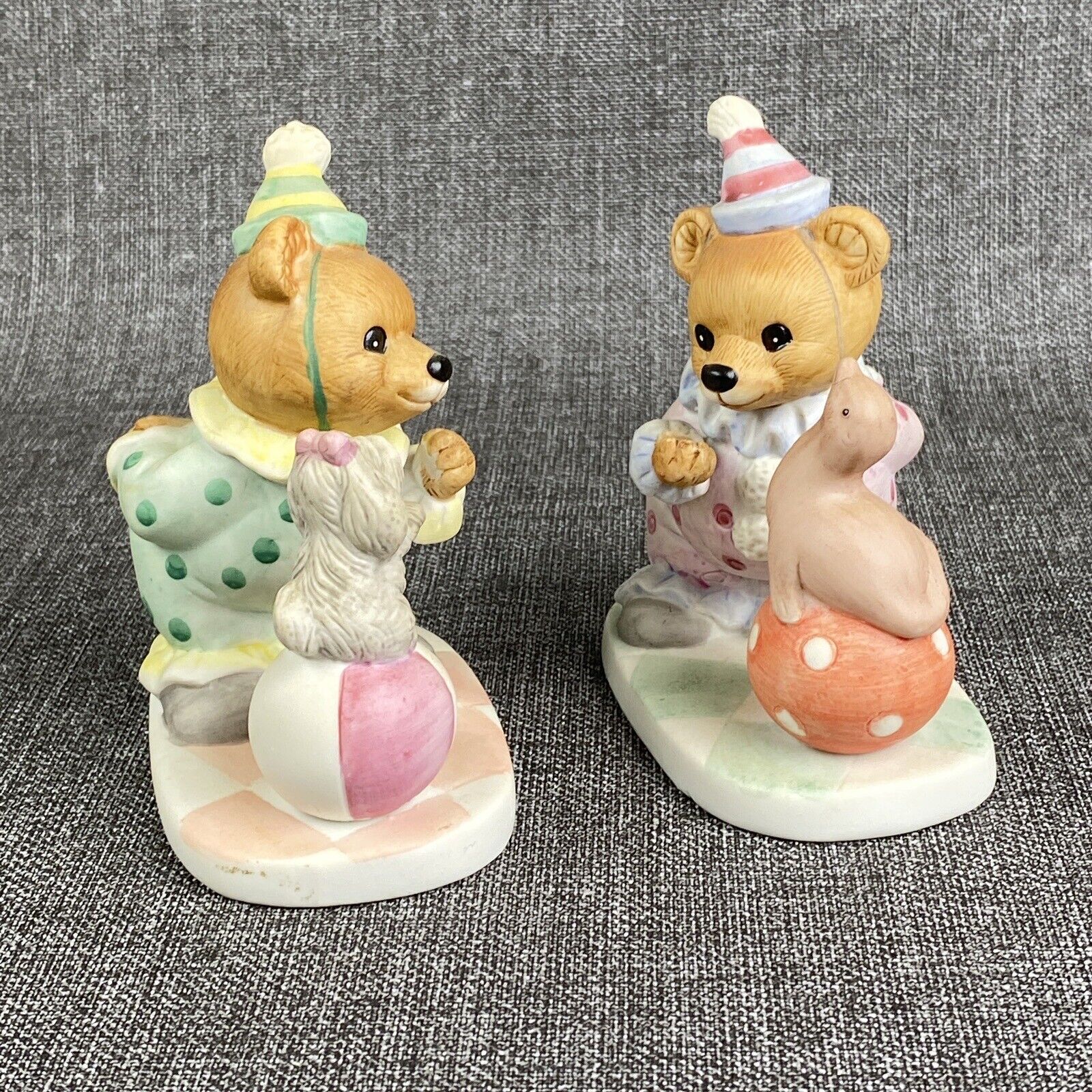 Vintage HOMCO Porcelain CIRCUS CLOWN TEDDY BEARS Set of 2 Figurines