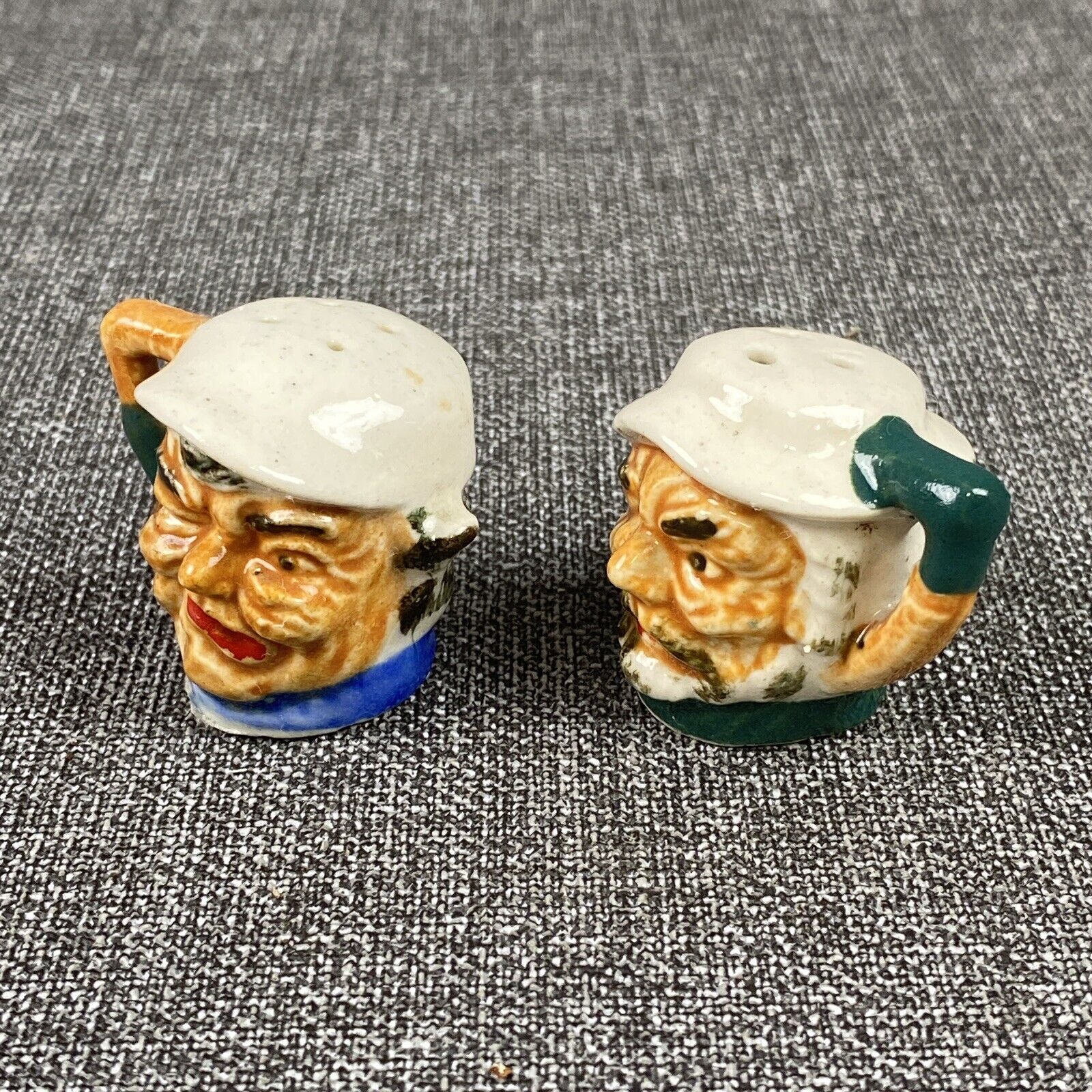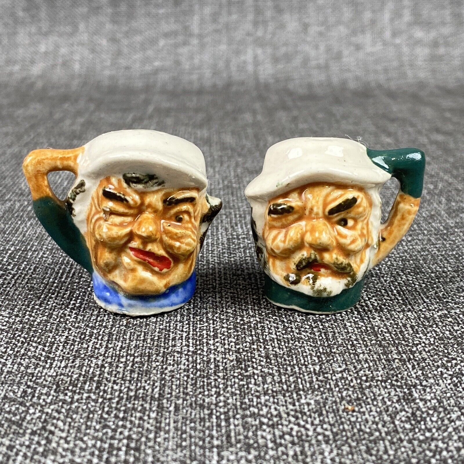 Vintage Japanese Porcelain Salt & Pepper Shakers Head Mugs