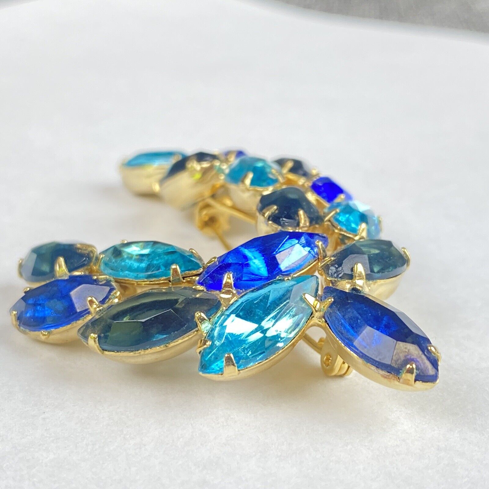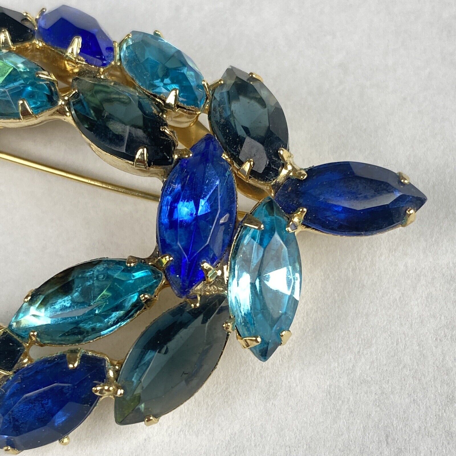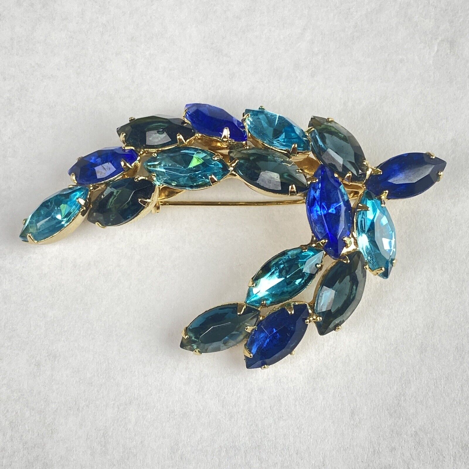 Vintage Juliana Blue Rhinestone Pin Brooch 3"