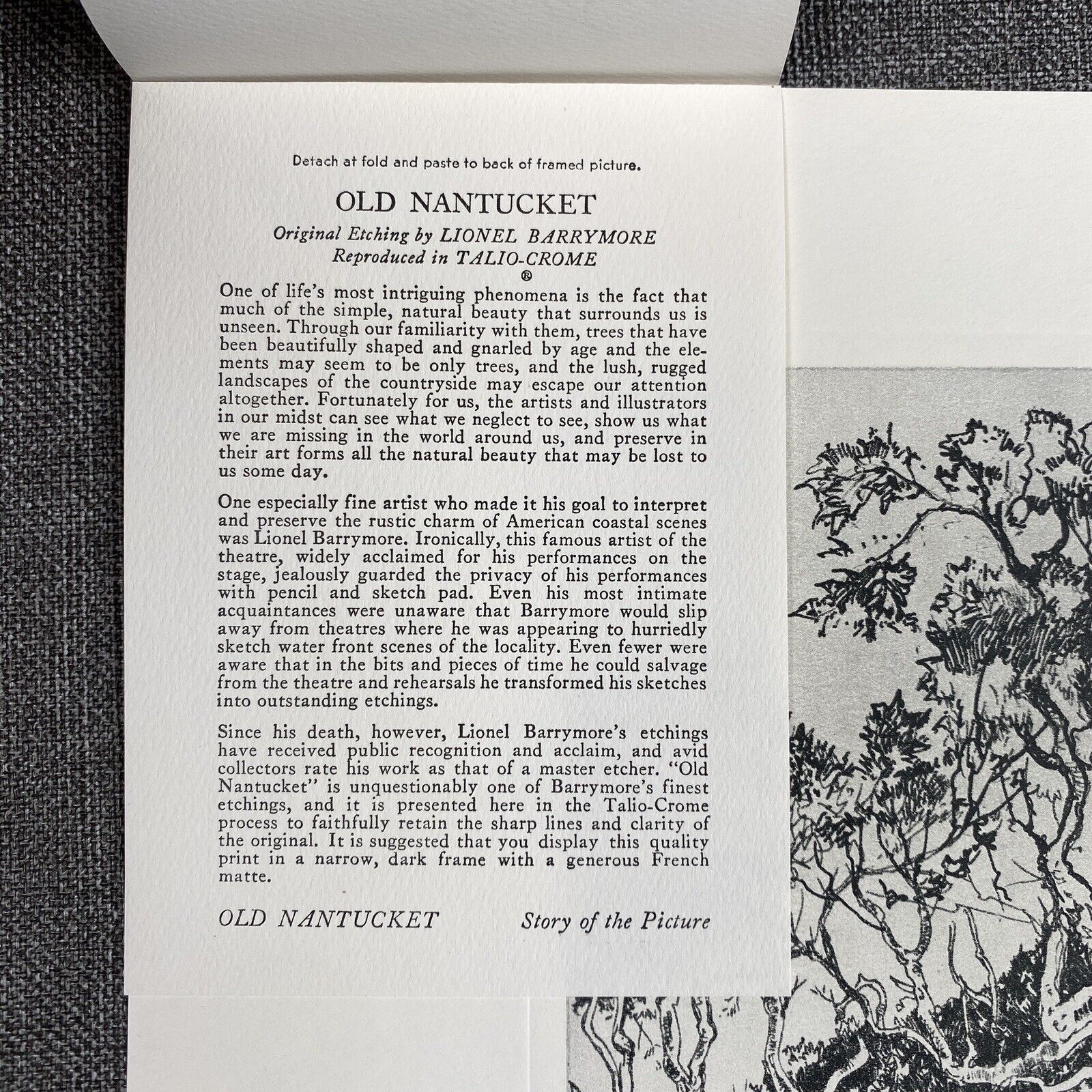 Vintage Lionel Barrymore Talio-Chrome Etching 'Old Nantucket' 12" x 16"