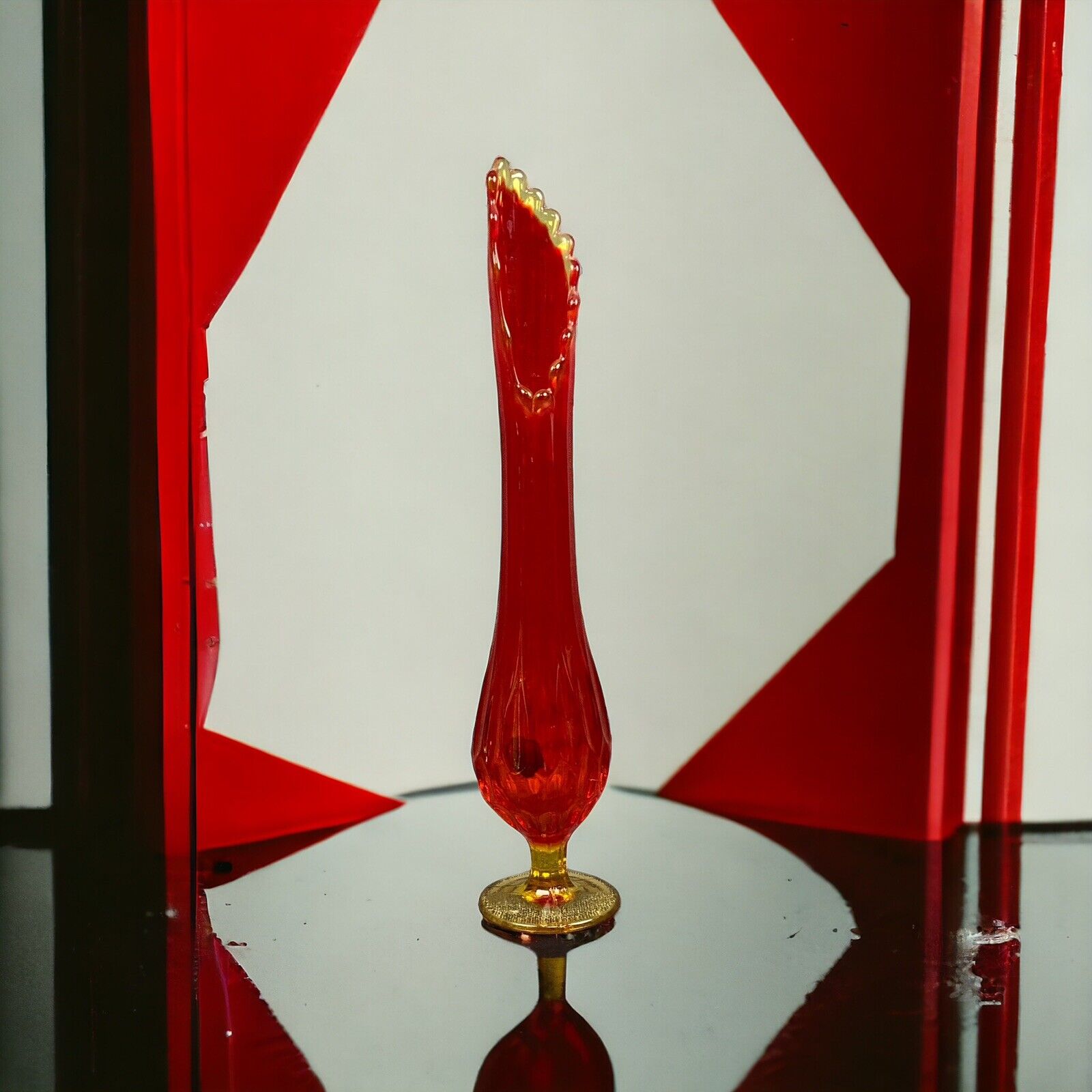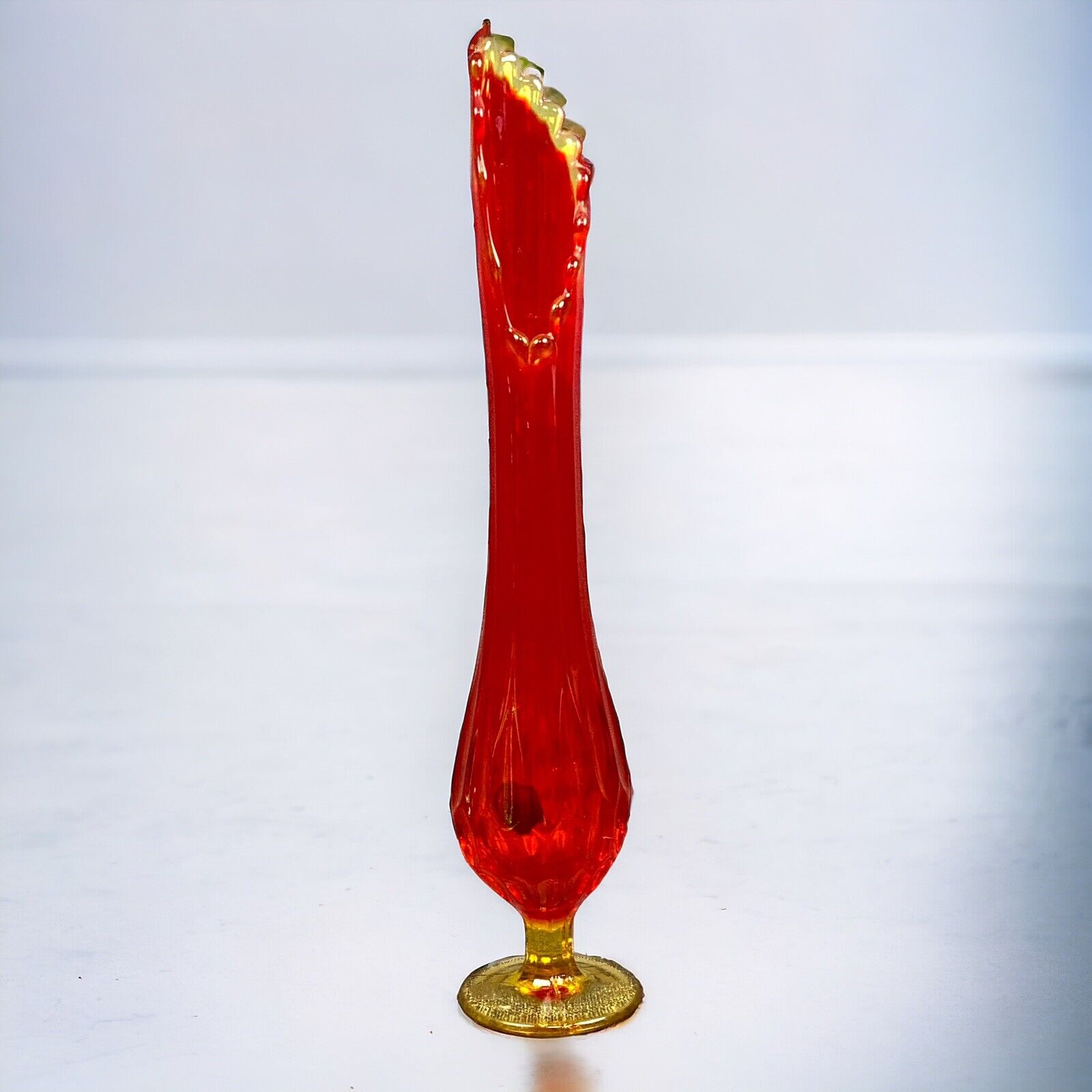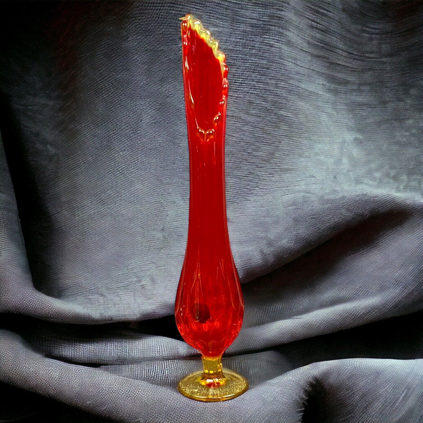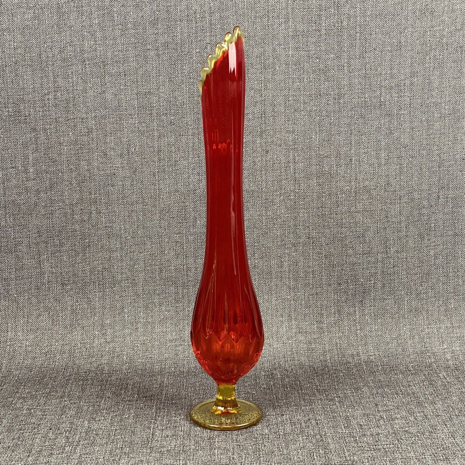 Vintage MCM 1960’s Amberina Fenton 17” Swung Vase