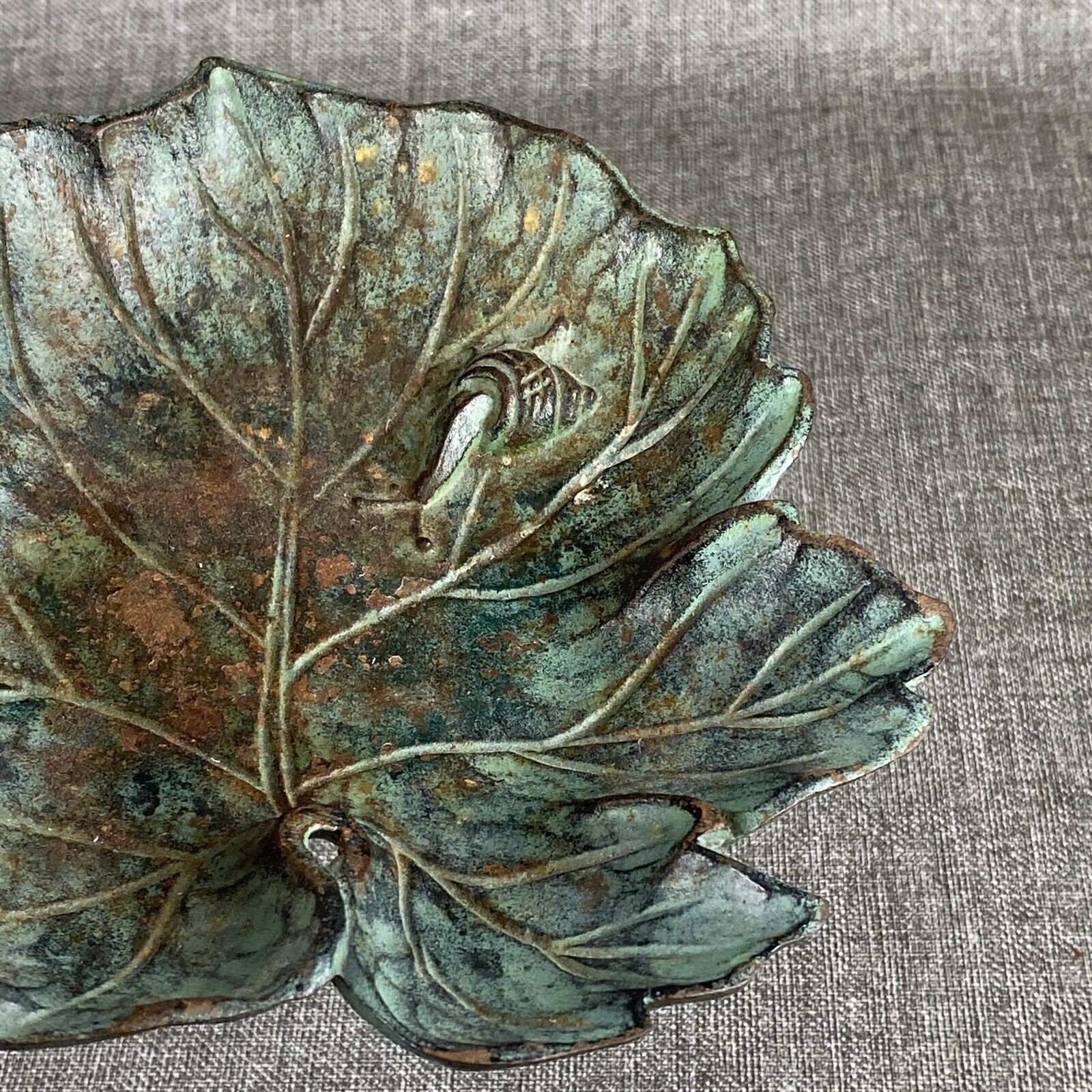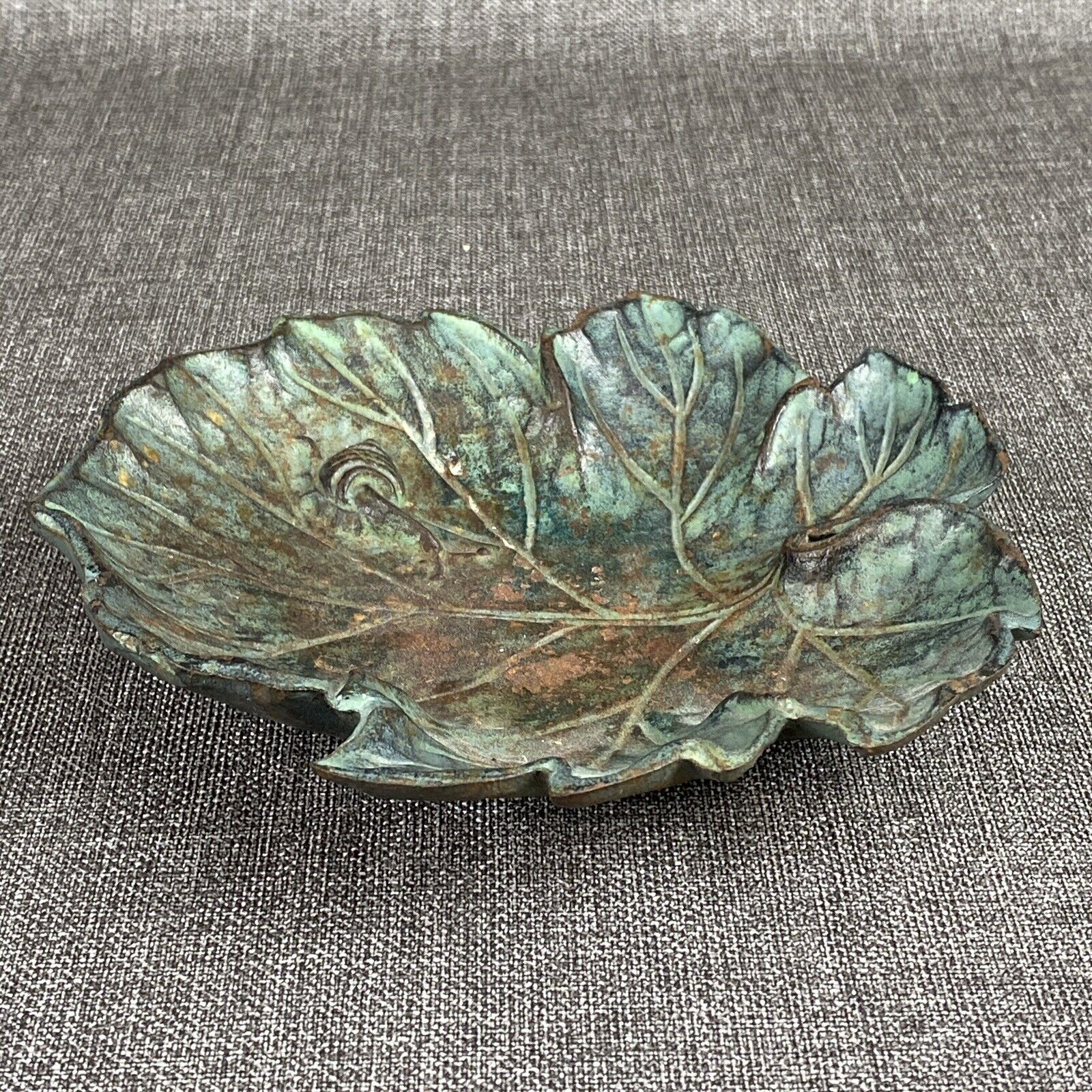 Vintage Metal Leaf with Snail Trinket Dish Toyo Japan