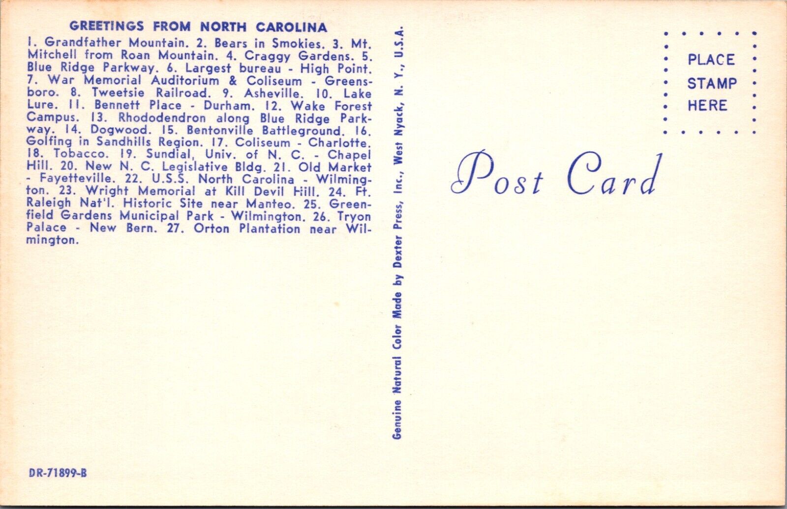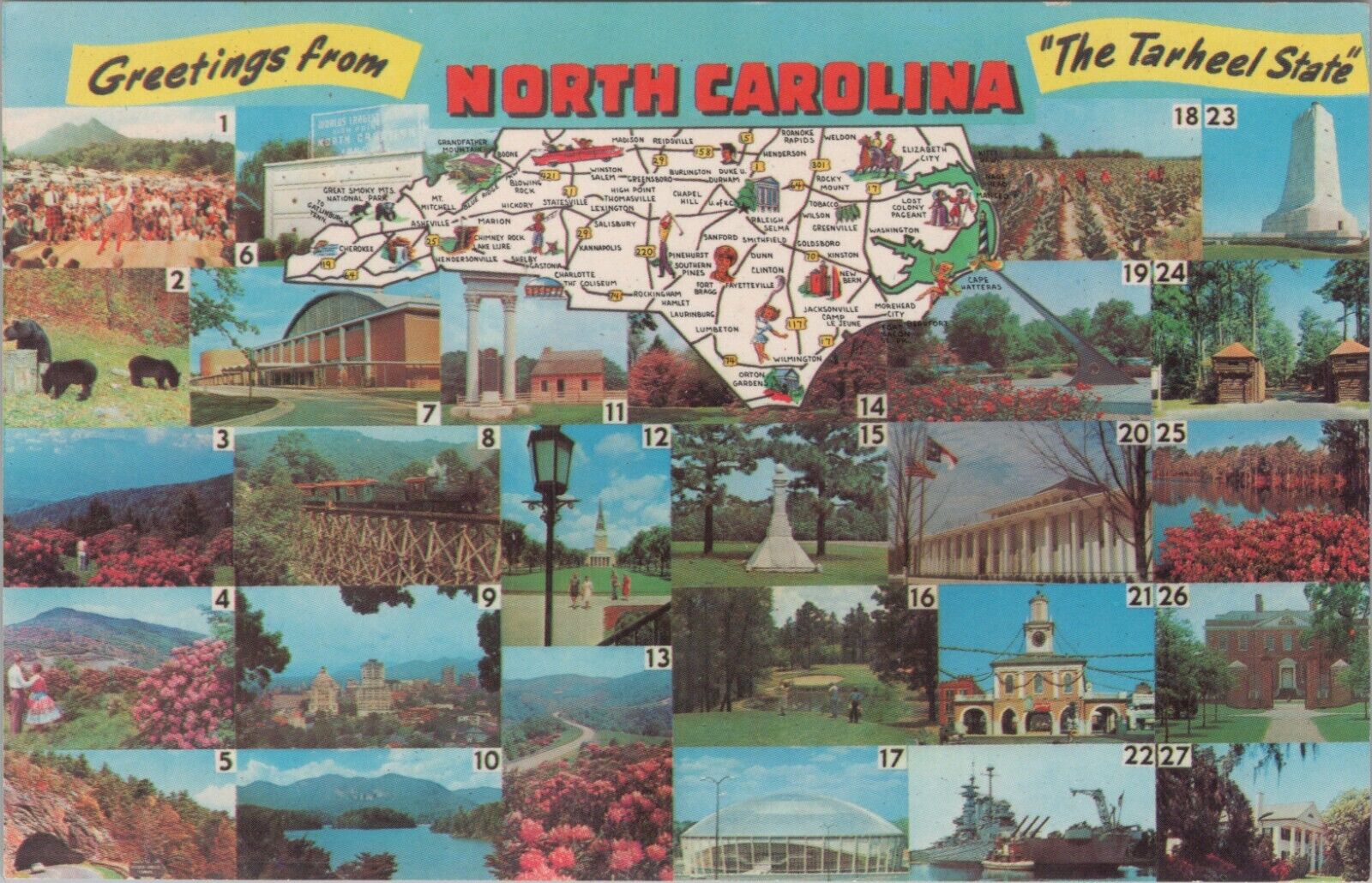 Vintage North Carolina, The Tarheel State Greetings Postcard