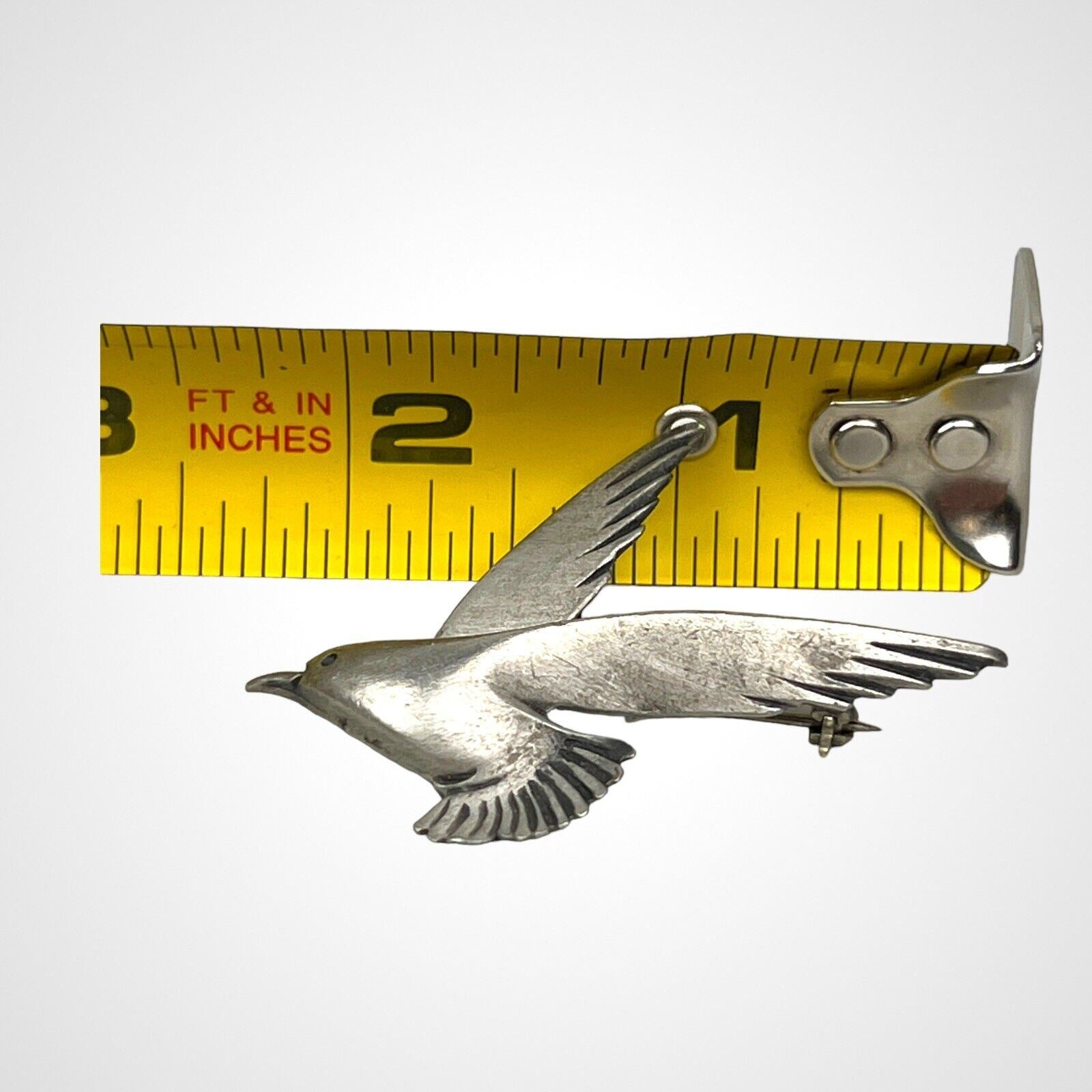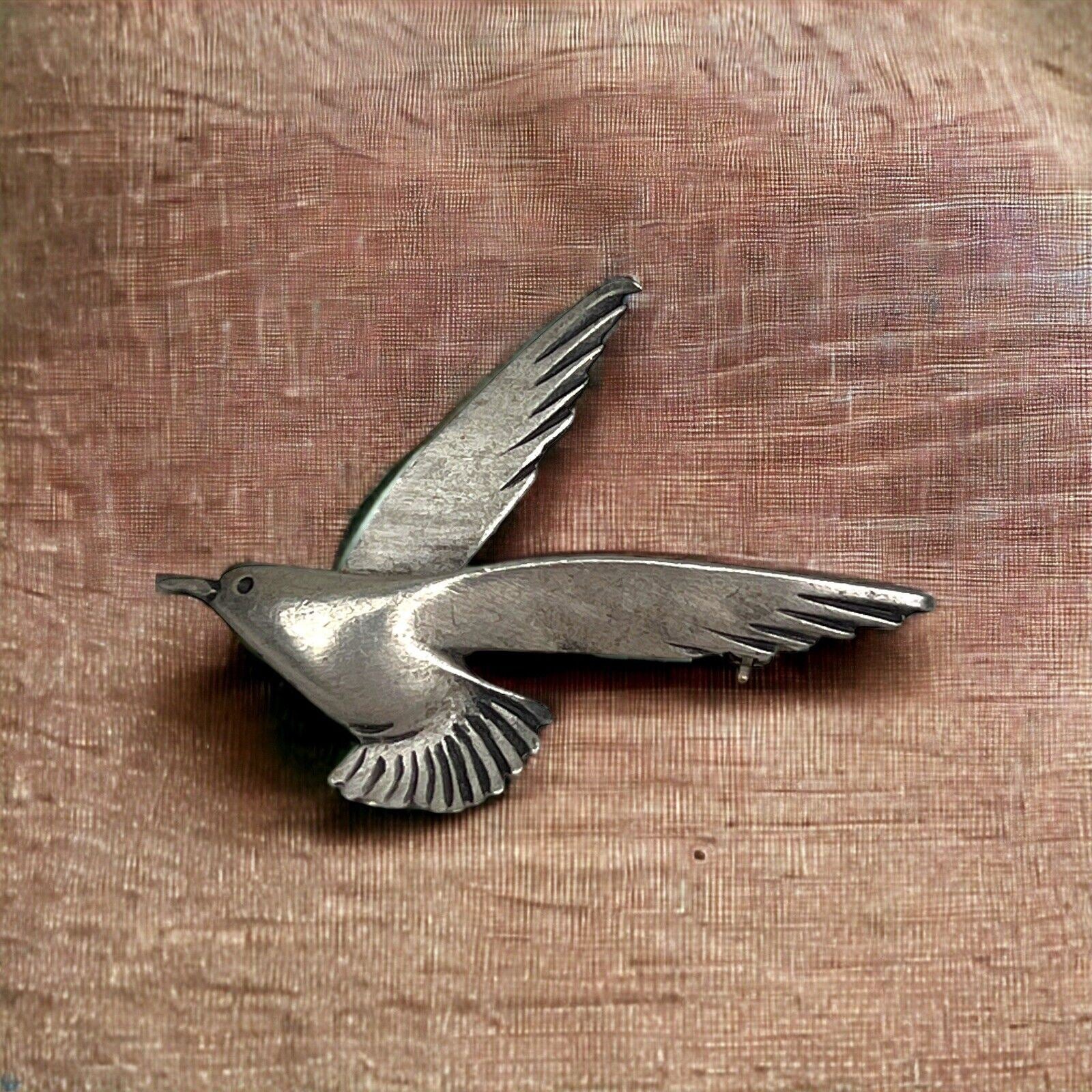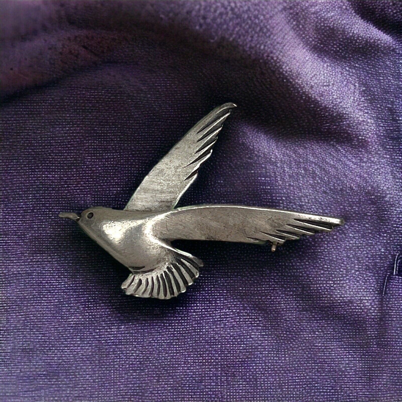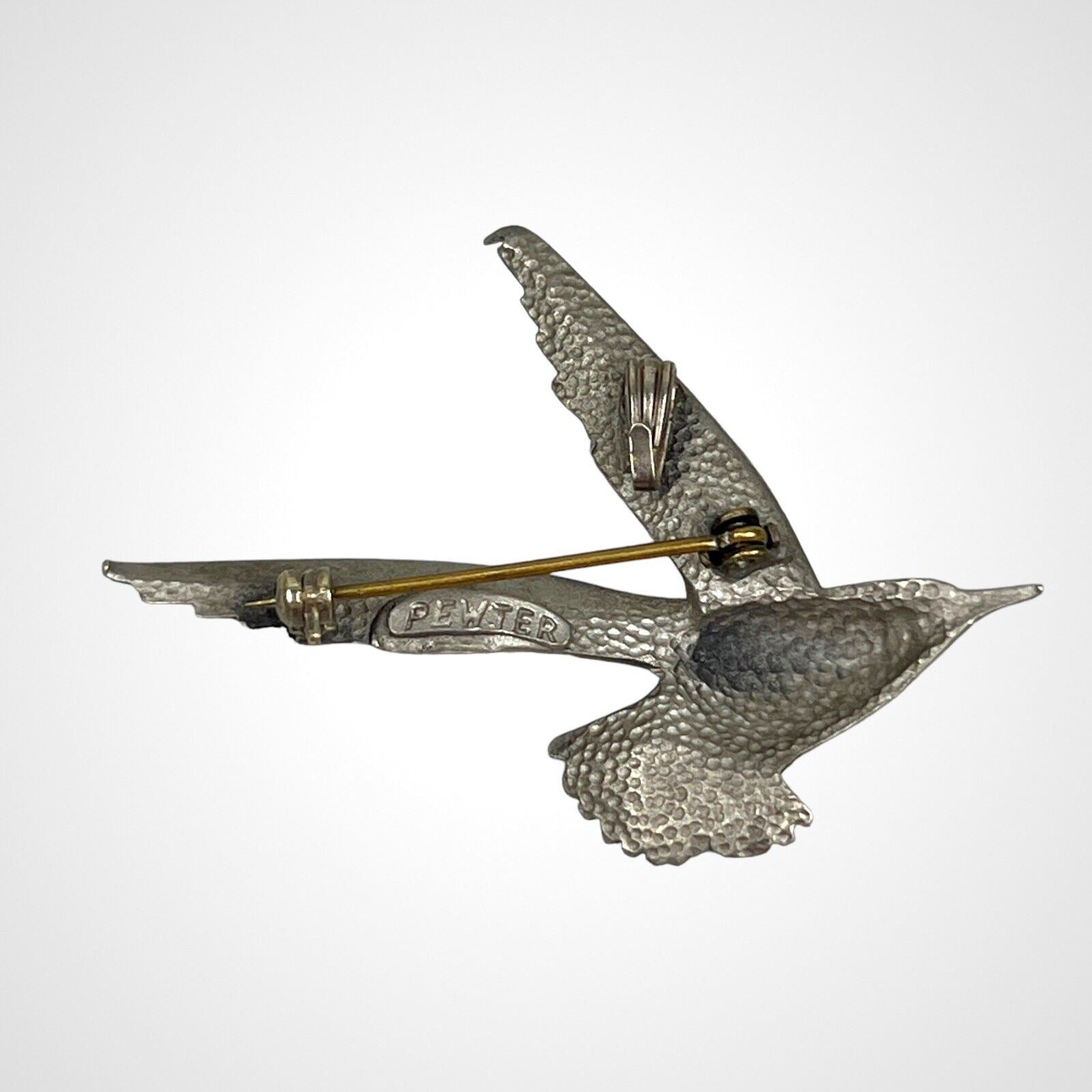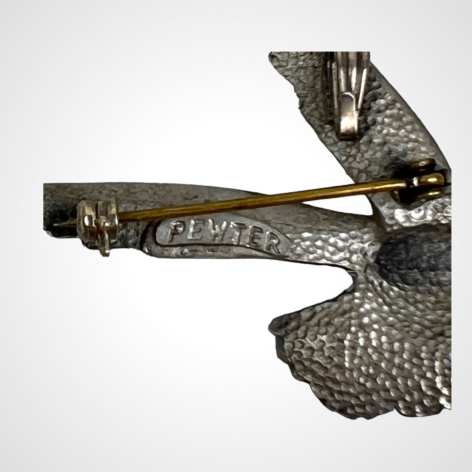 Crafted with care and attention to detail, this brooch features intricate detailing and a classic bird design. This Vintage Pewter Bird Brooch Pin is sure to impress and captivate all who view it.
