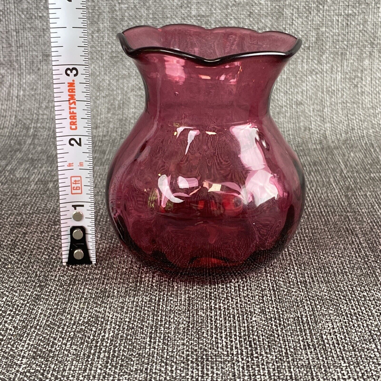 Vintage Pilgrim Cranberry Glass Vase and Pitcher Handmade in USA Lot of 2
