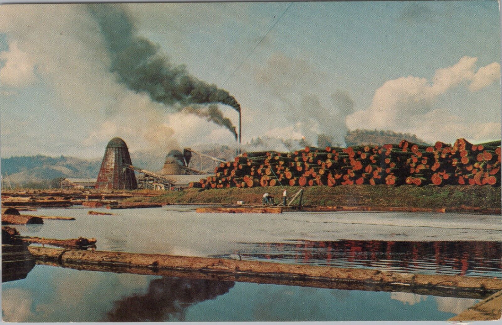 Vintage Postcard Log Pond and Sawmill Typical of This Area, Berkeley, CA