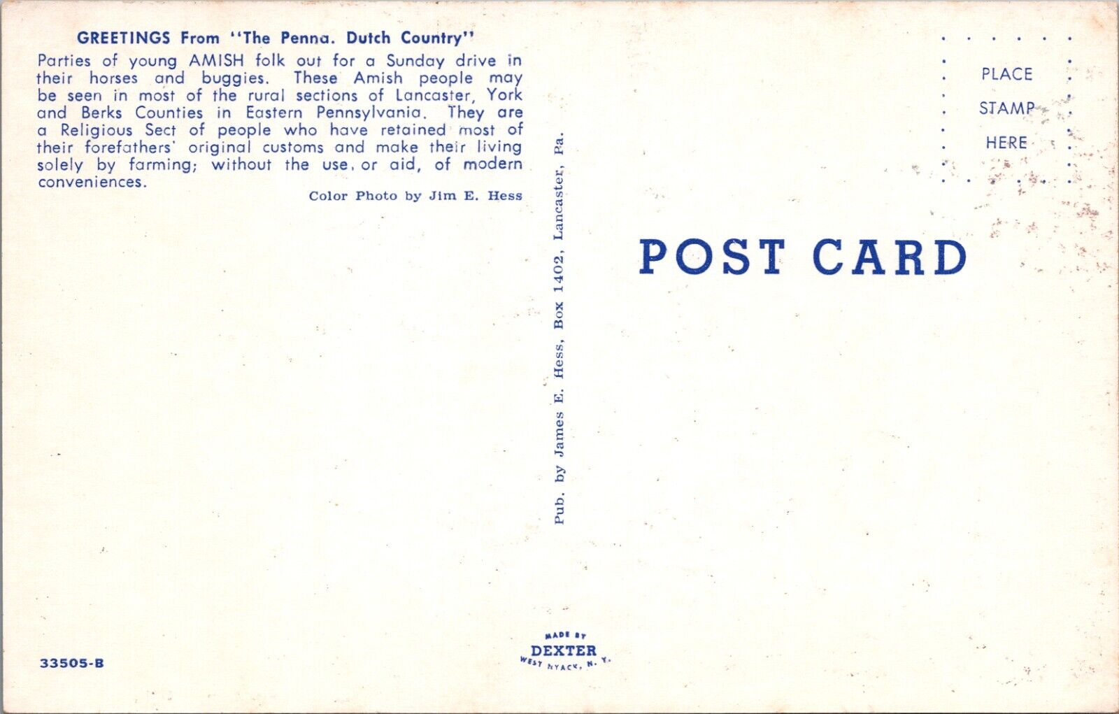 Vintage Postcard of Greetings from Amish The Penna. Dutch Country