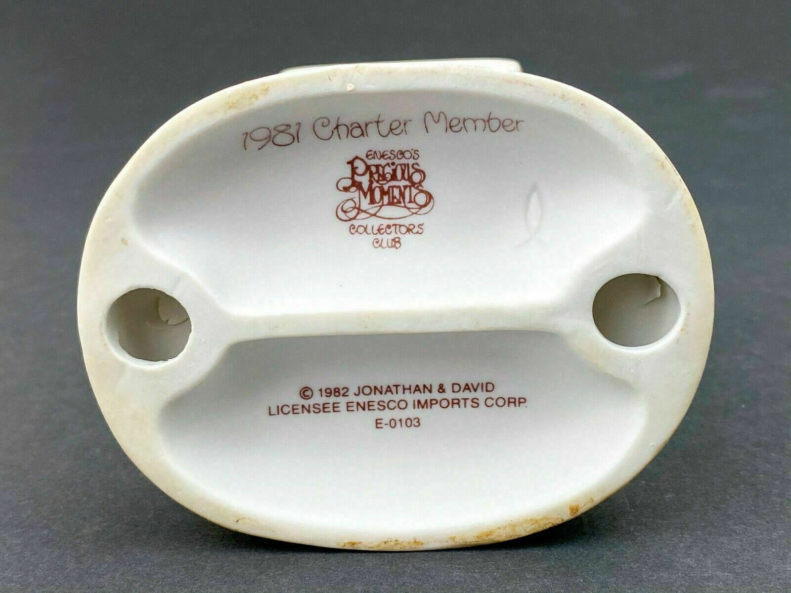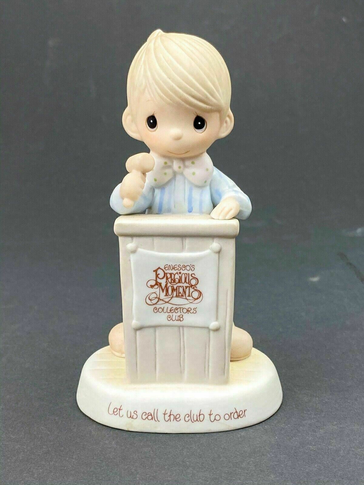 Vintage Precious Moments 1981 Charter Member E-0103 Boy at Podium (Fish Mark)