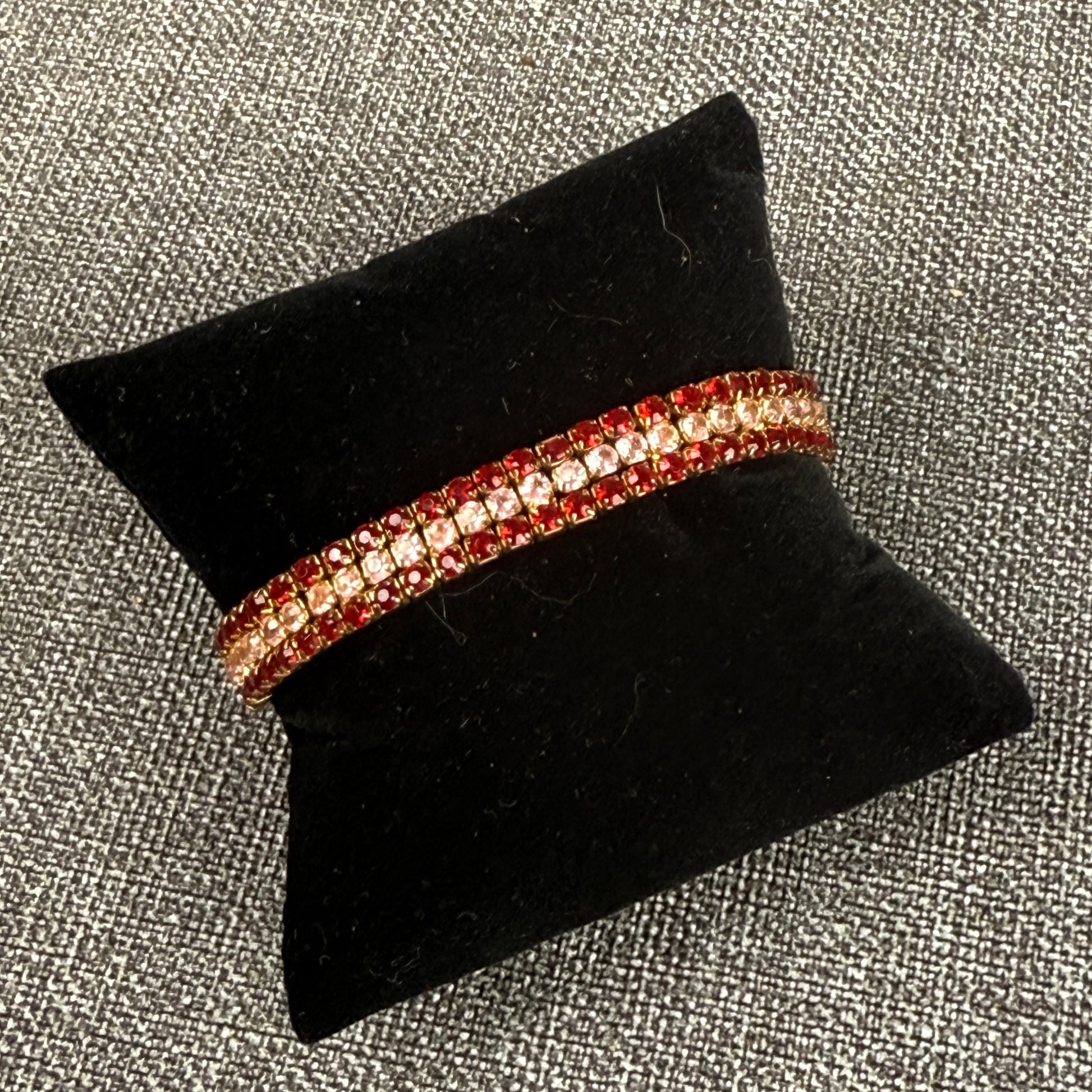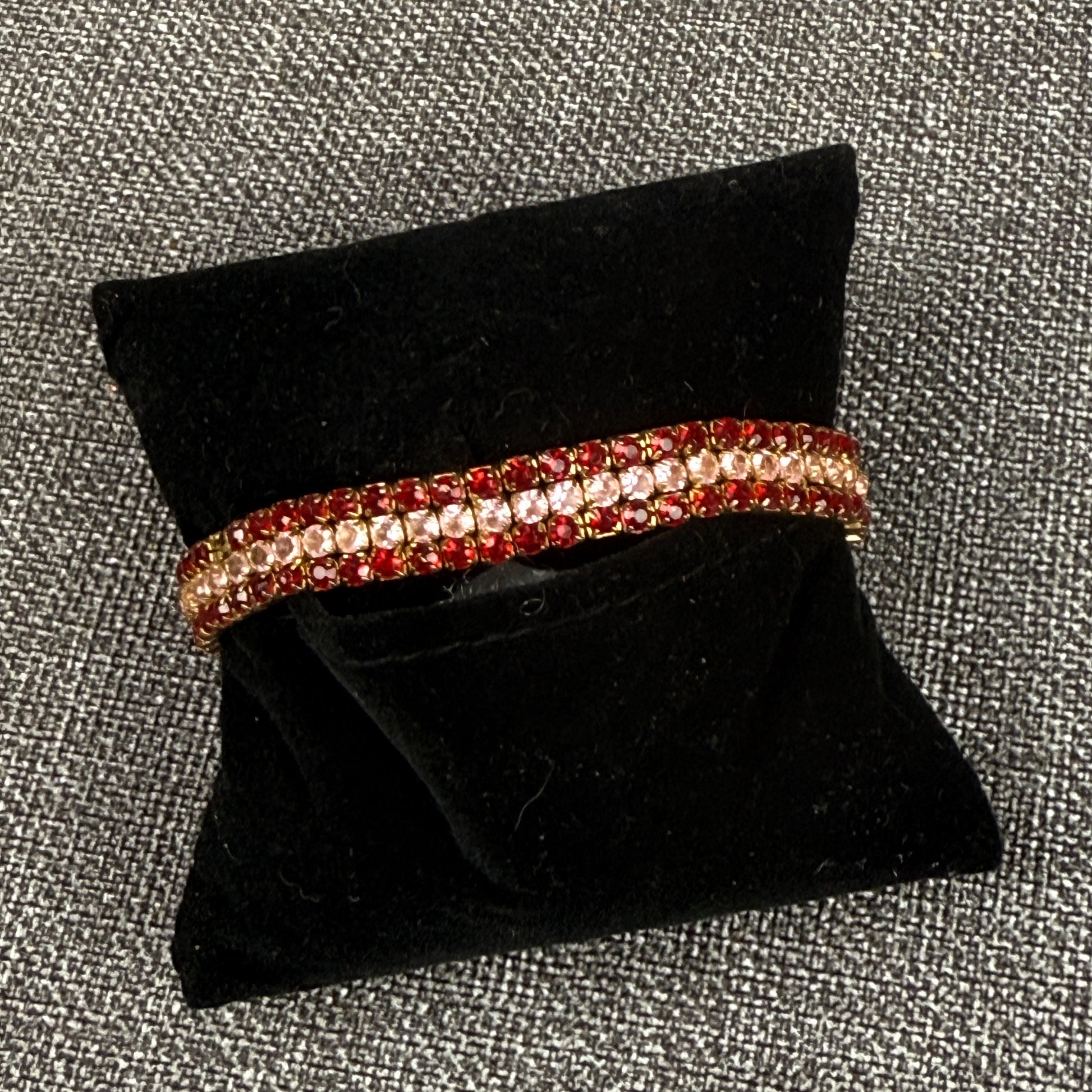 Vintage Rhinestone Bracelet Red and Pink 7"