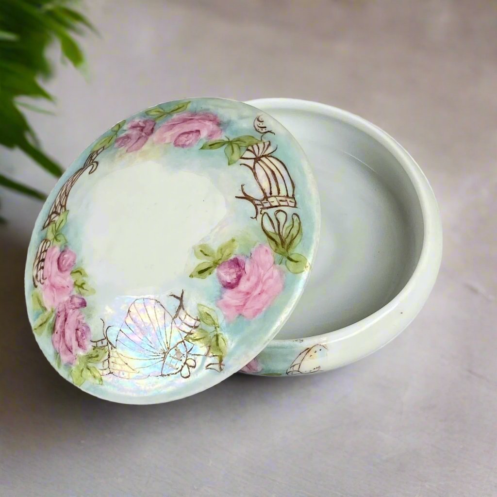 Vintage Round Trinket Dish with Flowers 3.75" in Diameter