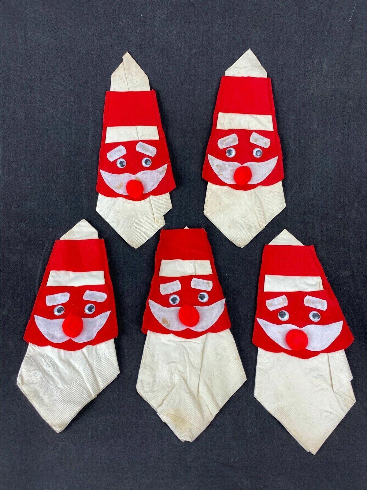 Vintage Set of 5 Handmade Felt Christmas Napkin Holders