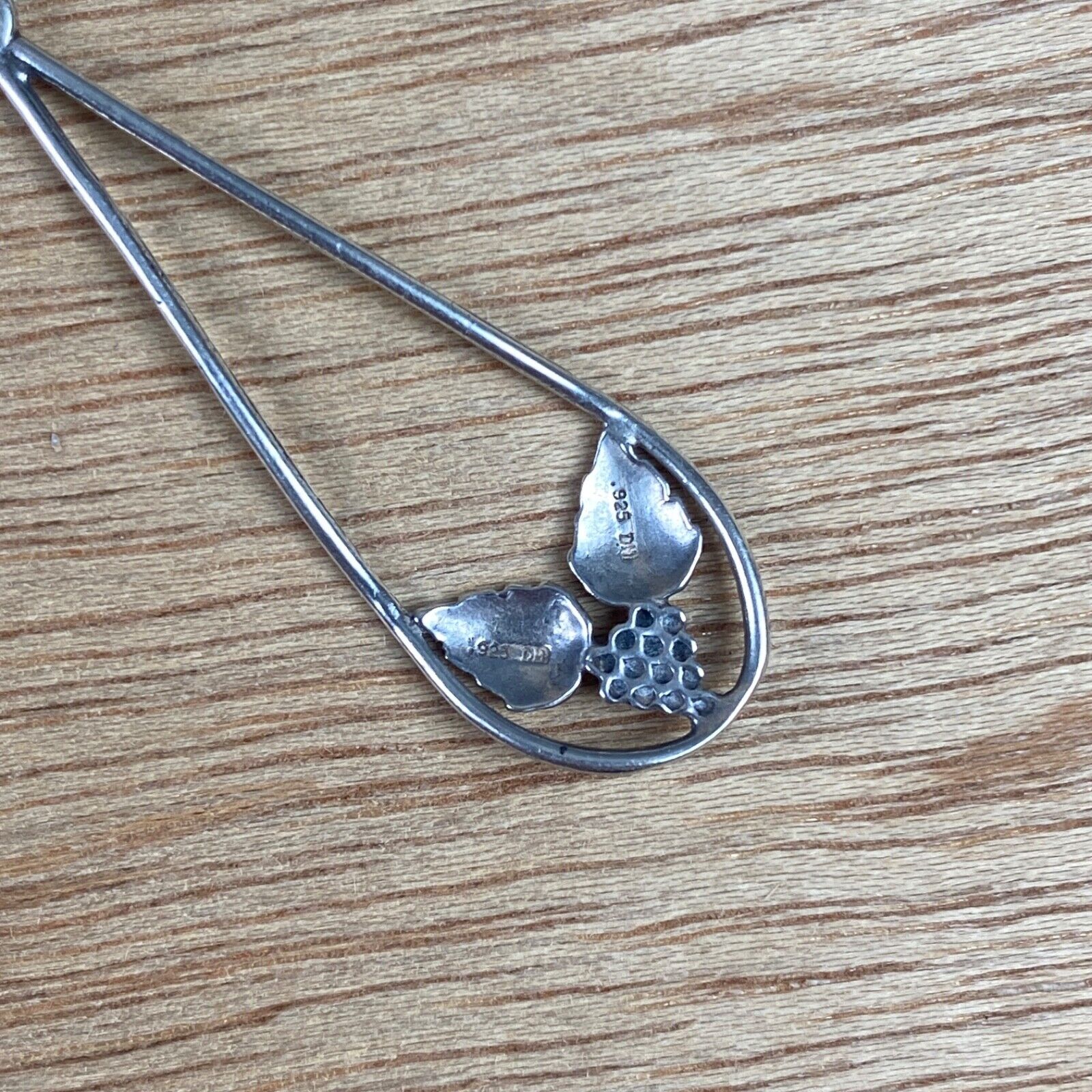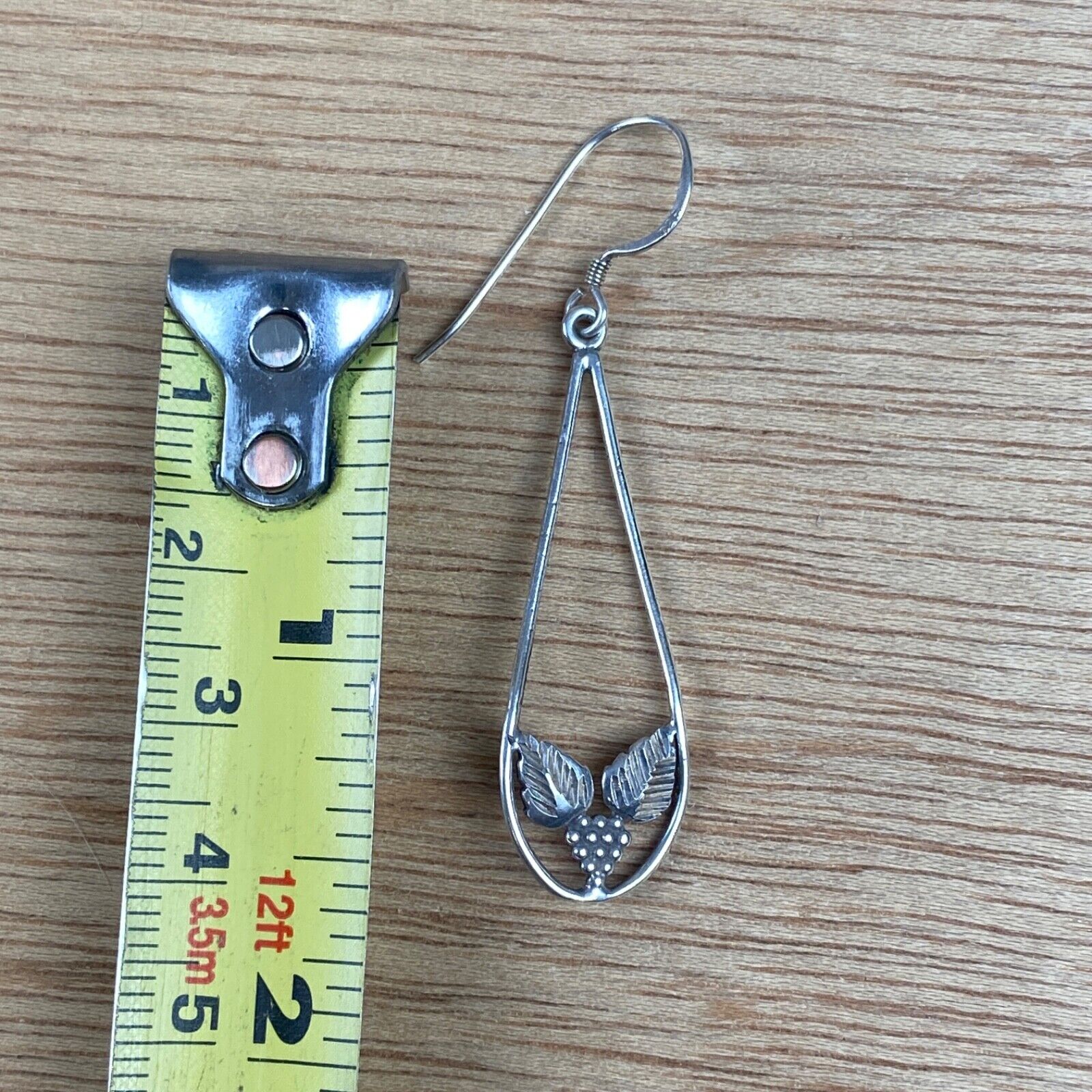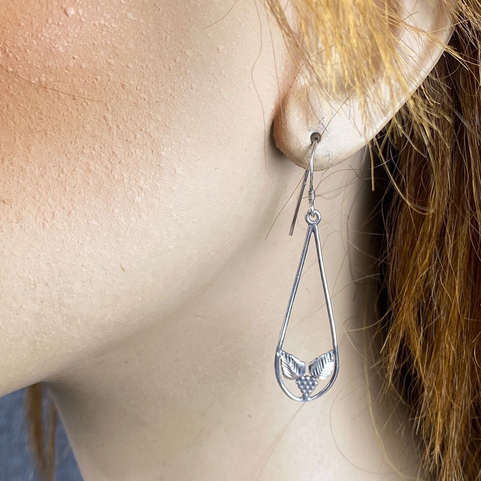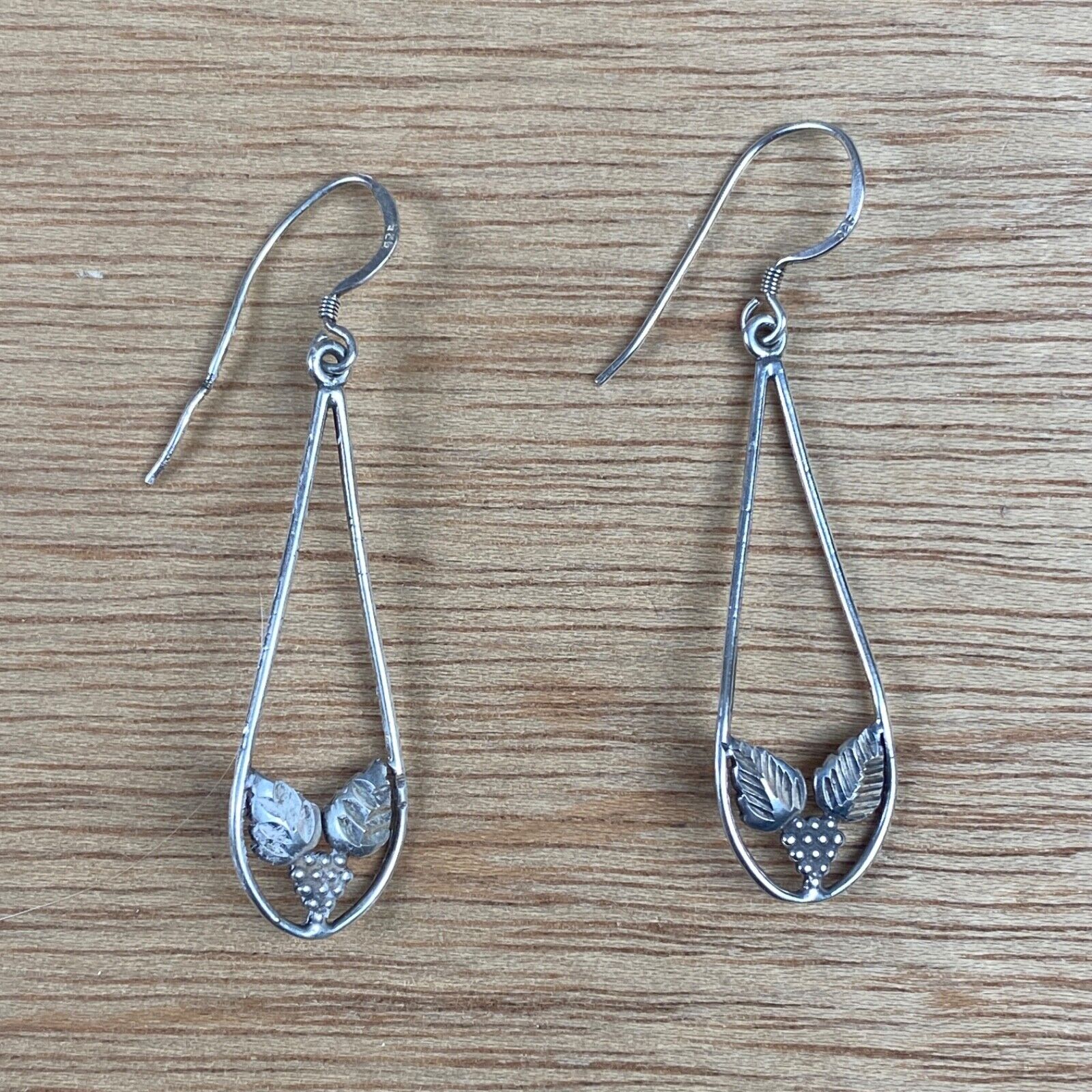 Vintage Silver Drop Dangle Earrings with Leaves and Grapes