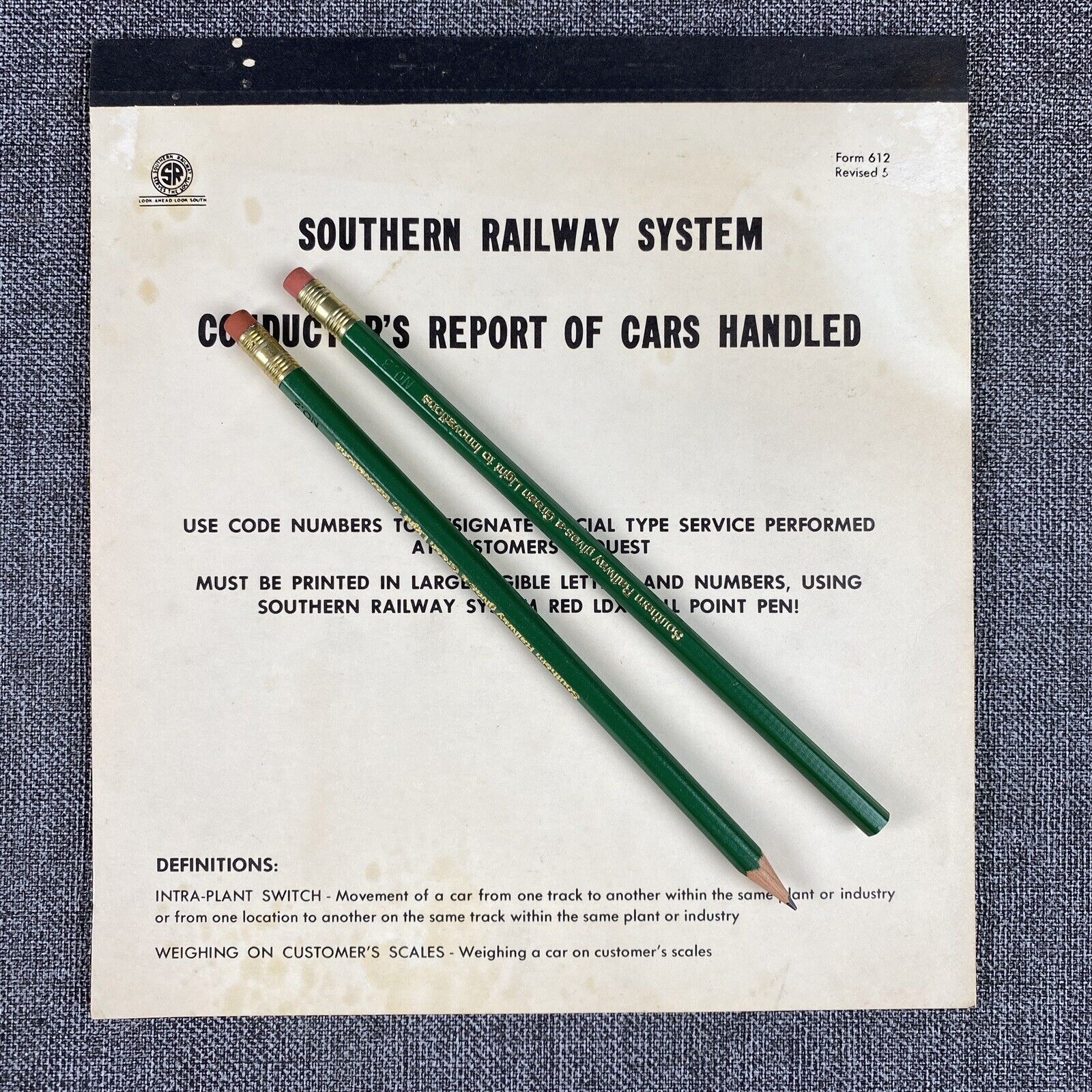 Vintage Southern Railway System Conductor's Report of Cars Handled Booklet + pencils