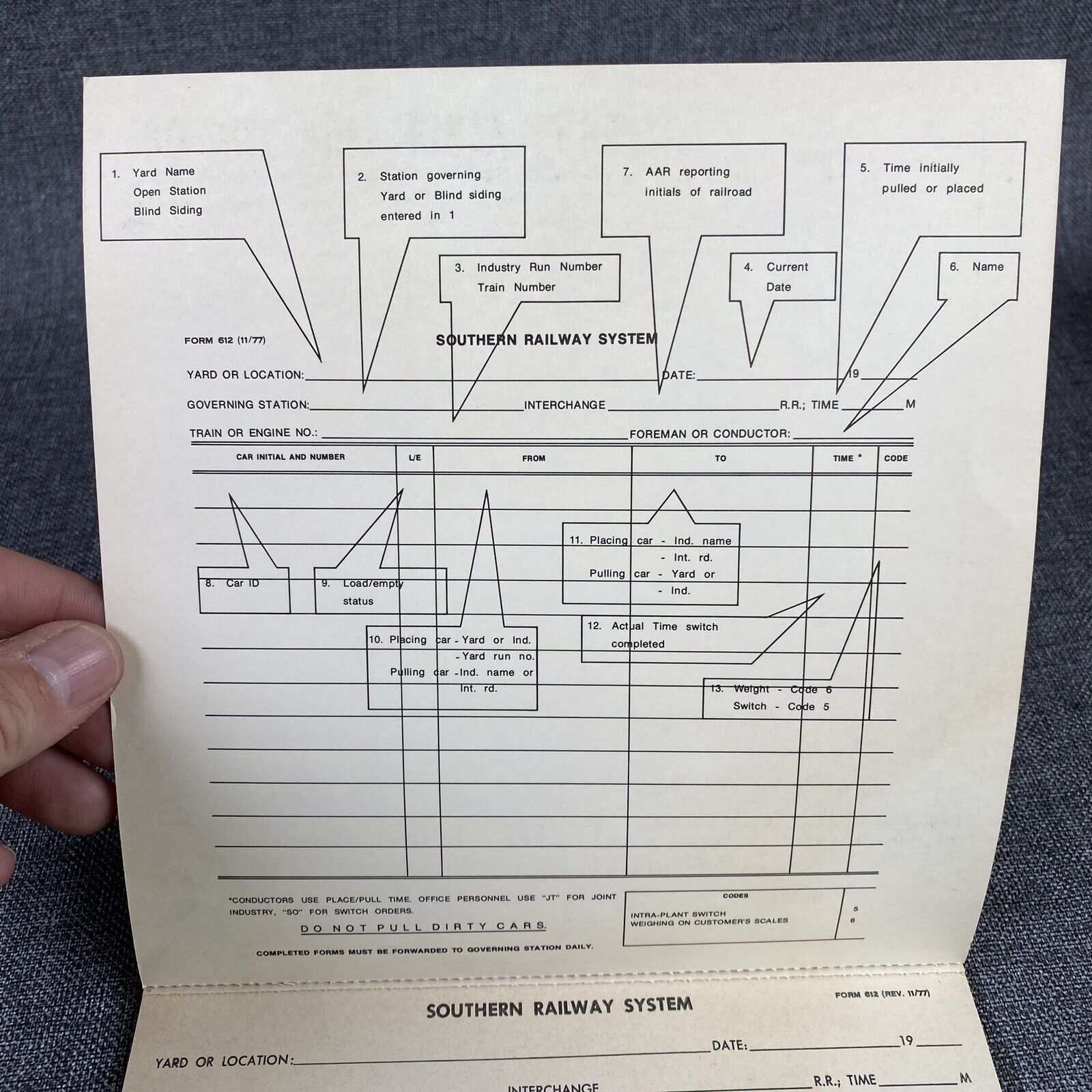 Vintage Southern Railway System Conductor's Report of Cars Handled Booklet
