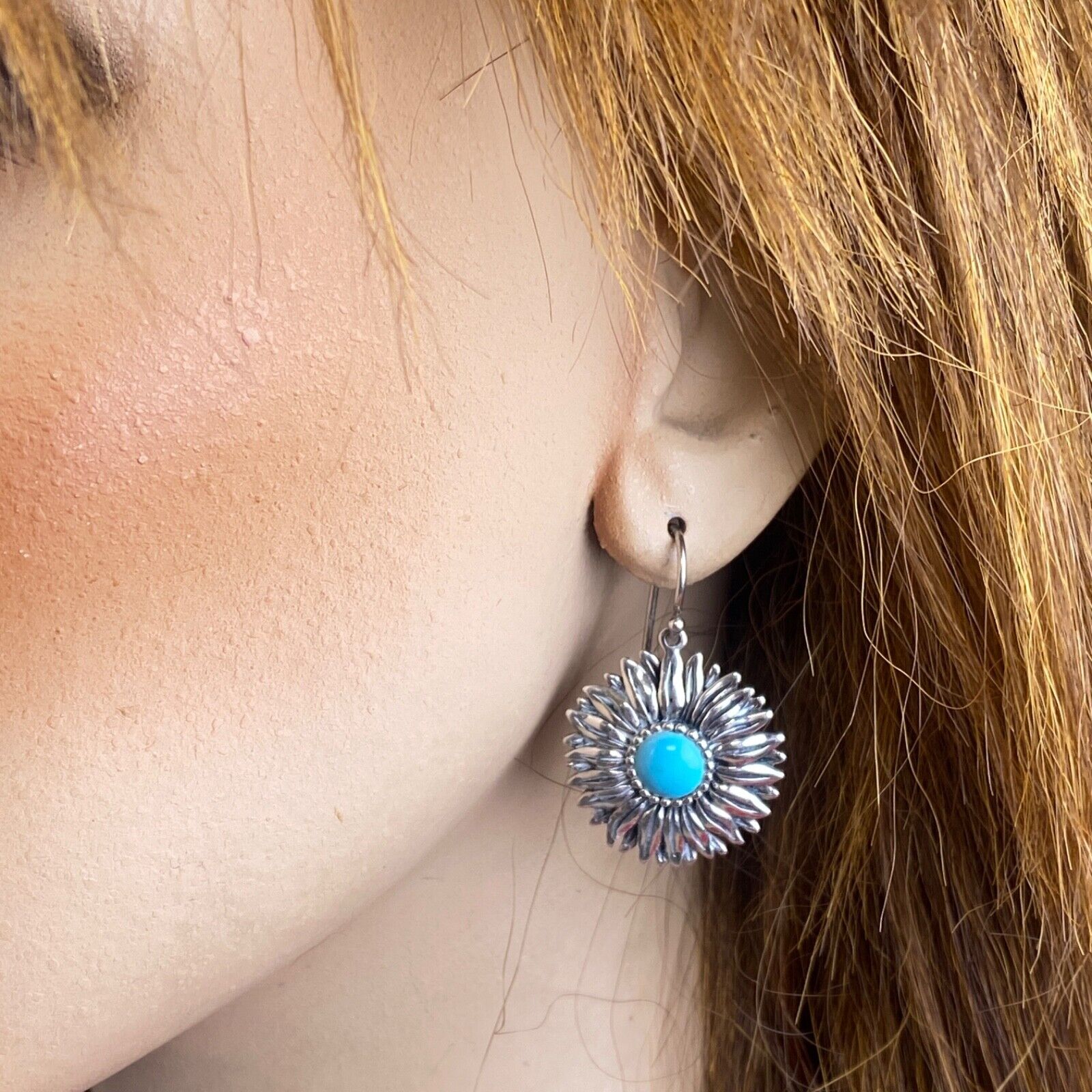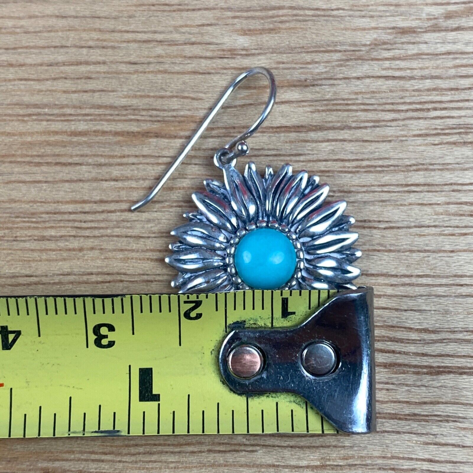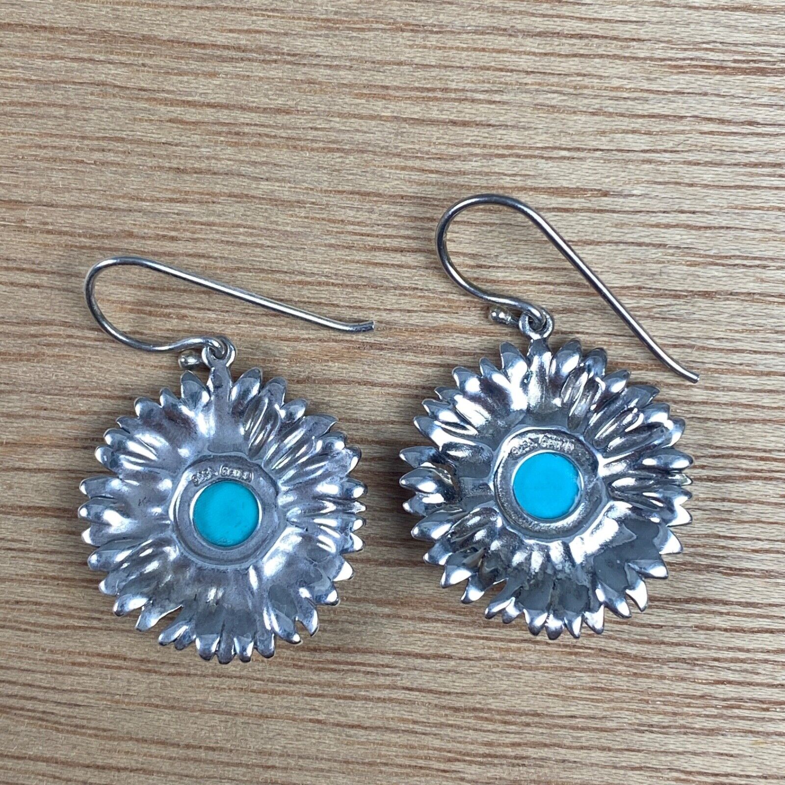 Vintage Sterling Silver Dangle Flower Earrings With Blue Center