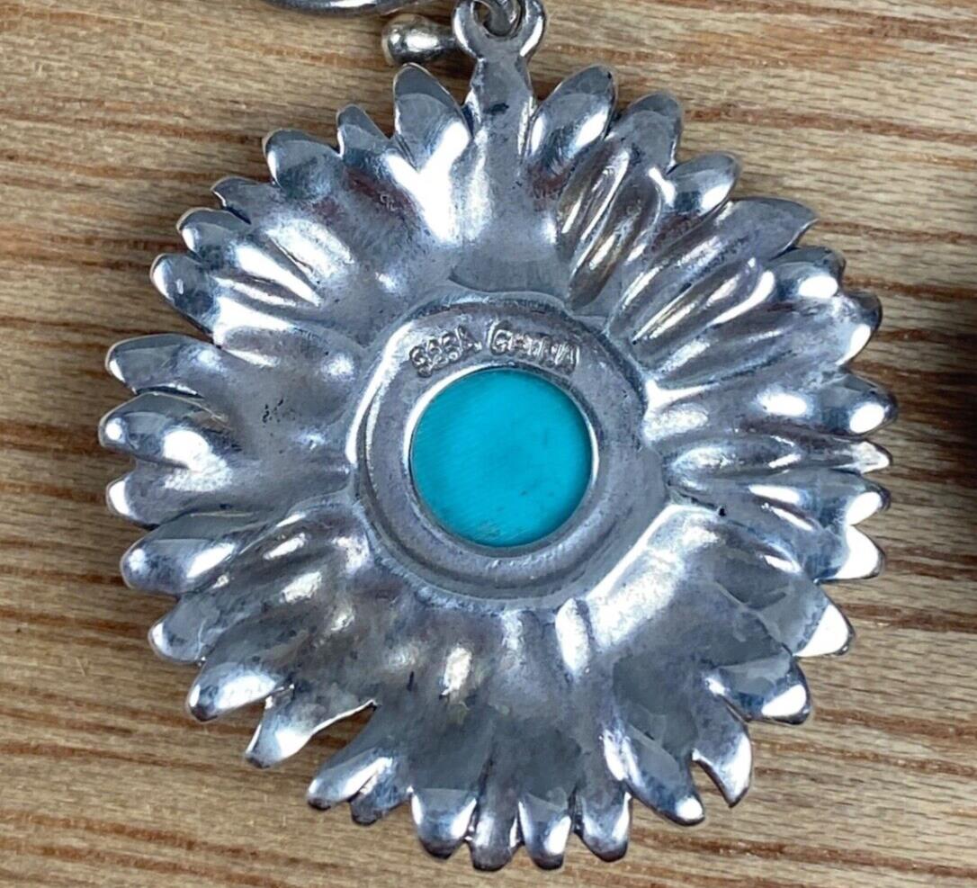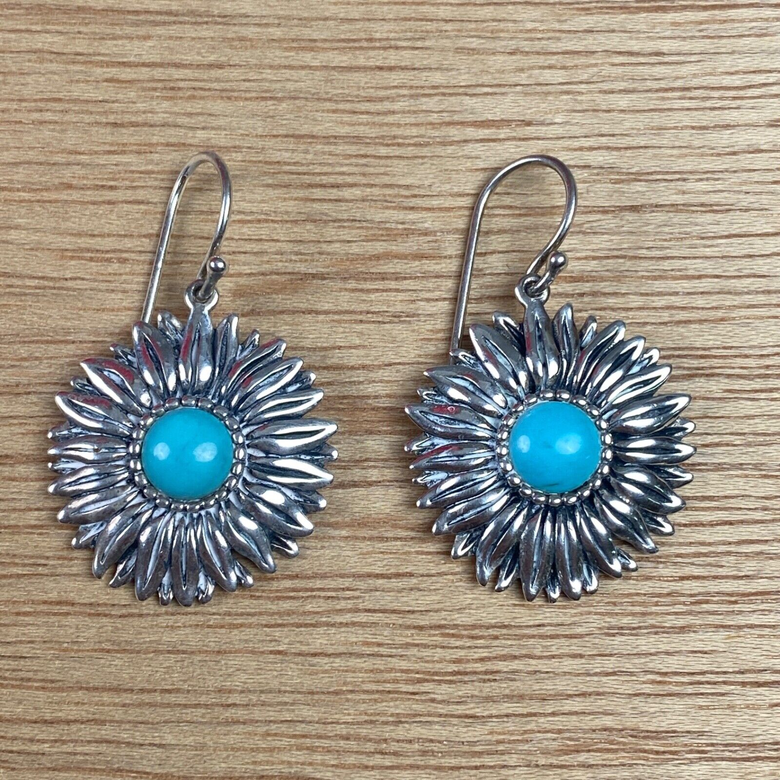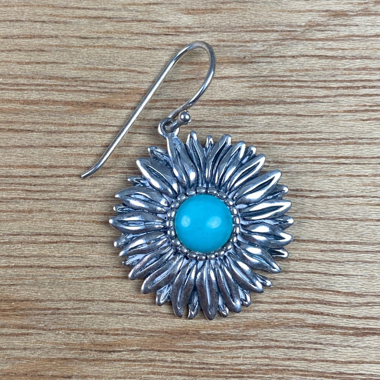 Vintage Sterling Silver Dangle Flower Earrings With Blue Center