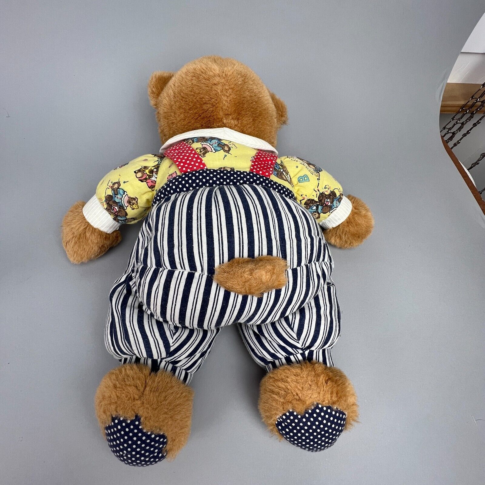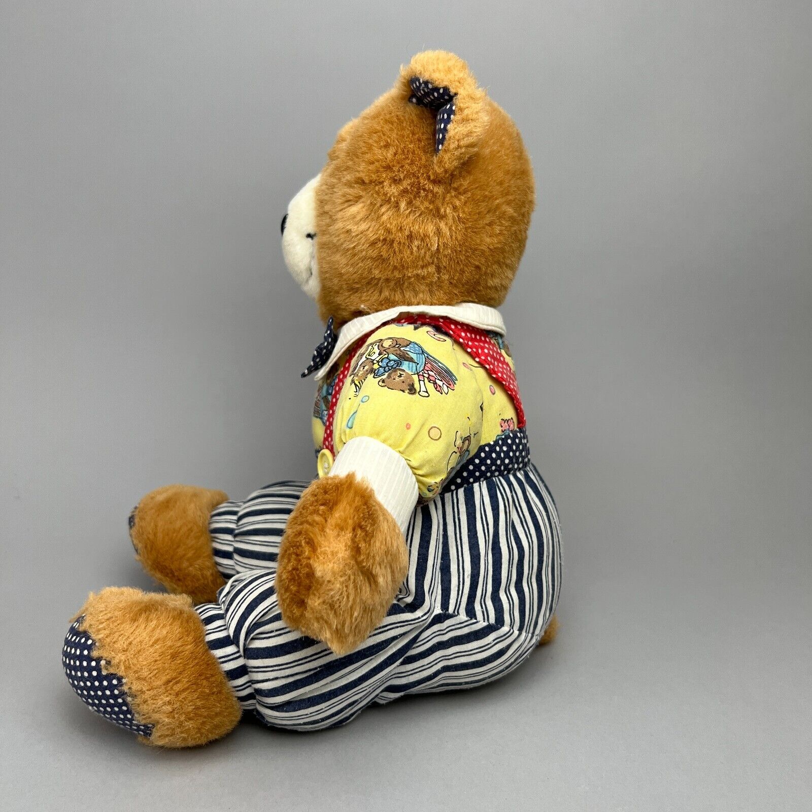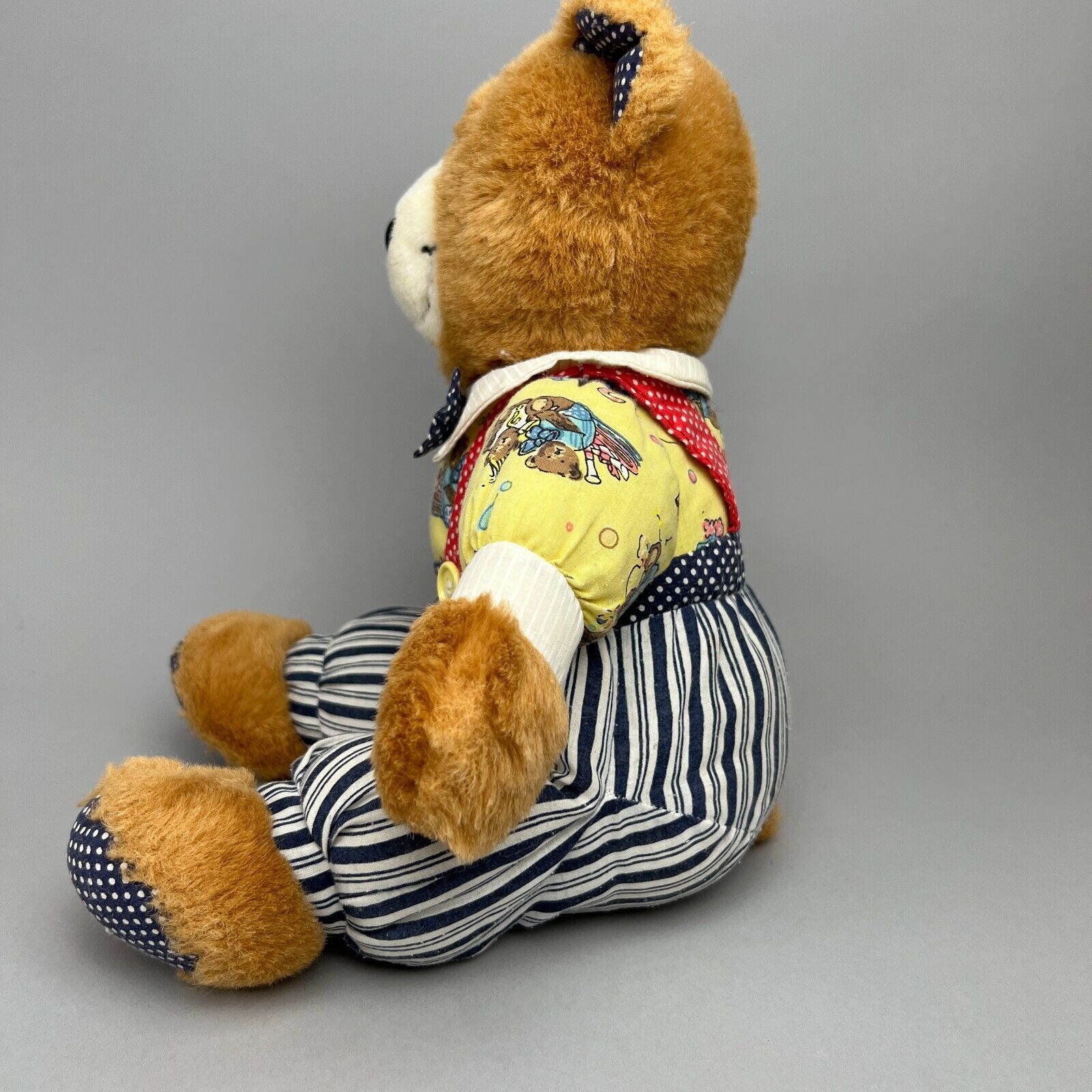 Vintage Teddy Bear in Overalls Plush Stuffed Animal