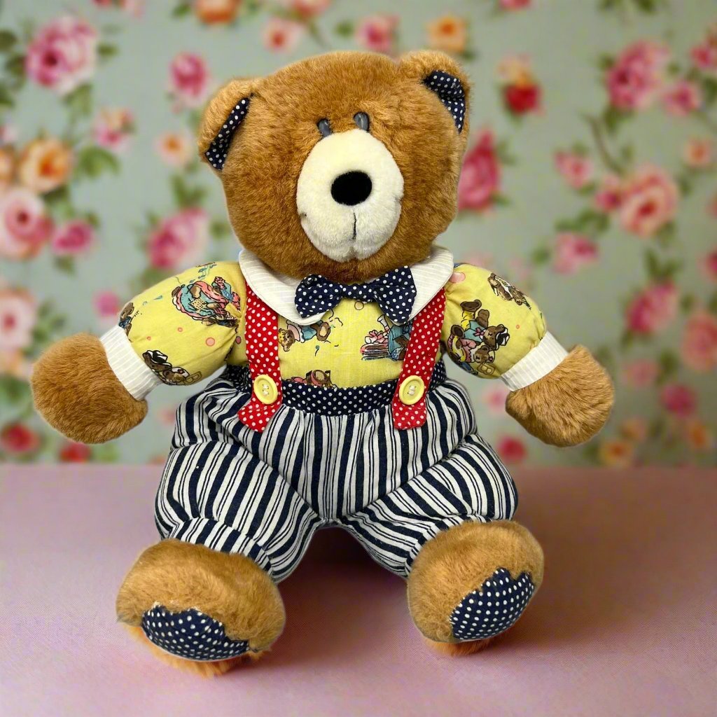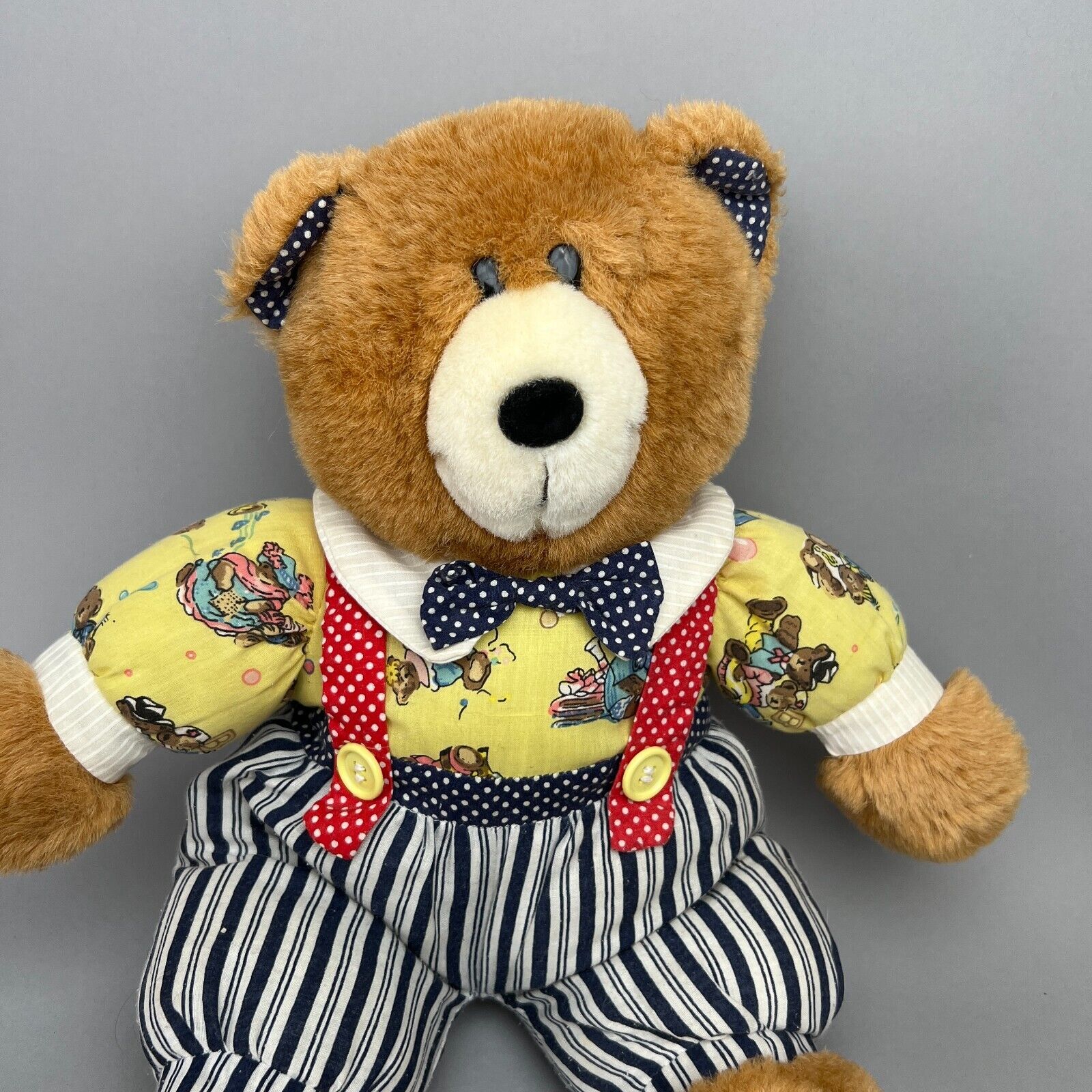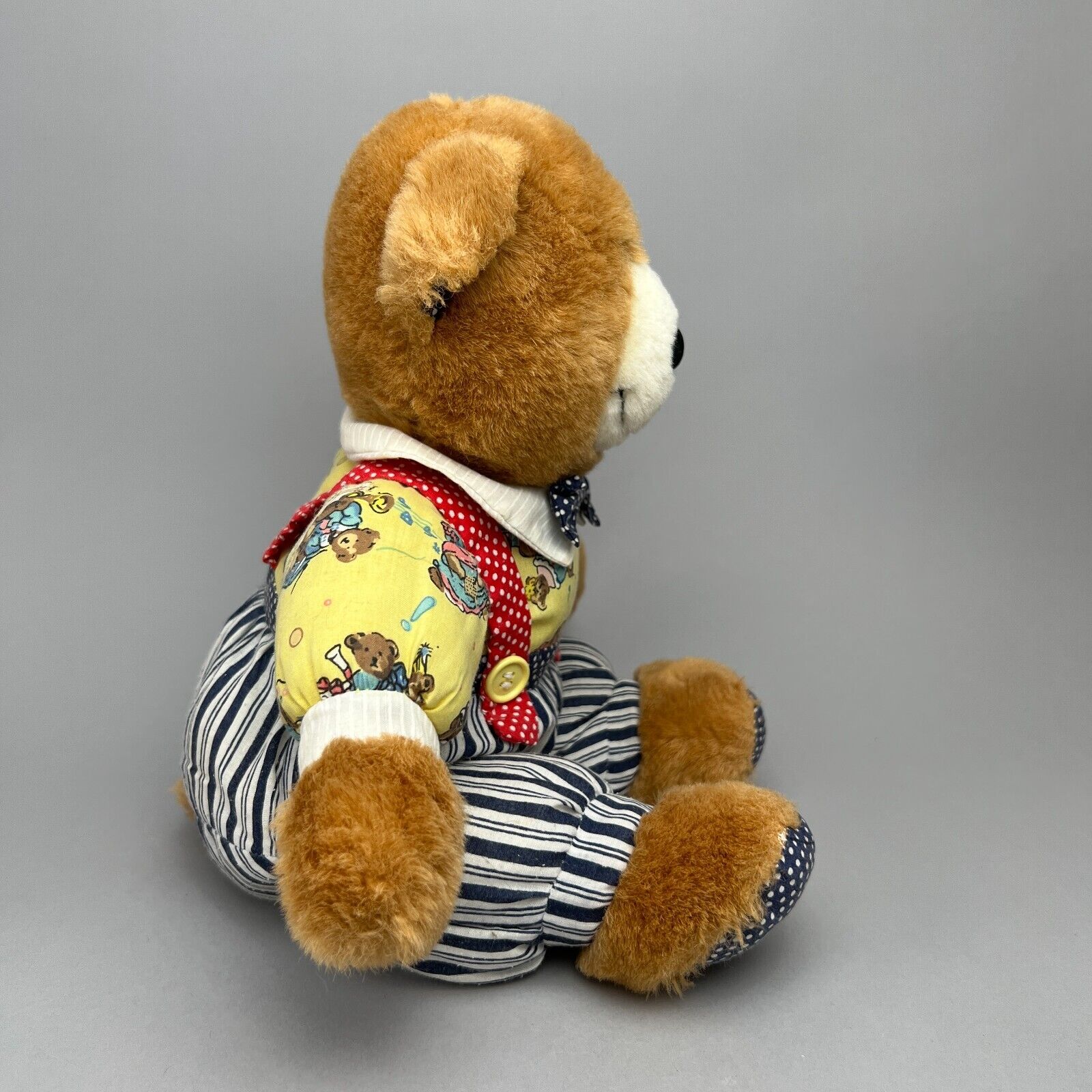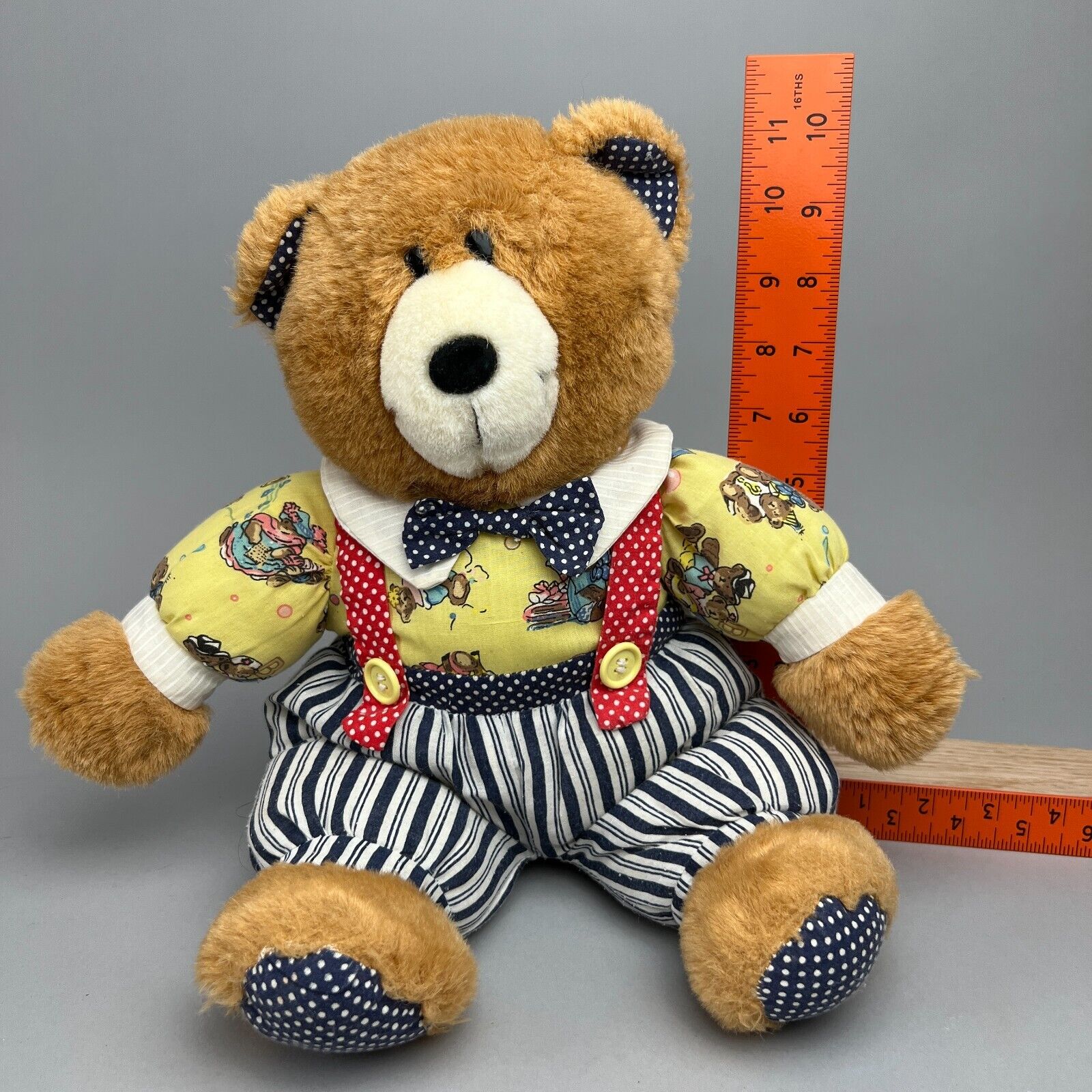 Vintage Teddy Bear in Overalls Plush Stuffed Animal