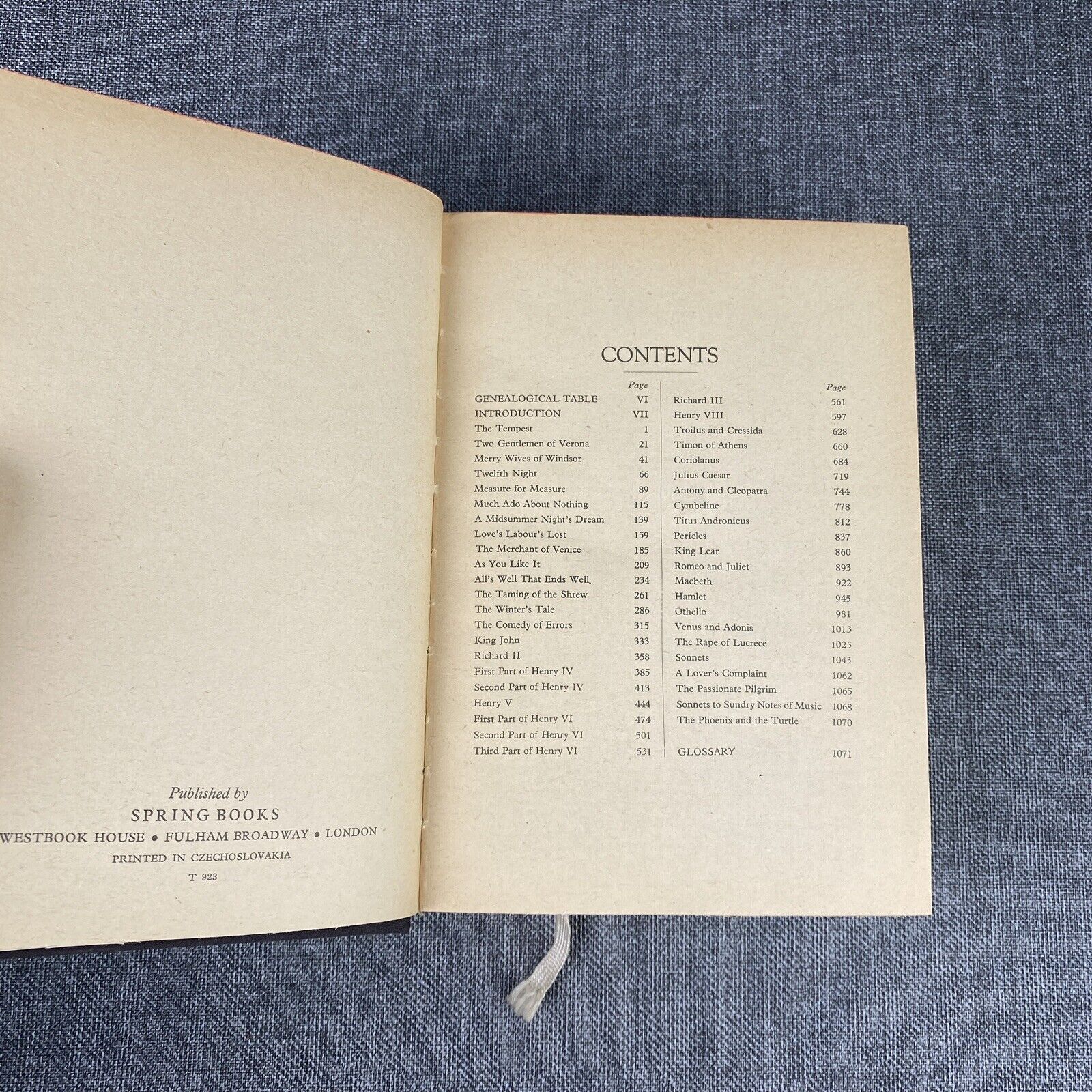 Vintage The Complete Works Of Shakespeare published by Spring Books London 1967