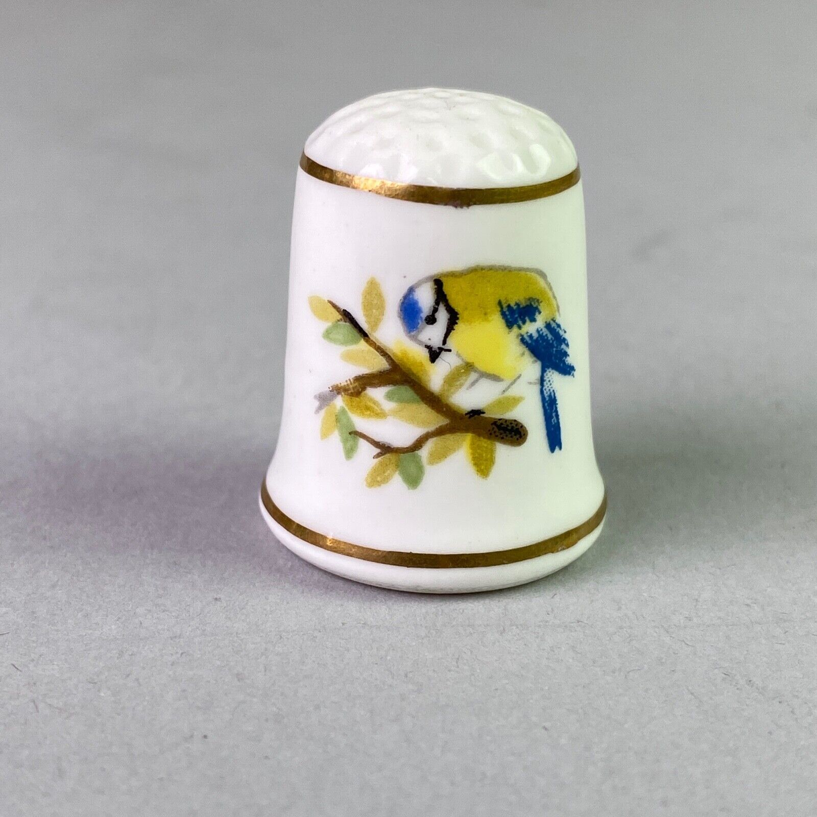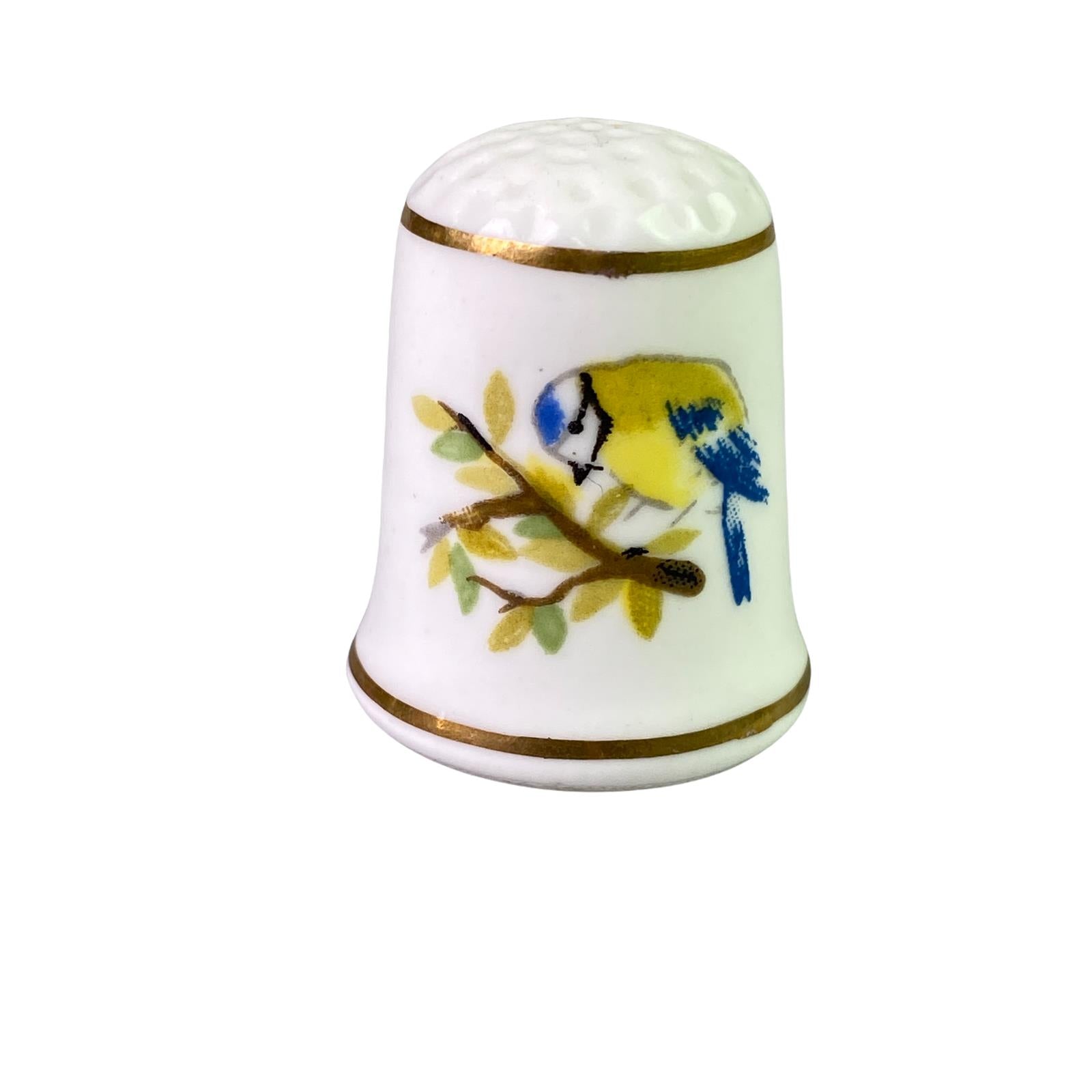 Vintage Thimble Bird Hand Painted Blue & Yellow