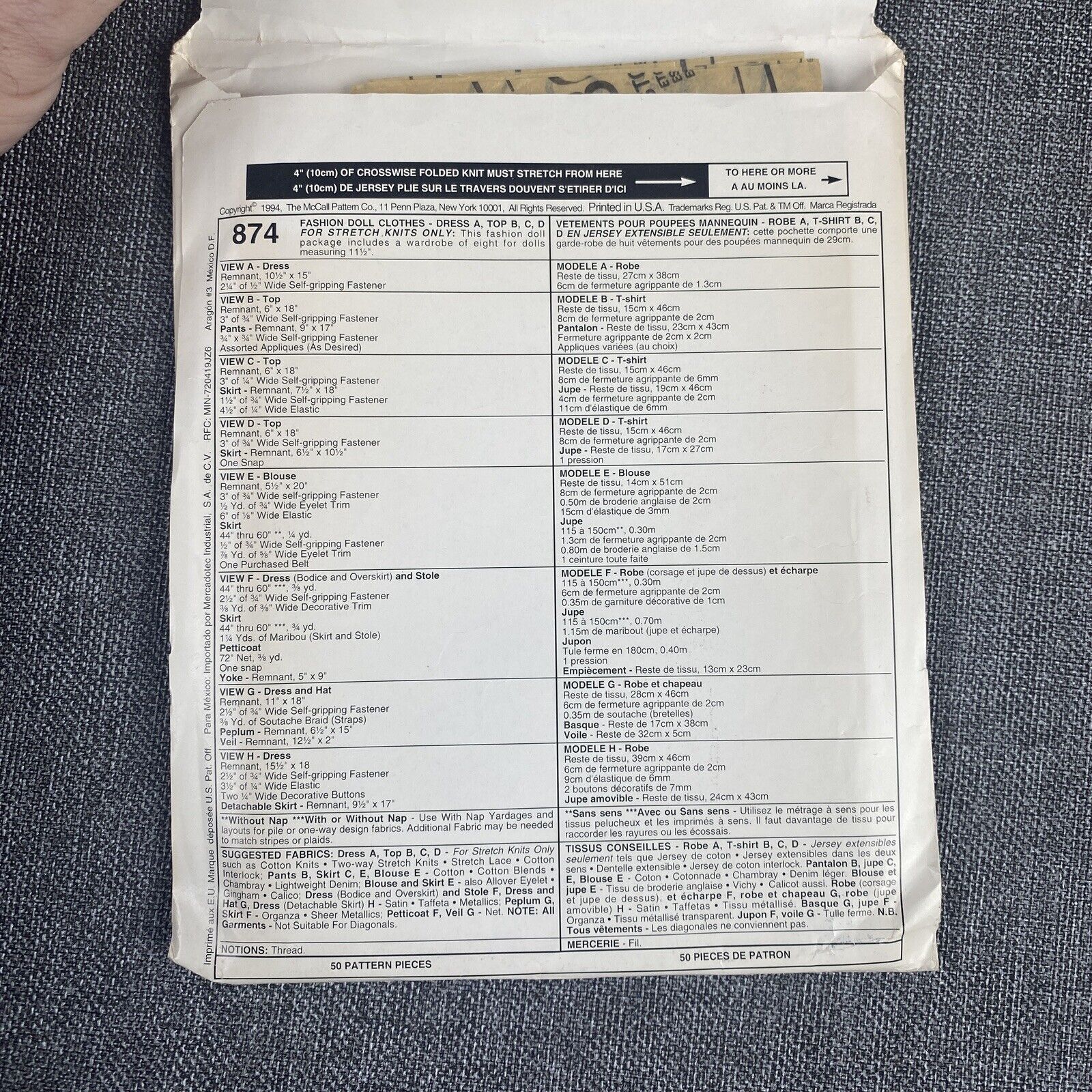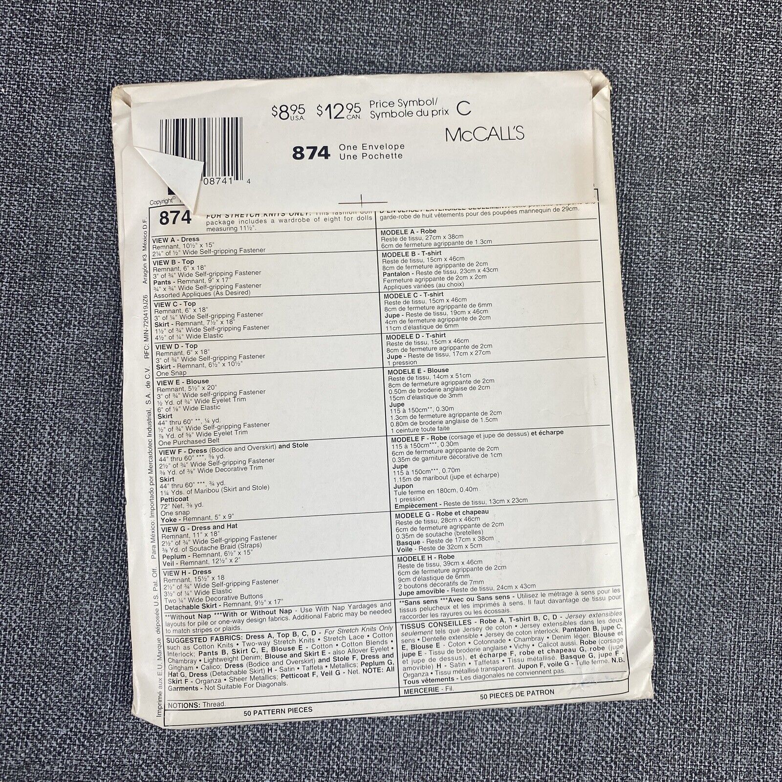 Vintage1960's McCall's Patterns Barbies 874 Little Sister Skipper Clothes Uncut