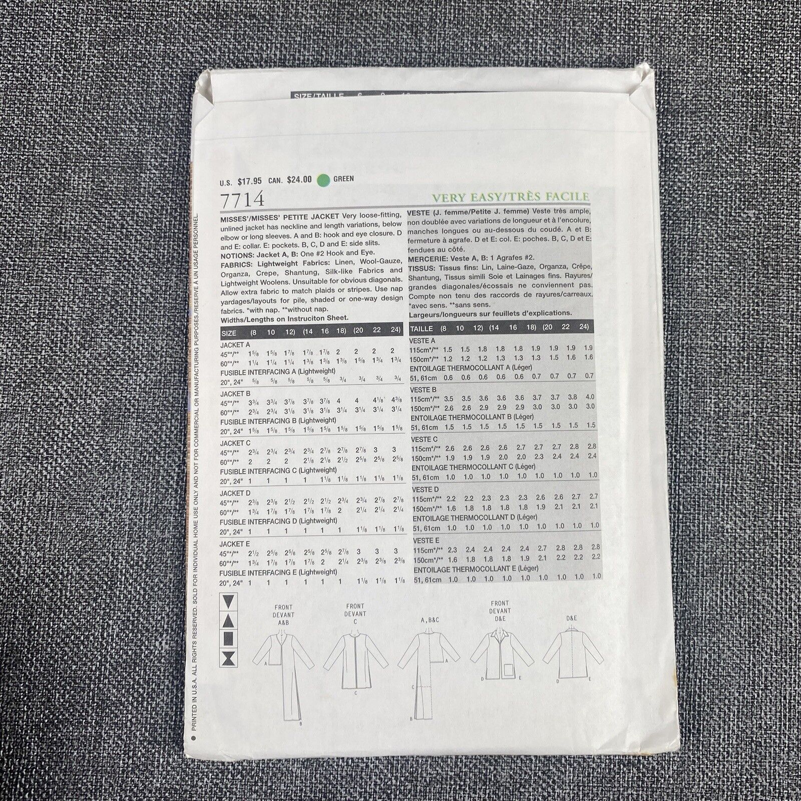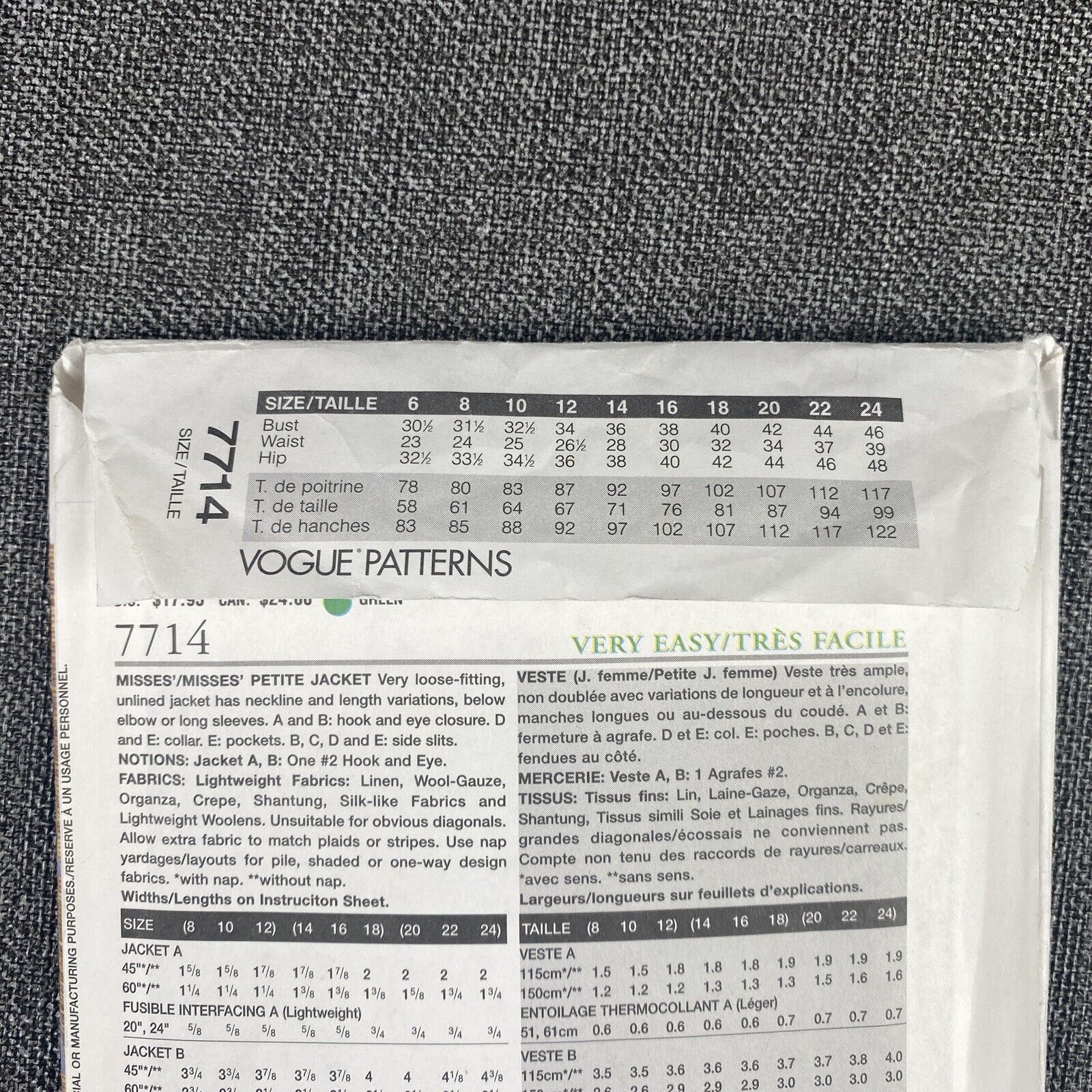 Vogue Sewing Pattern 7714 Jacket 14-16-18 uncut