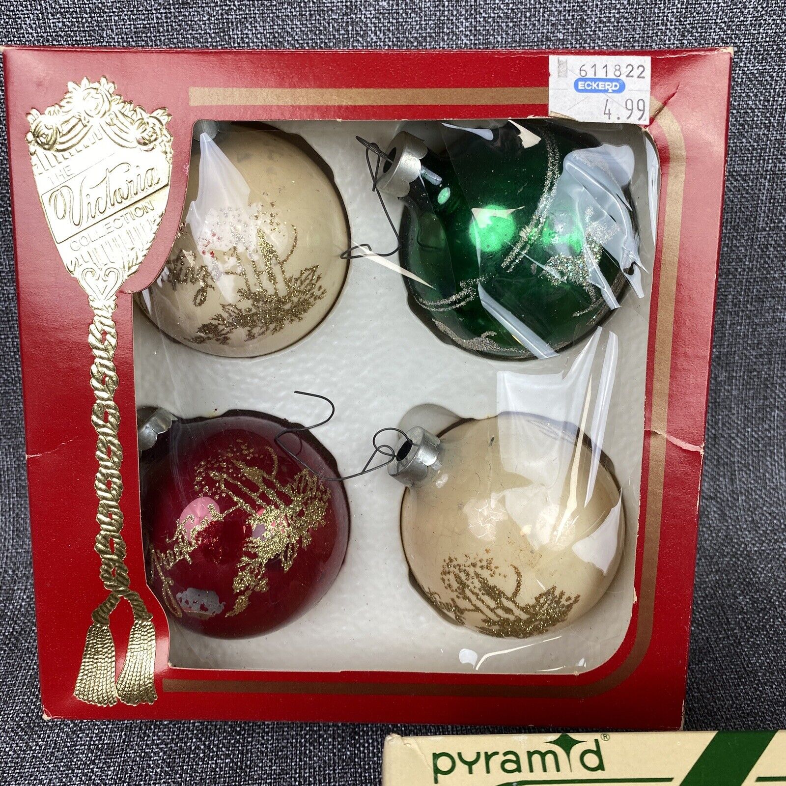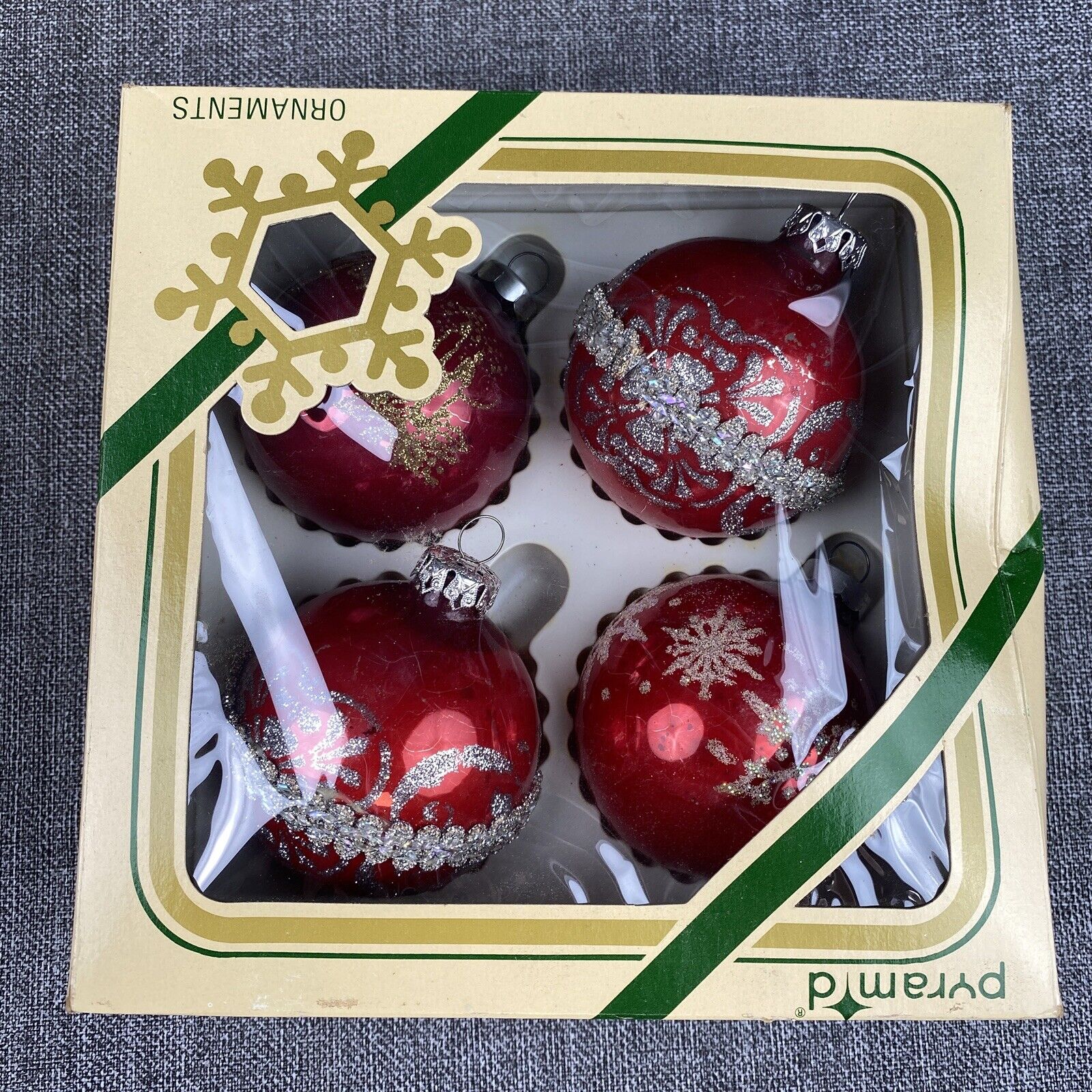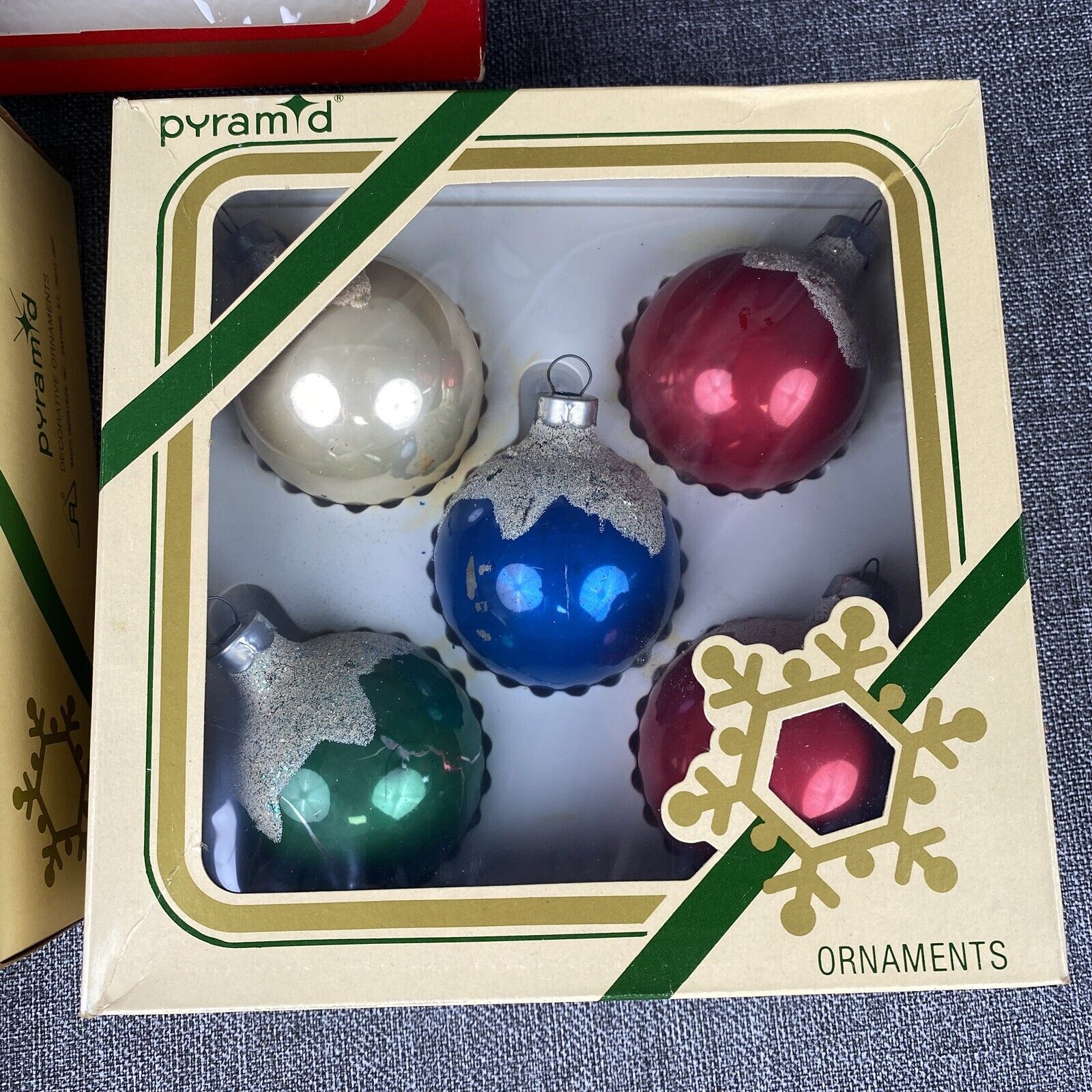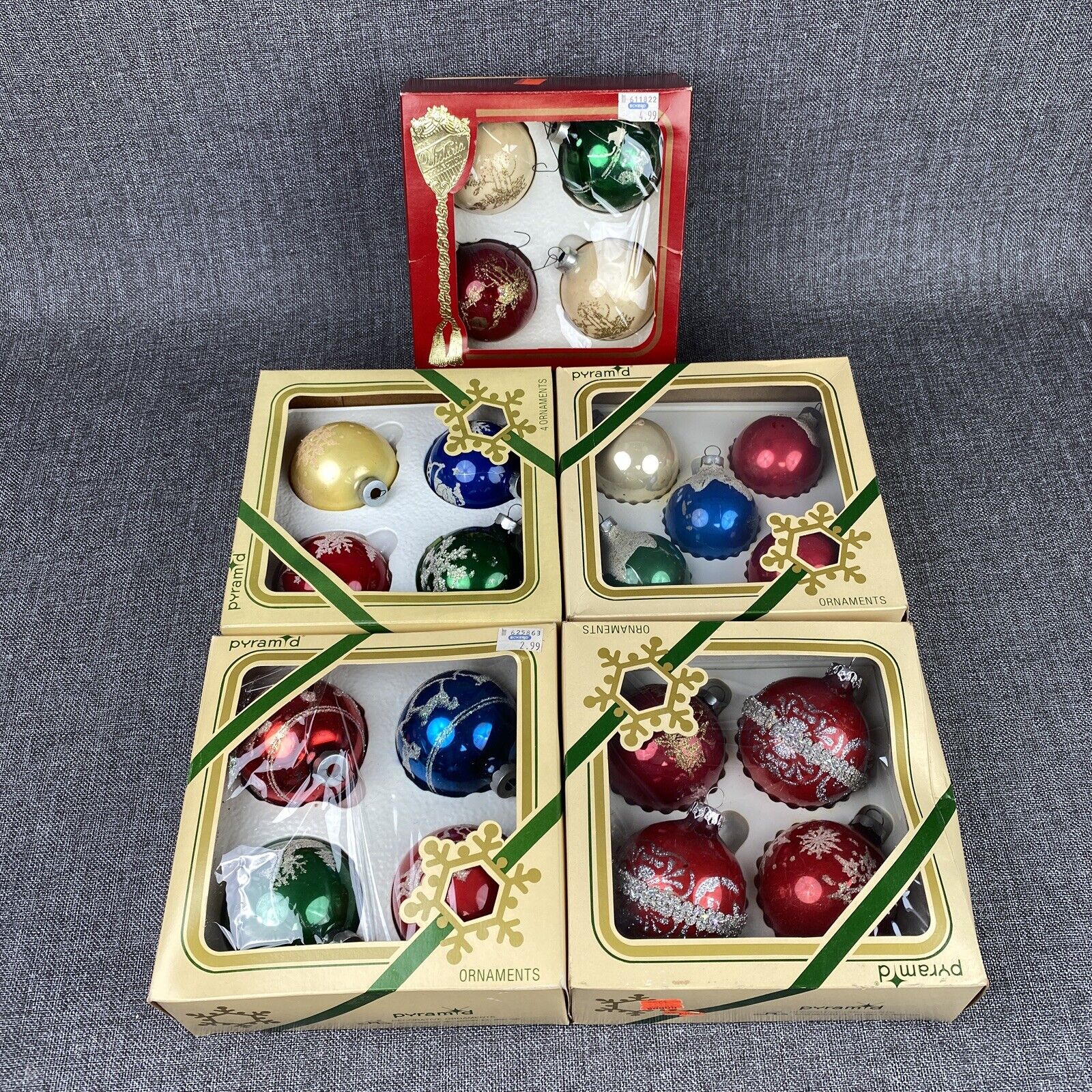 VTG Pyramid Glass Christmas Tree Ornament Mixed Round Ball Lot