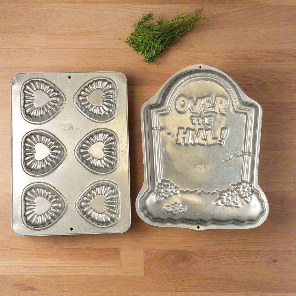 Wilton Aluminum Cake Pans lot Hearts + Over the Hill