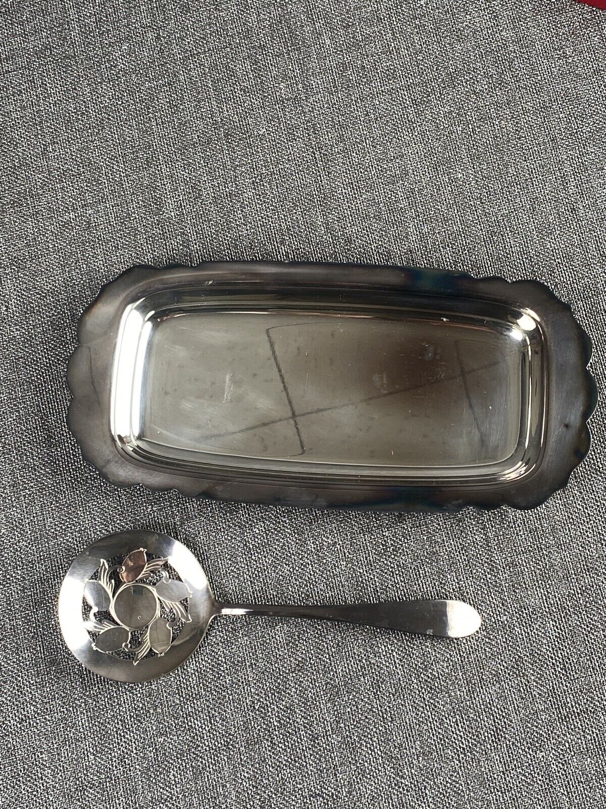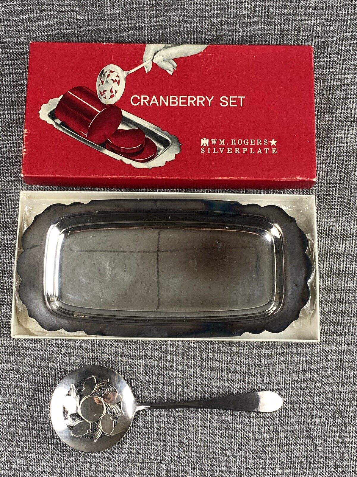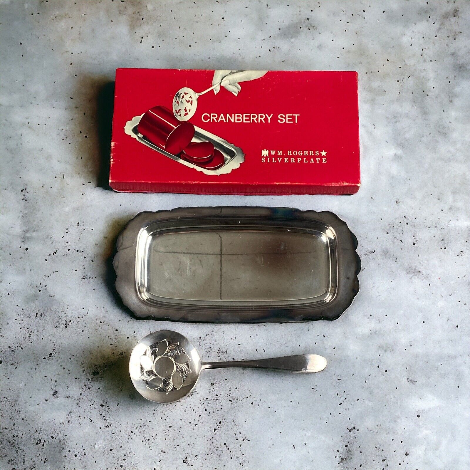 WM. Rogers Silverplate Cranberry Set Spoon & Plate Original Box
